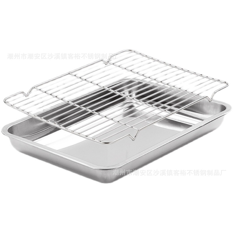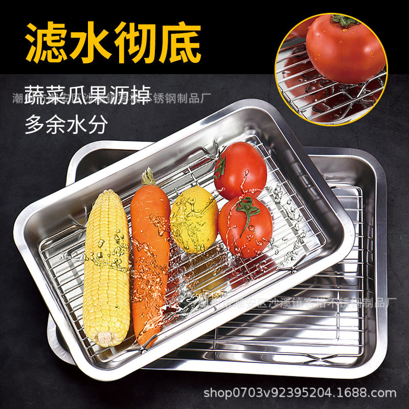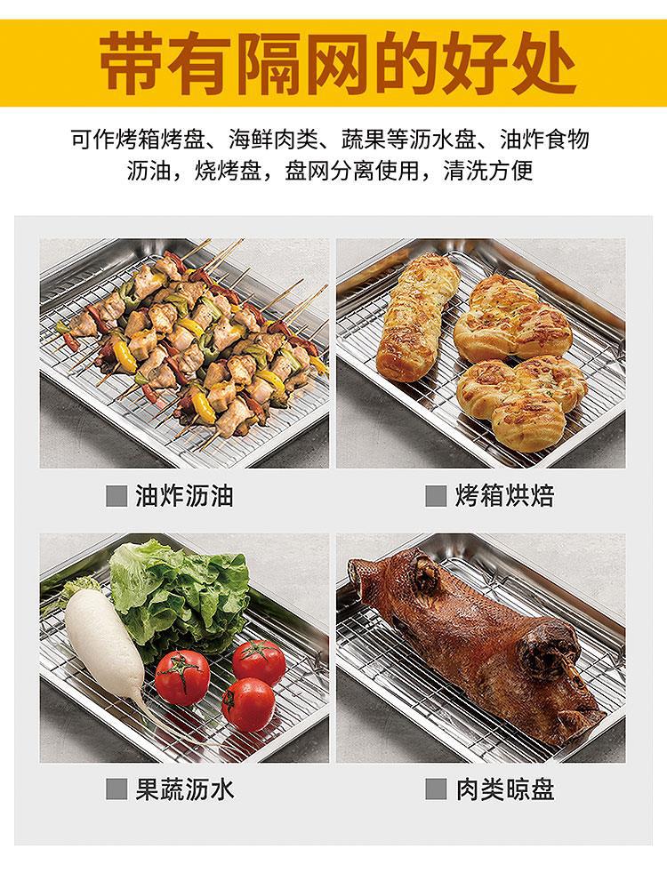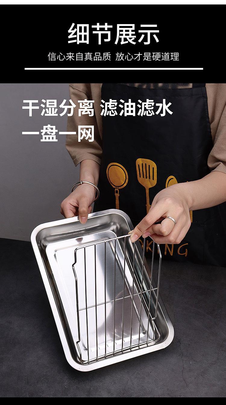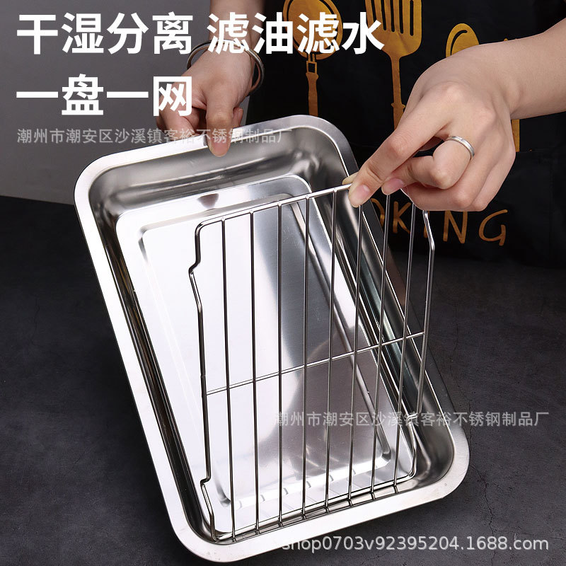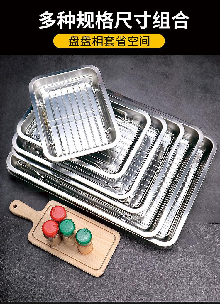 不锈钢方盘带网控油架商用托盘滤水滤油盘熟食展示盘烧烤撒料盘子