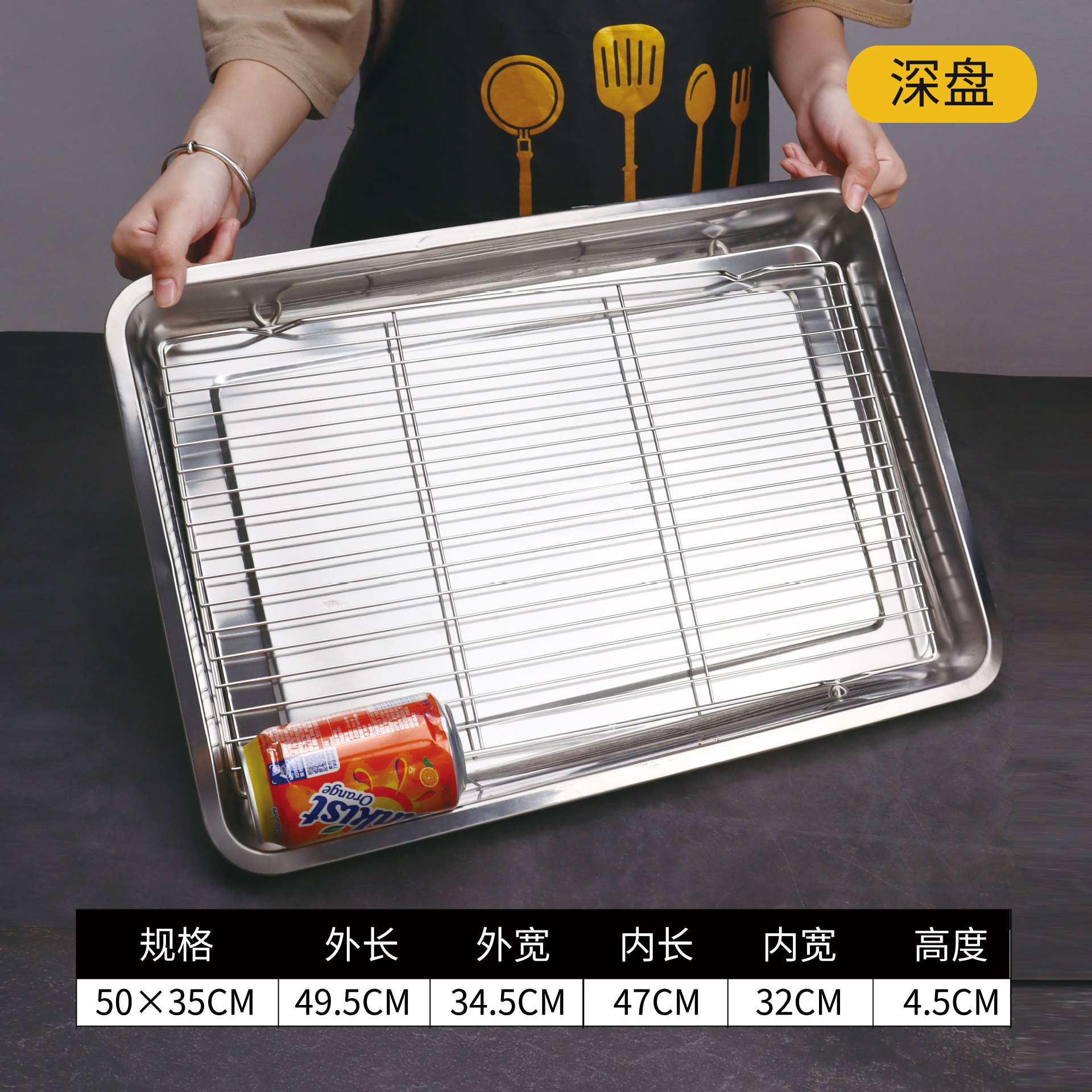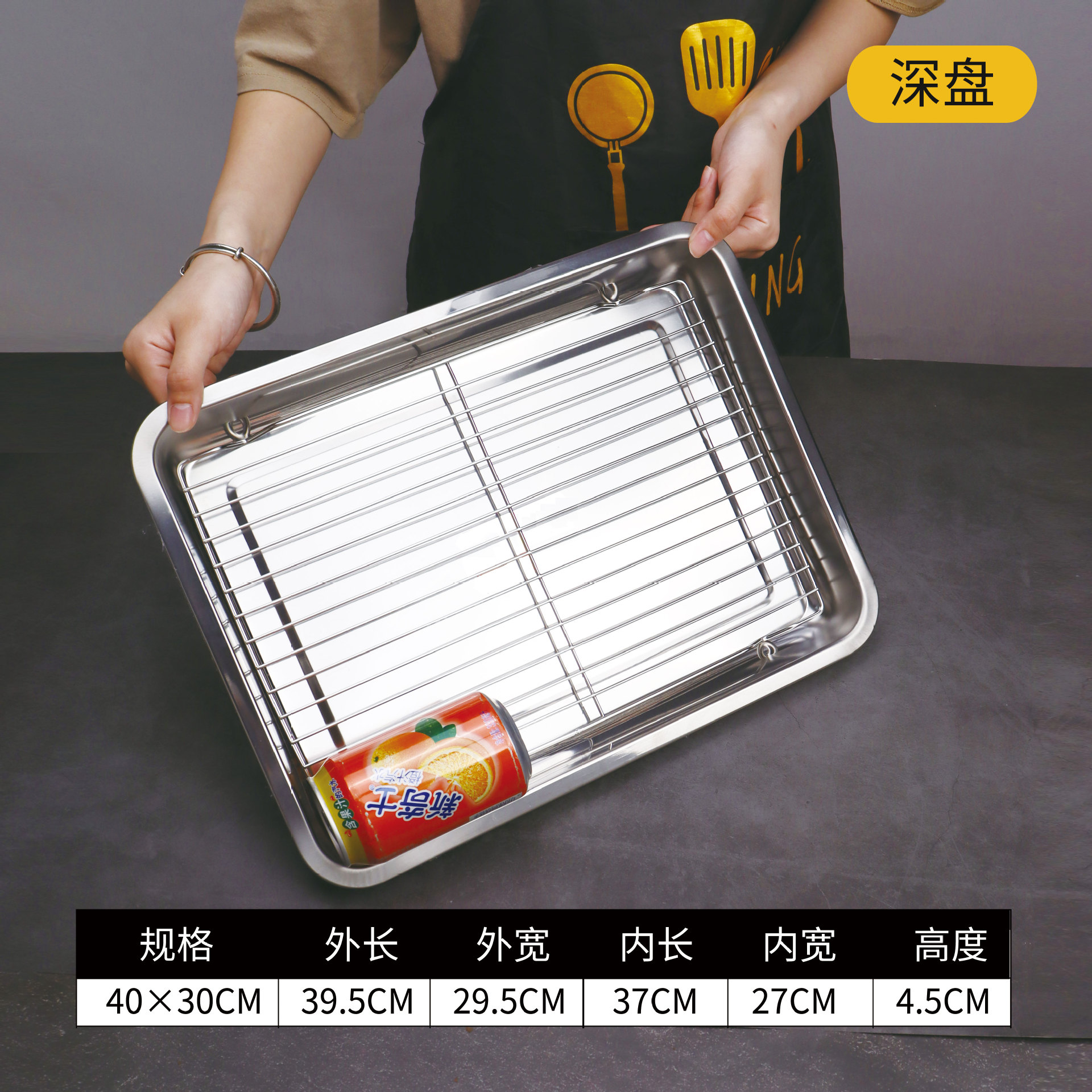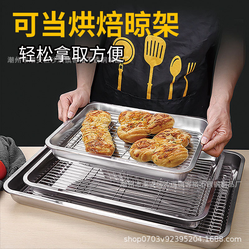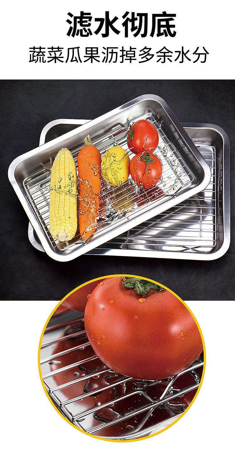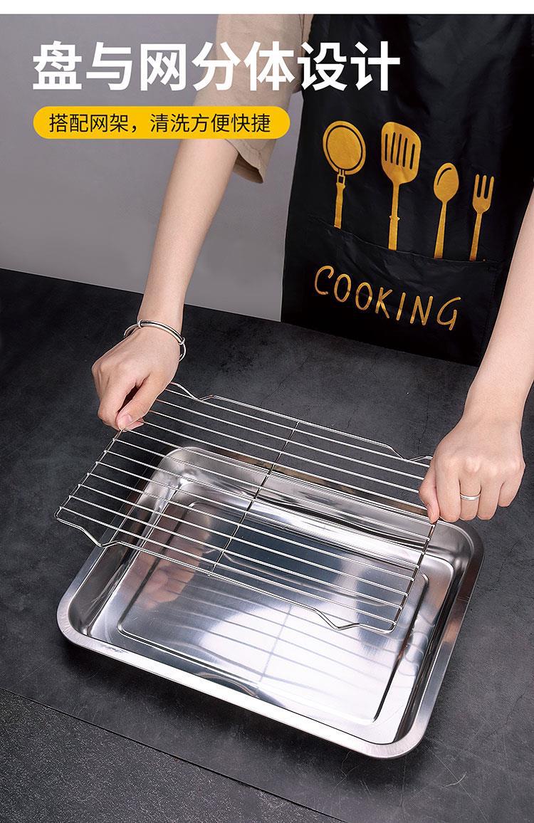 不锈钢方盘带网控油架商用托盘滤水滤油盘熟食展示盘烧烤撒料盘子