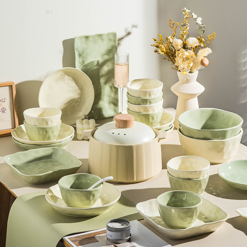 奶油风高颜值陶瓷餐具碗家用碗碟套装菜盘子自由DIY组合碗筷套装
