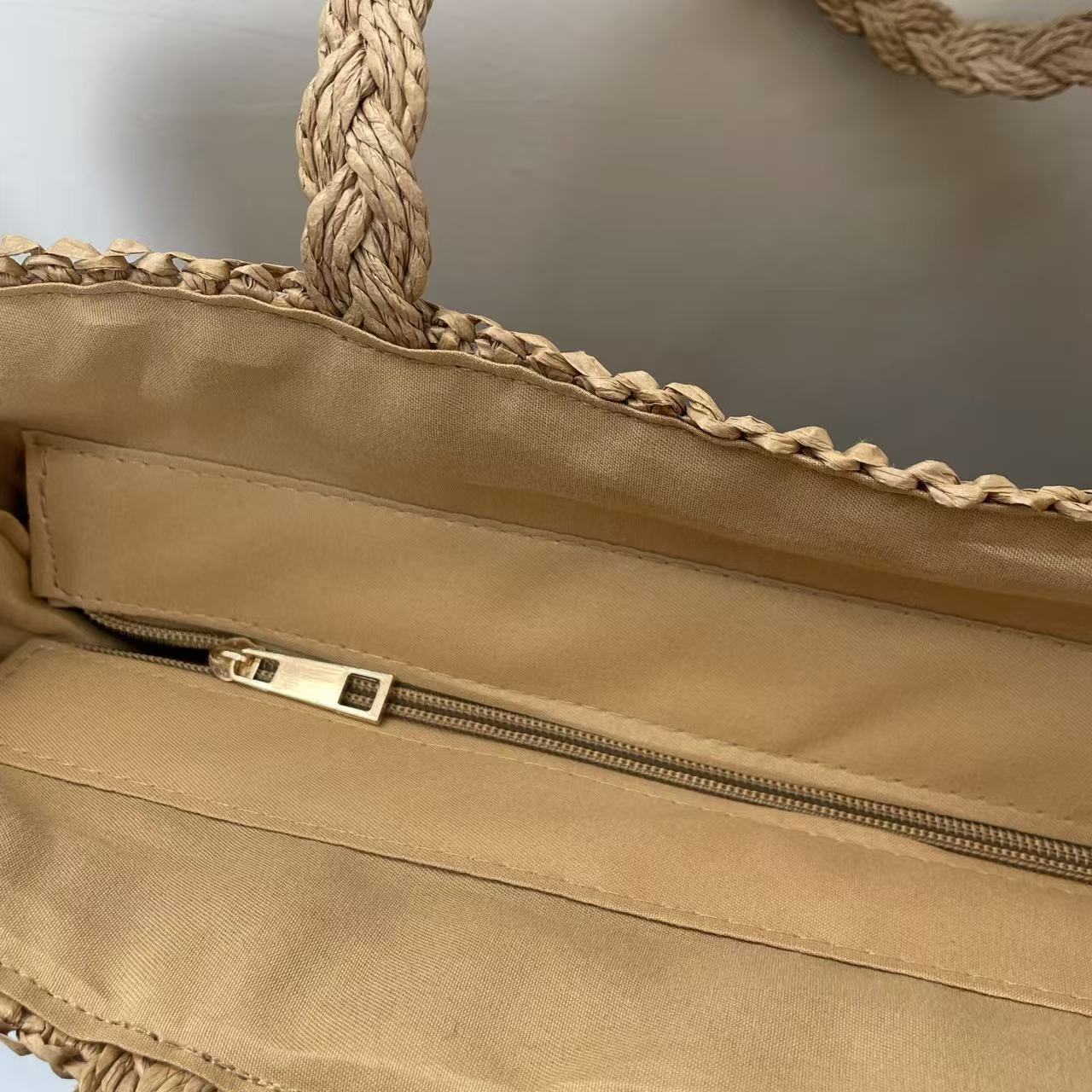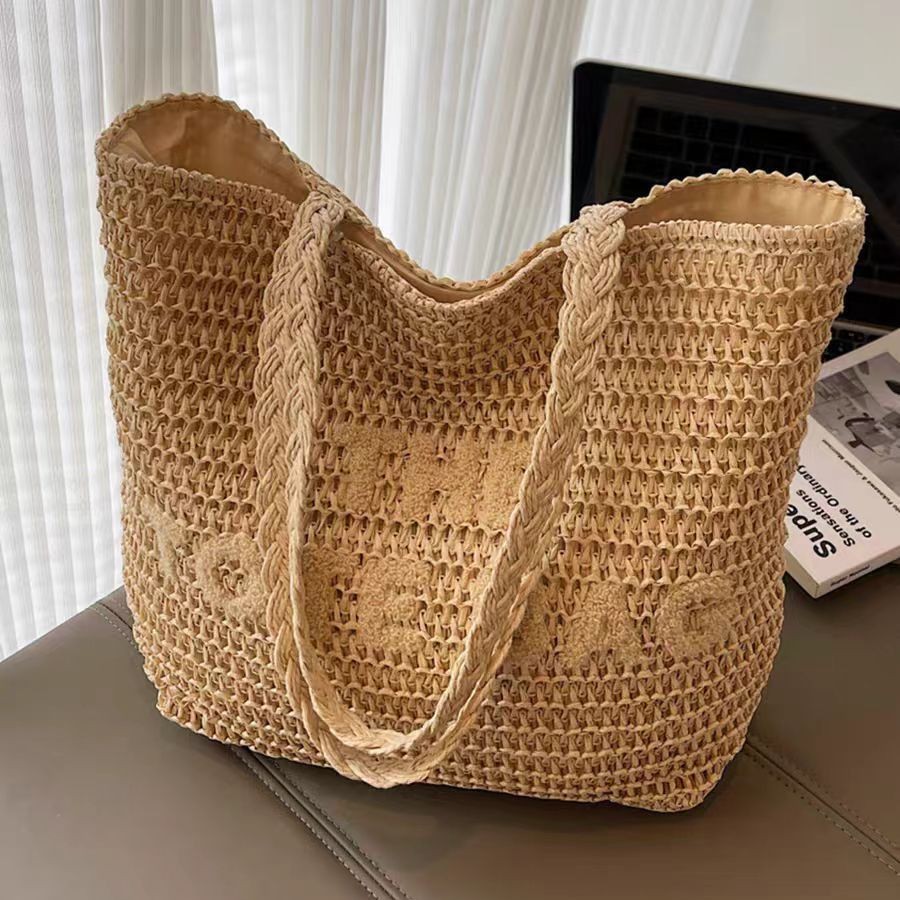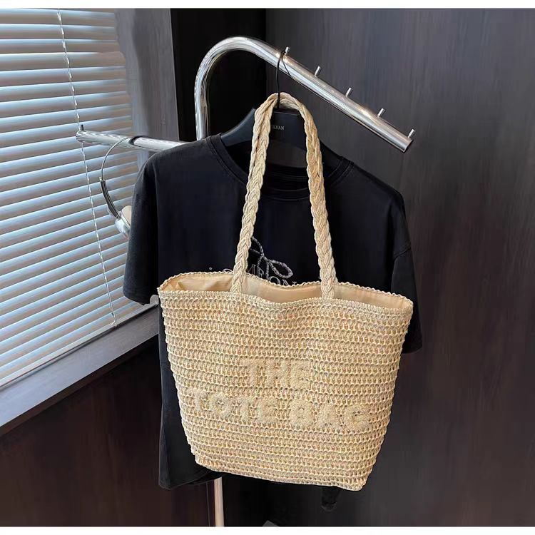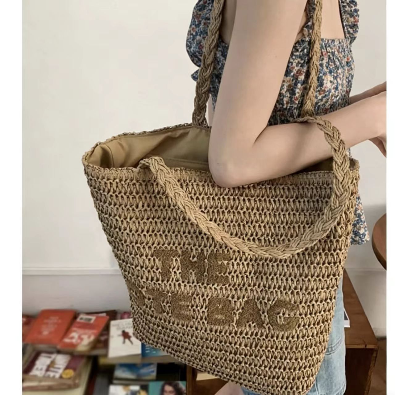 新款编织刺绣单肩包大容量沙滩度假包跨境高级感小众慵懒范韩系包