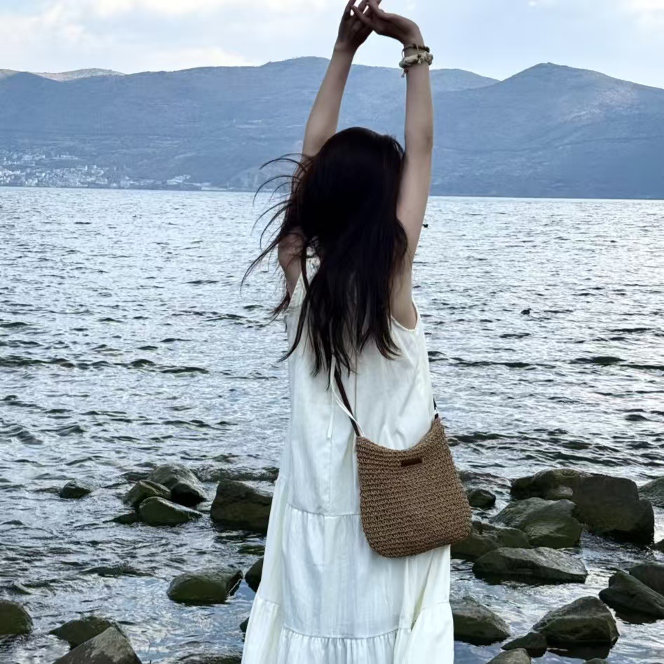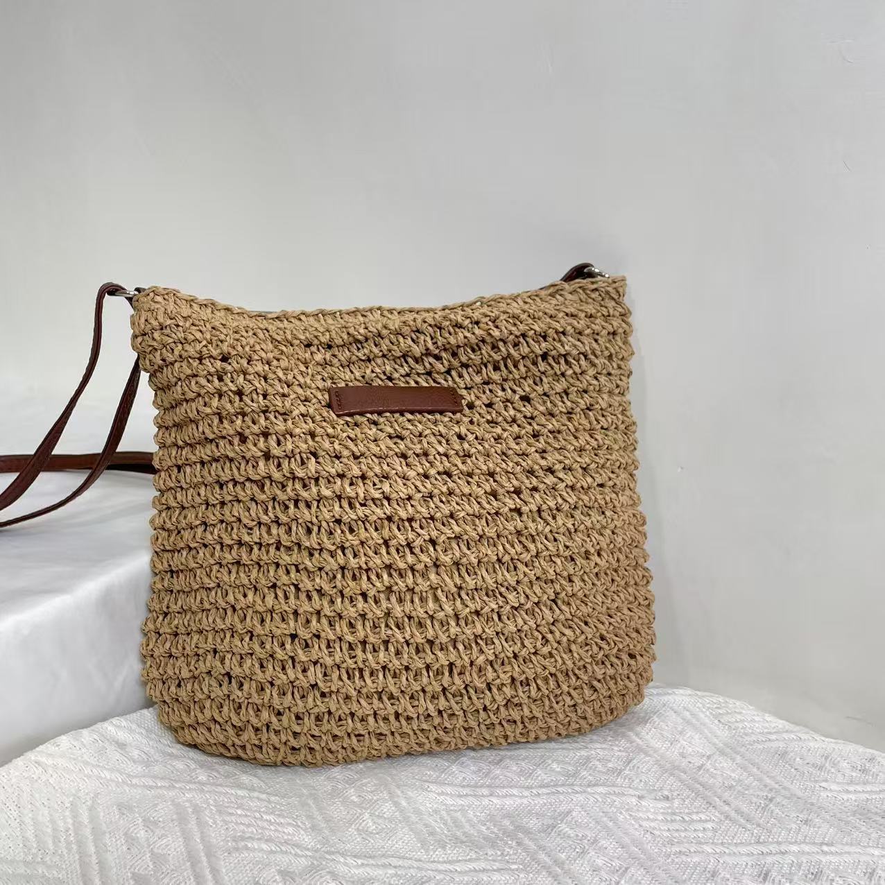 纸绳钩针编织包文艺小清新单肩包斜挎包时尚休闲海边沙滩草编包