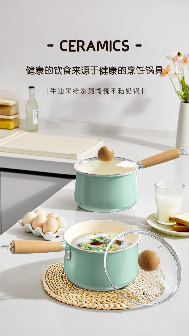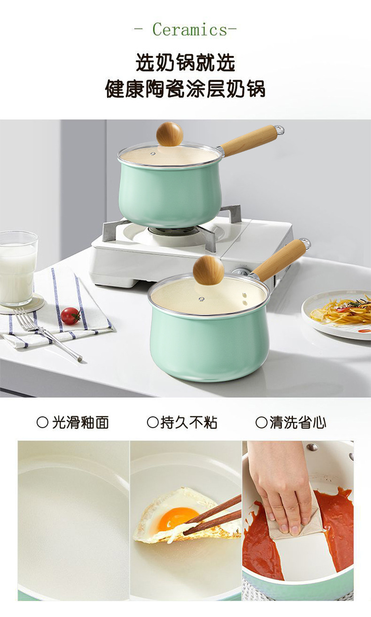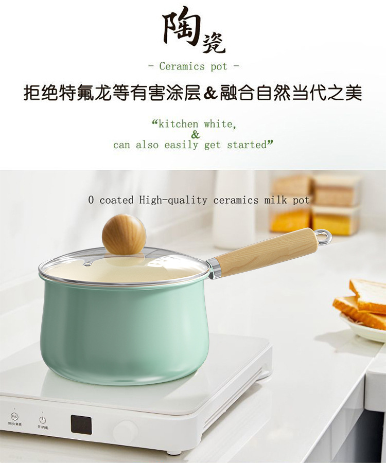 新款清水蓝小奶锅宝宝辅食锅陶瓷锅餐厅家用汤锅煮面锅不粘锅批发