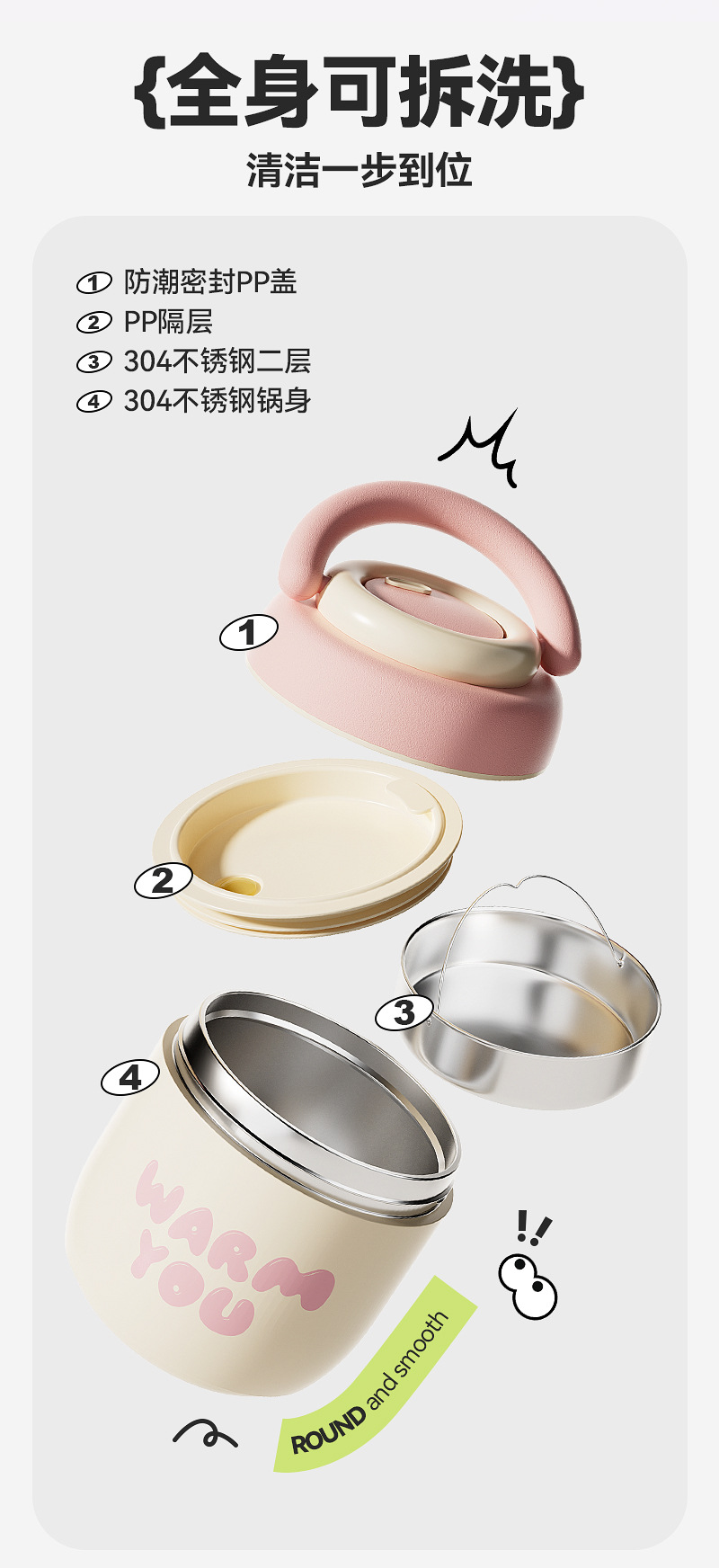 304不锈钢真空保温提锅暖暖提锅双层分格保温桶学生密封防漏饭桶