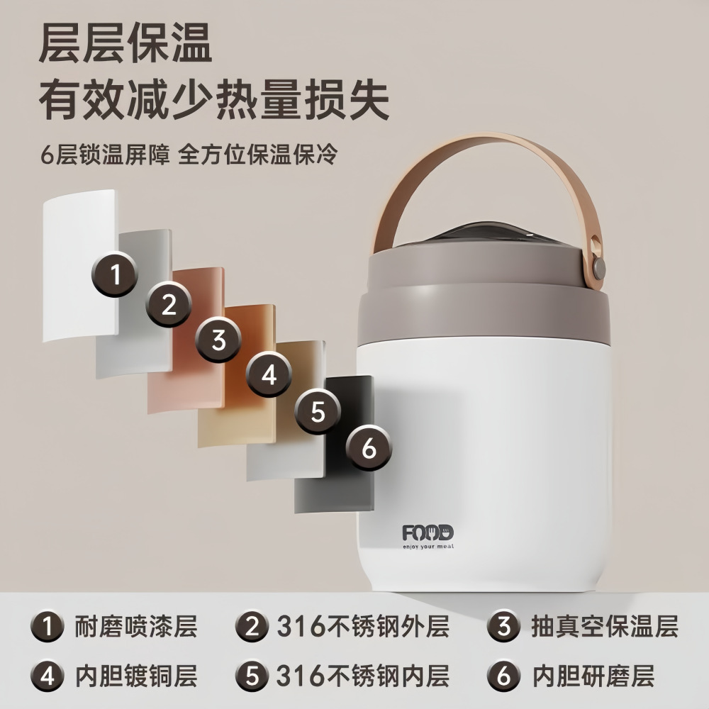 304不锈钢真空保温提锅家用上班族饭盒加厚大容量学生保温桶礼品