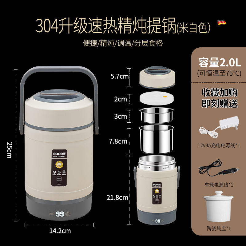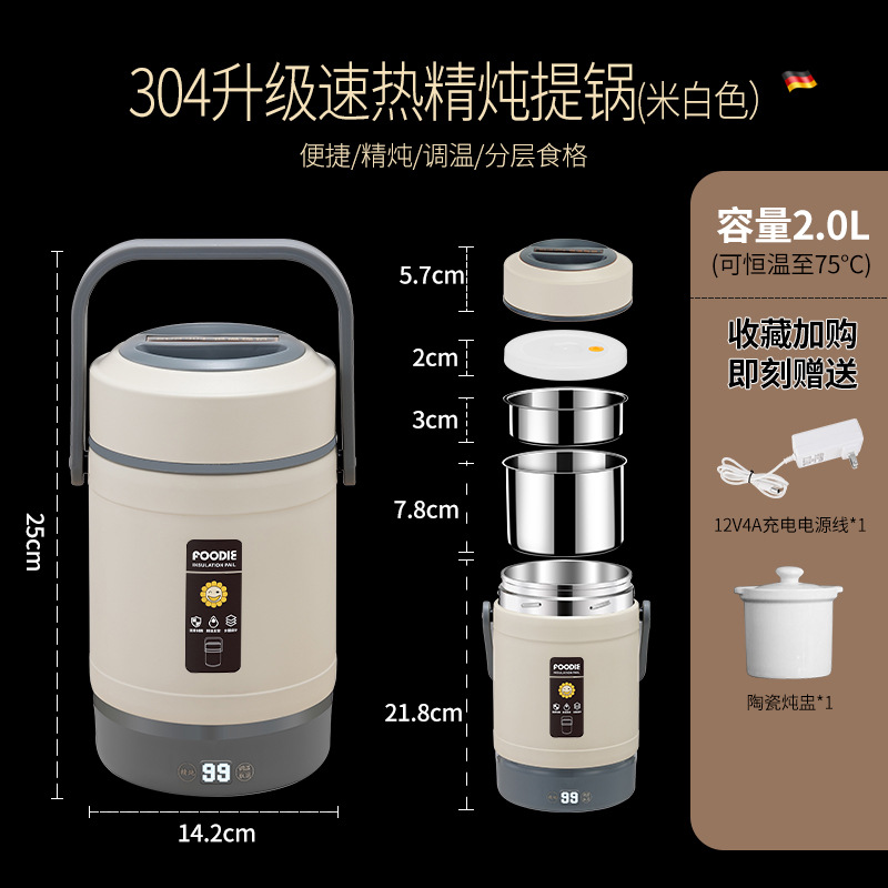 USB加热恒温饭桶304不锈钢大容量饭盒户外上班族便携保温提锅批发