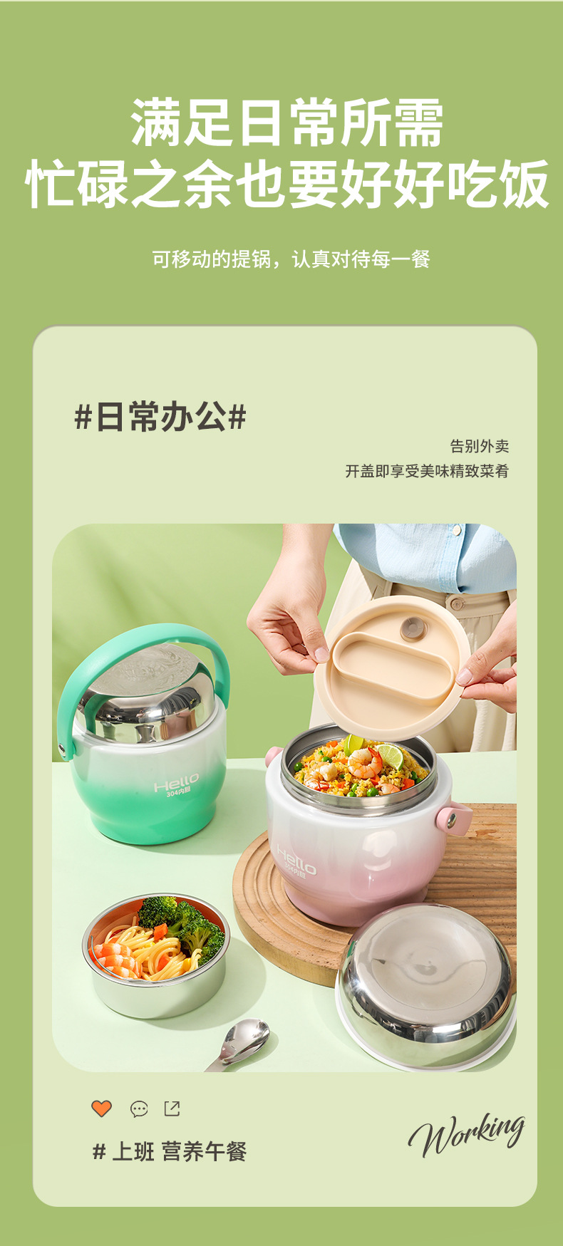 保温饭盒新款提锅多层真空保温高颜值学生上班便携式餐盒饭盒提桶