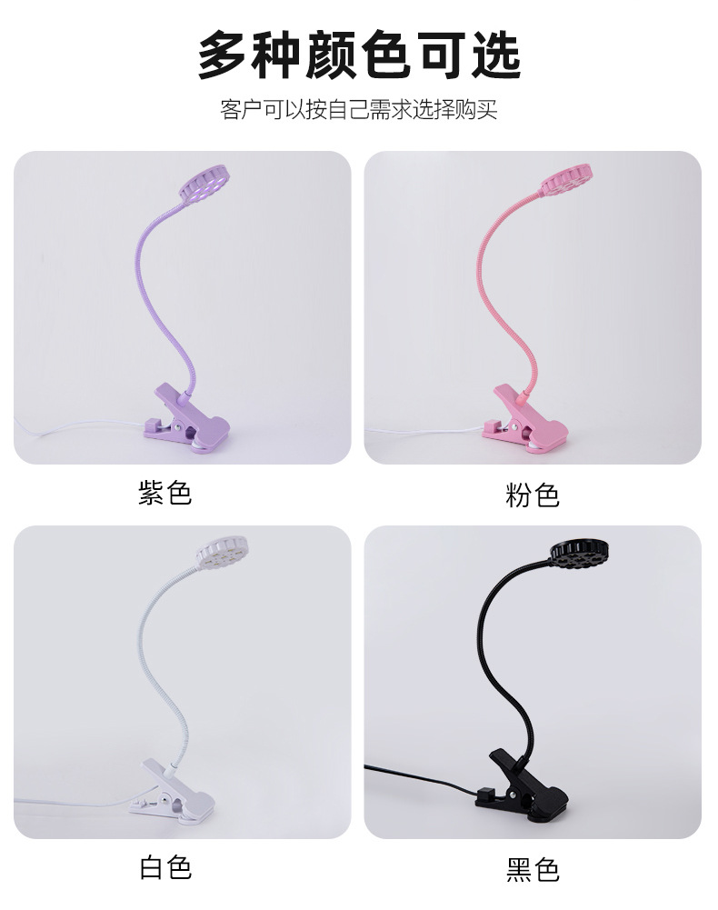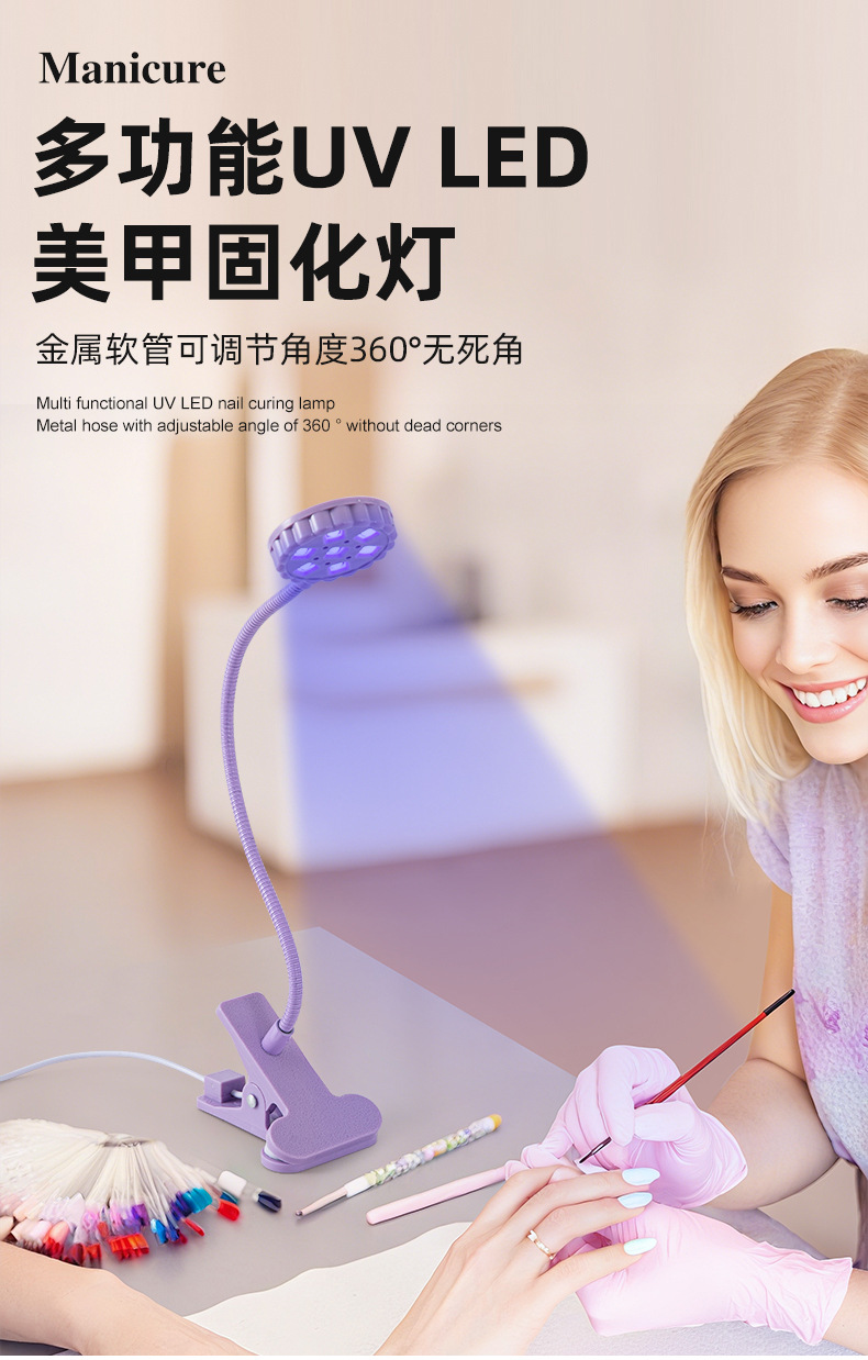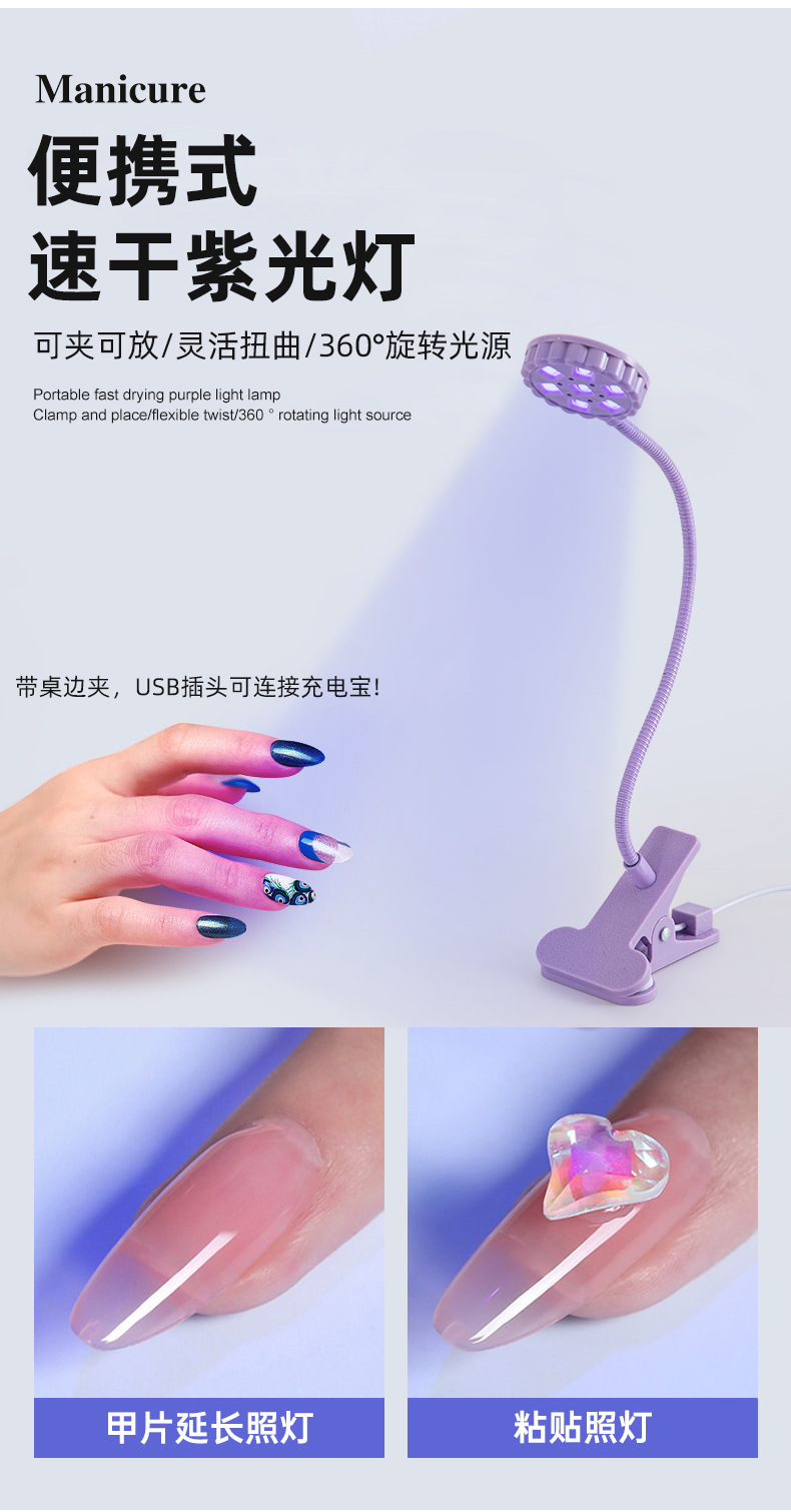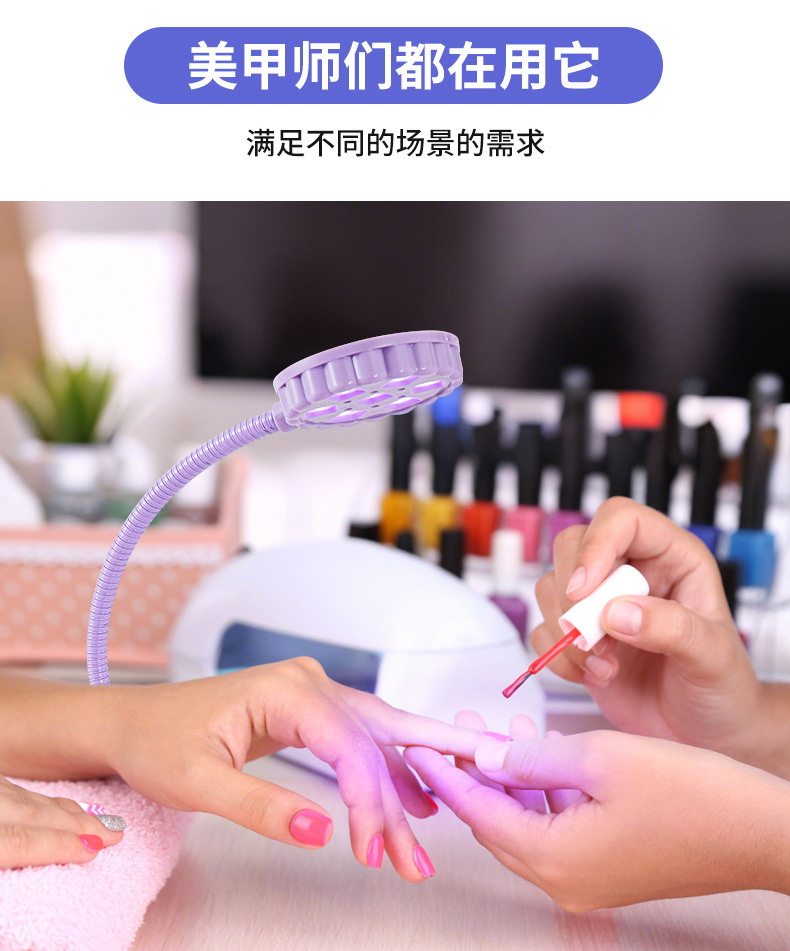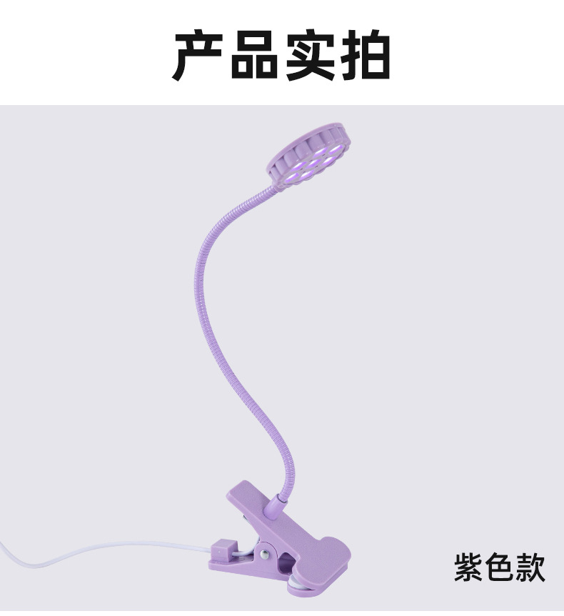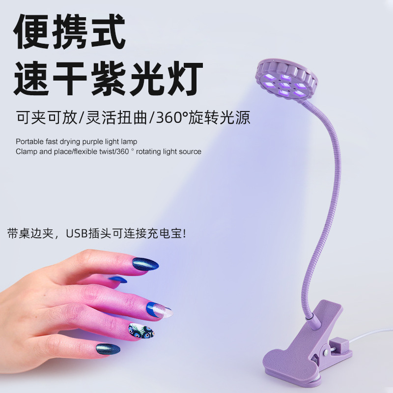 鹅颈美甲灯USB夹子台灯美甲光疗灯指甲油UV胶固化紫光灯小夜灯