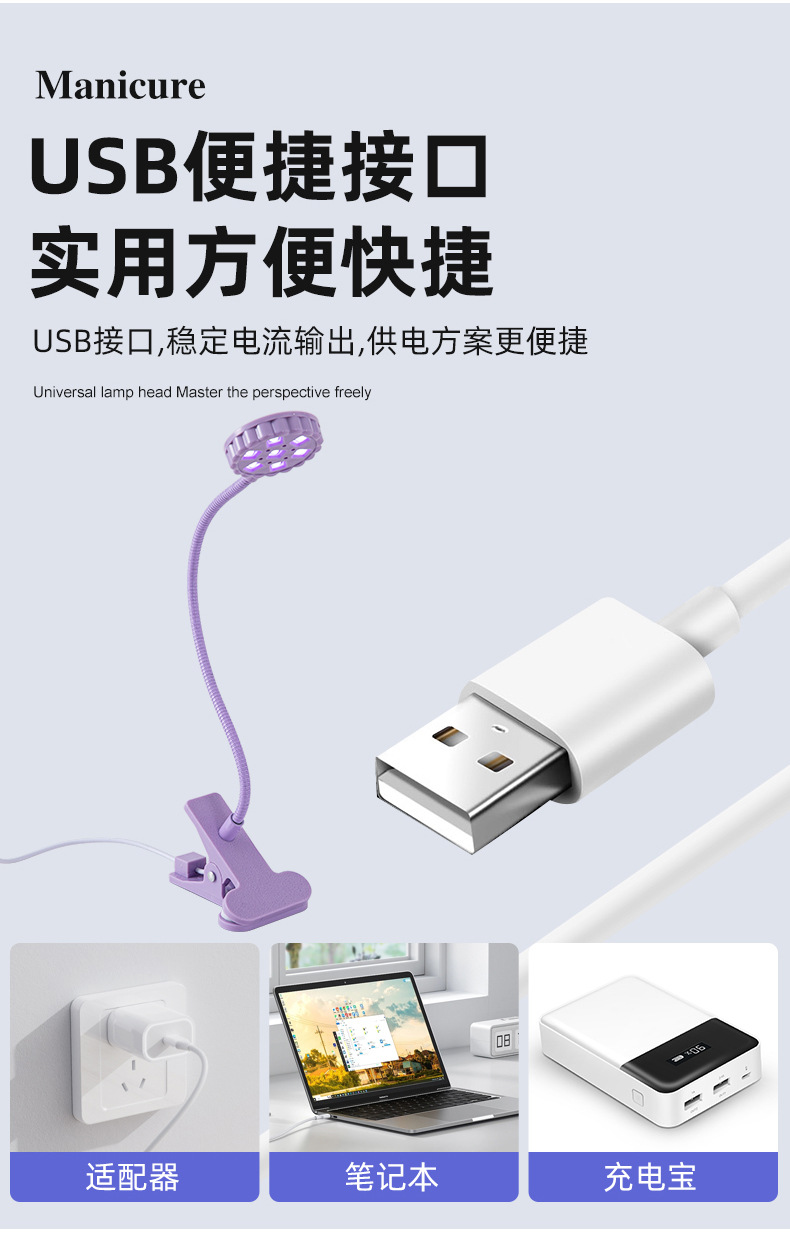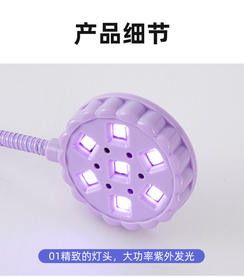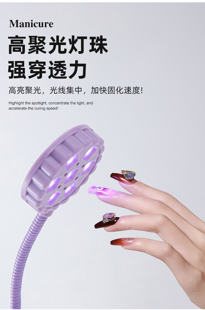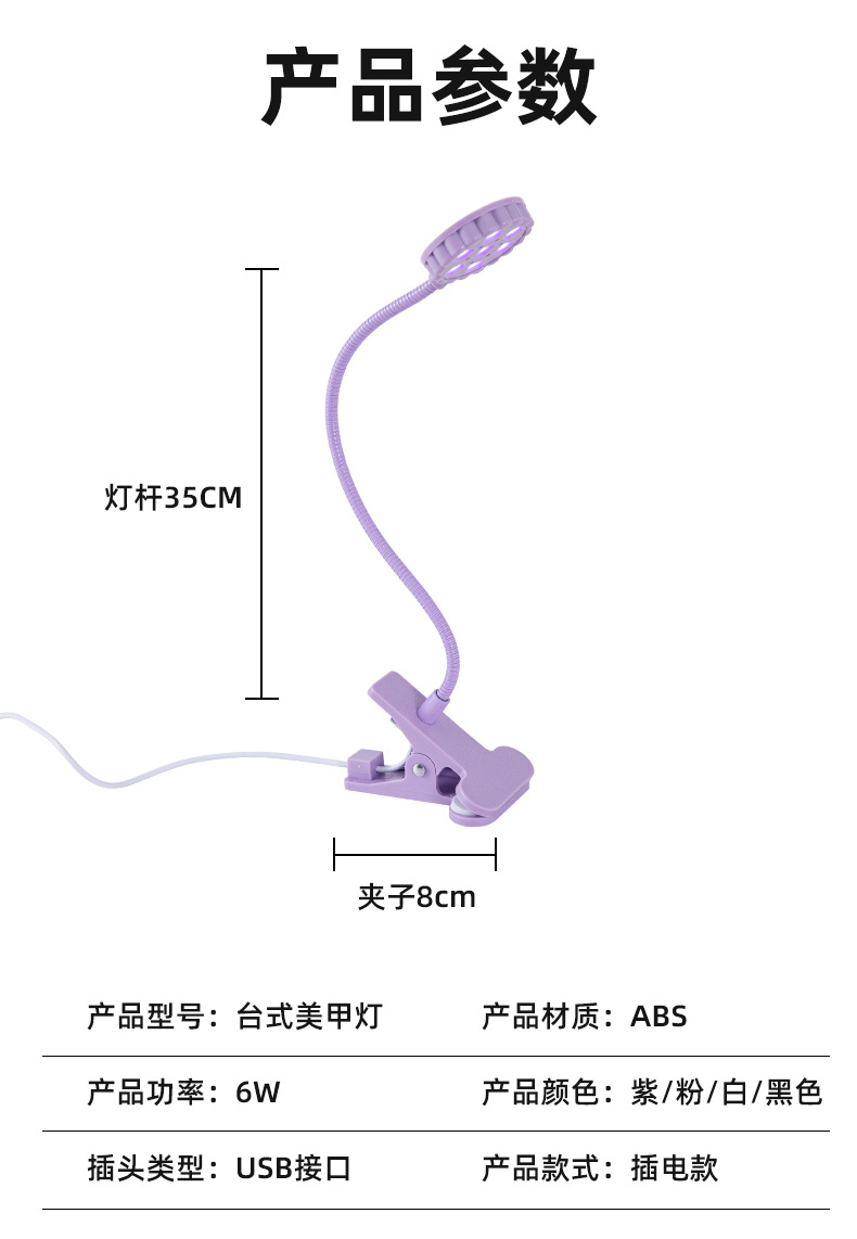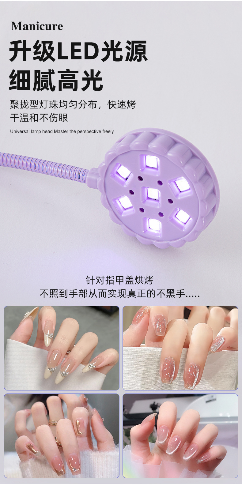 鹅颈美甲灯USB夹子台灯美甲光疗灯指甲油UV胶固化紫光灯小夜灯