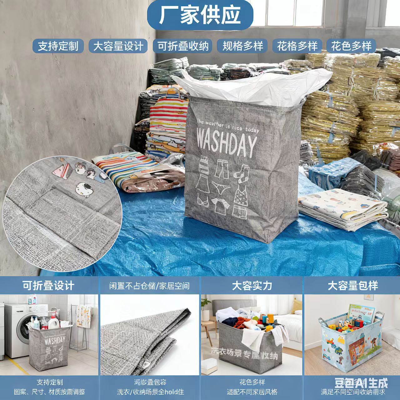 巨无霸收纳盒脏衣篓仿麻收纳袋玩具收纳箱被子脏衣篓源头厂家批发