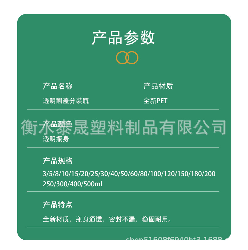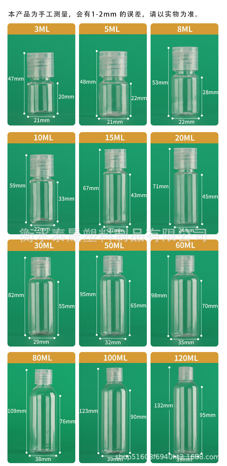 | 100毫升;透明瓶子+透明色翻盖 | USD $0.05 | 78971 piece available |