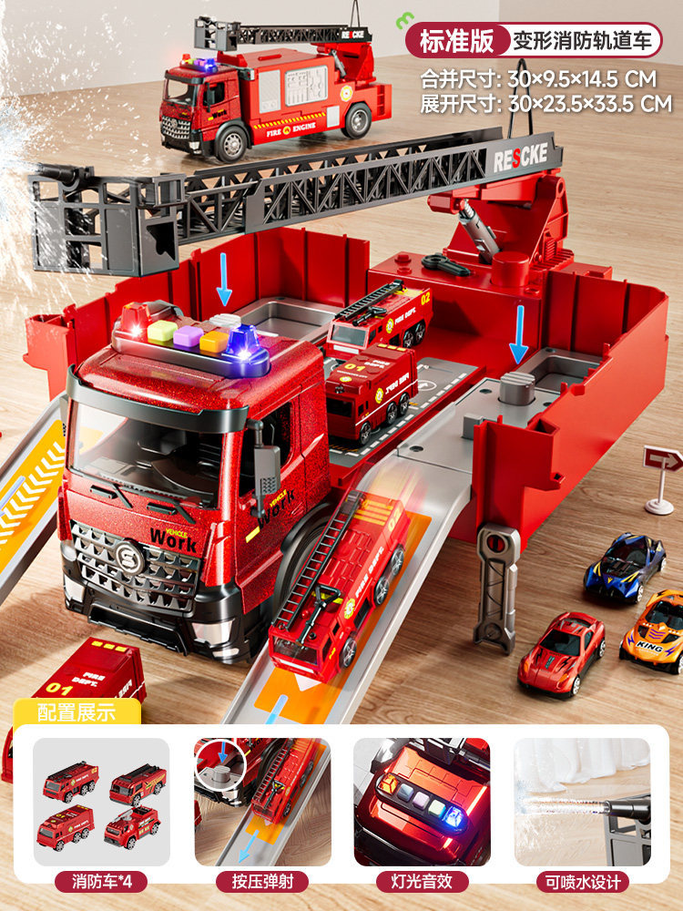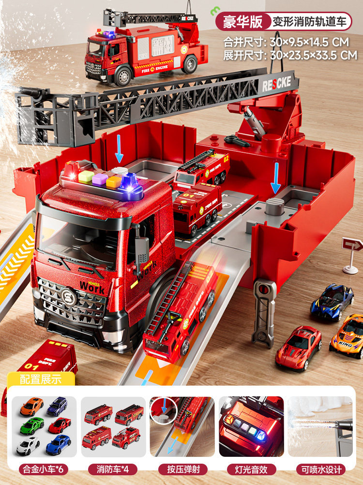山姆同款救援消防车多功能停车场可收纳喷水弹射云梯车警察车玩具