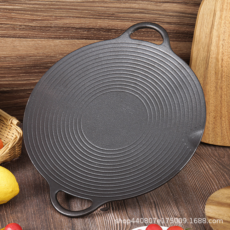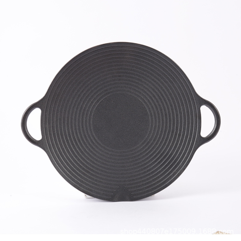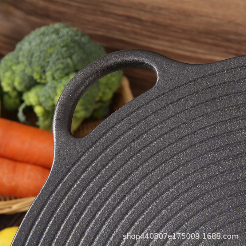 户外露营无涂层铸铁烧烤盘韩式烤肉盘铁板烧家用不粘条纹平底锅