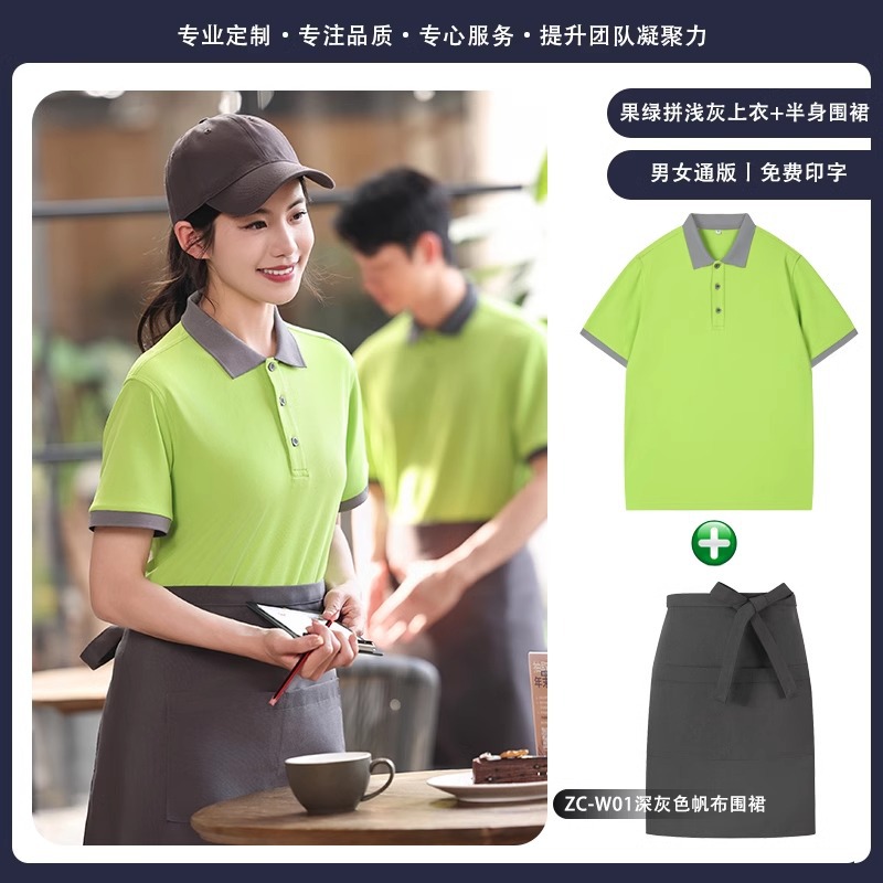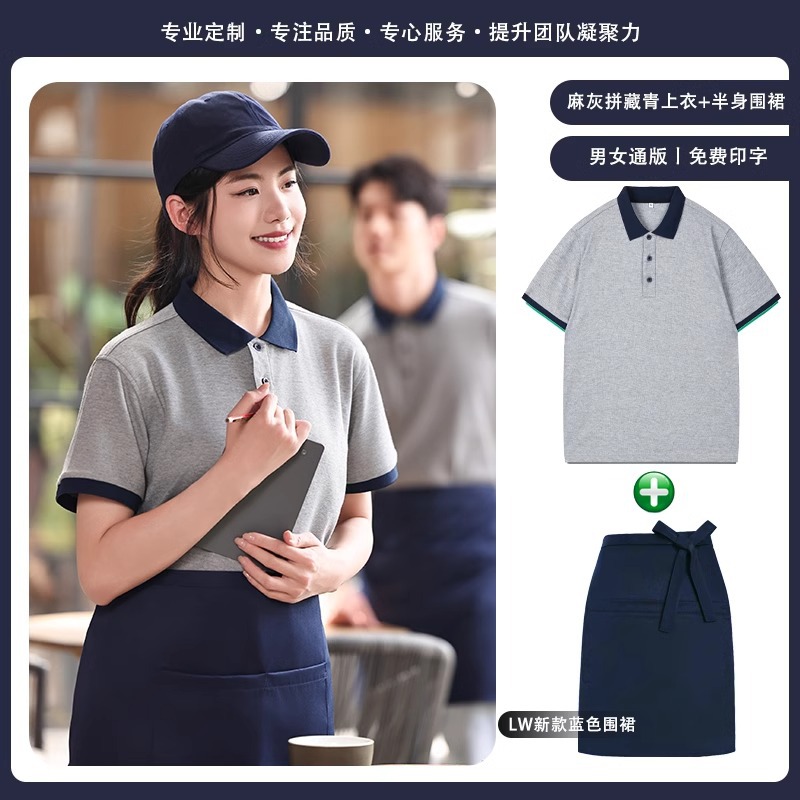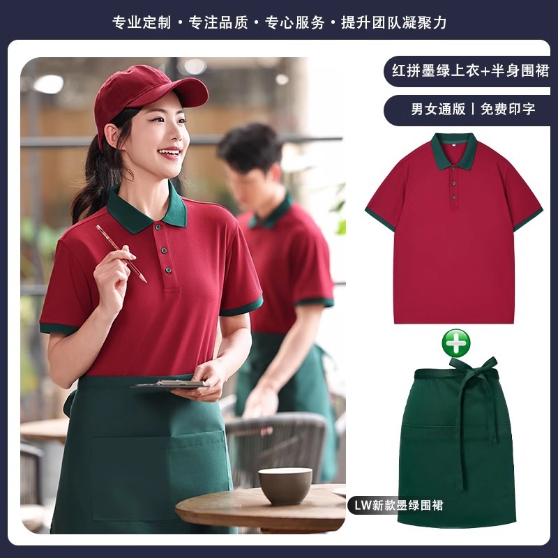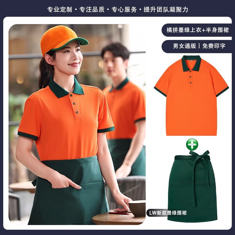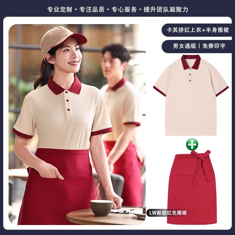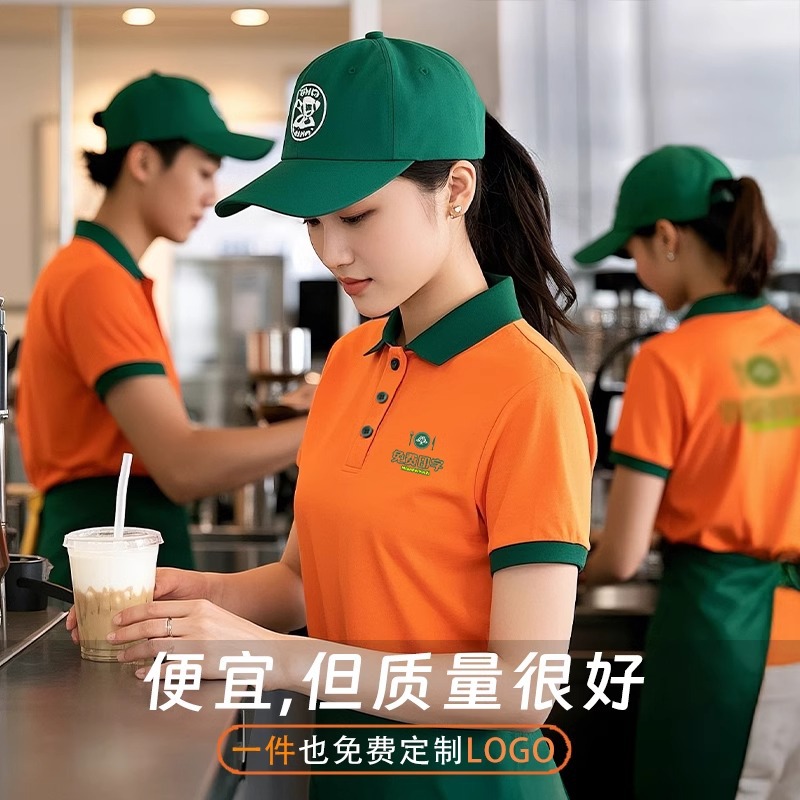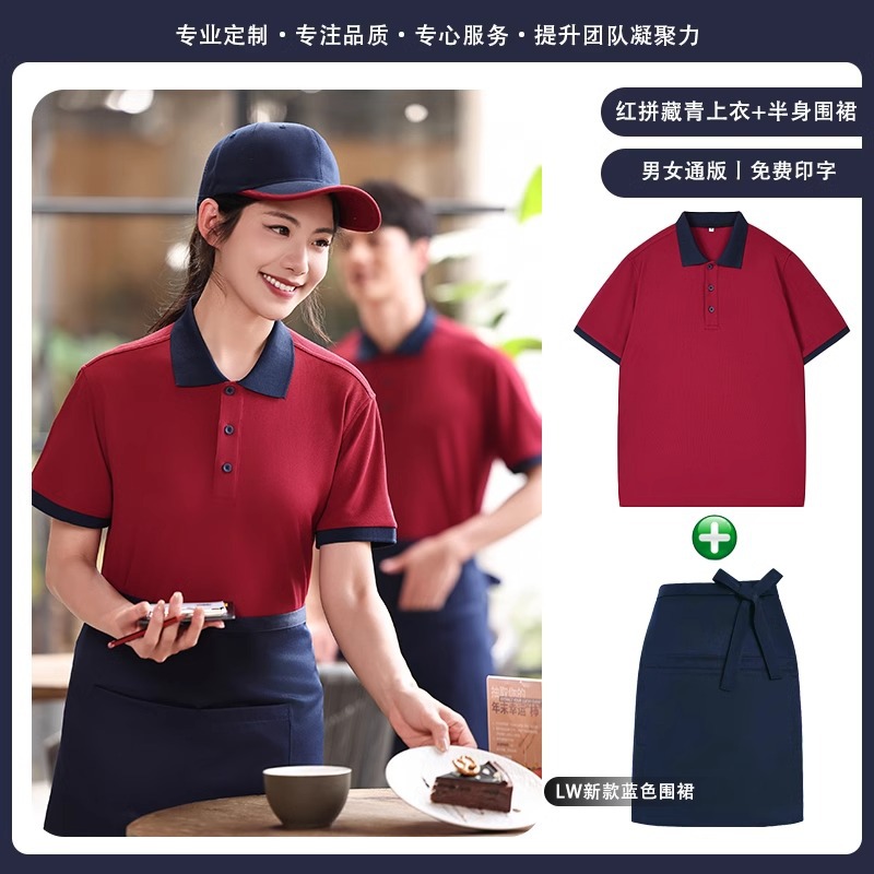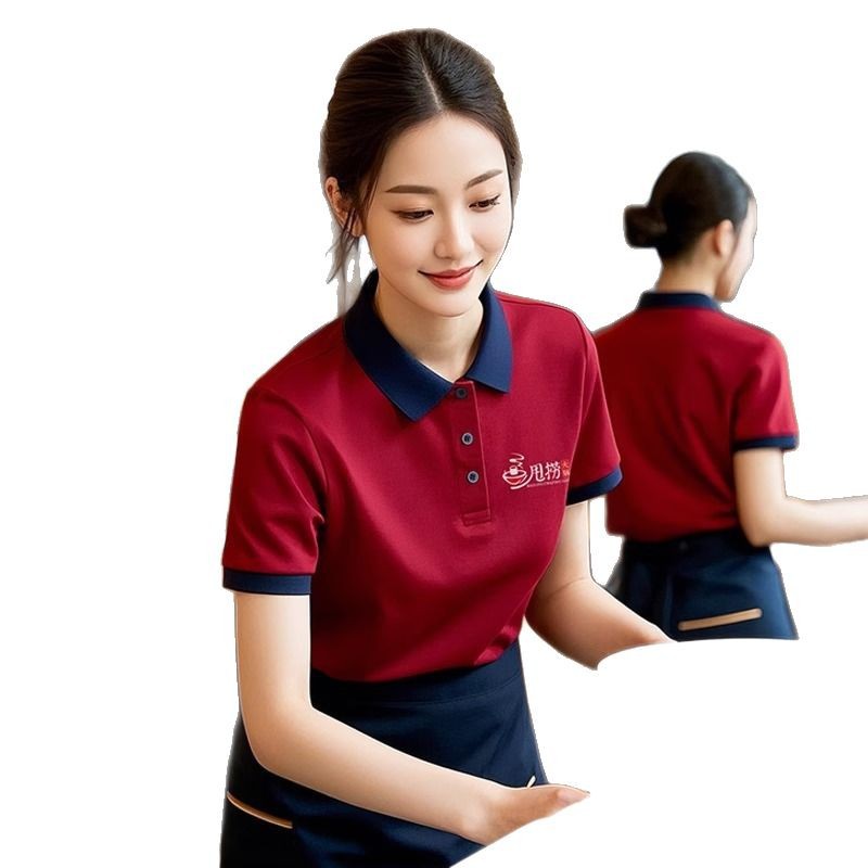 火锅店服务员工作服t恤餐烧烤饮饭店翻领夏季短袖POLO衫工装