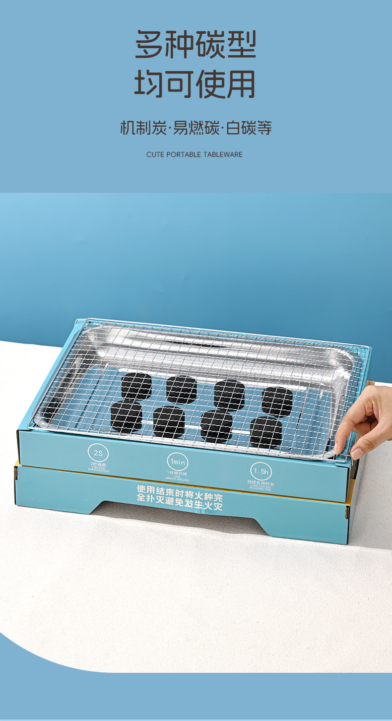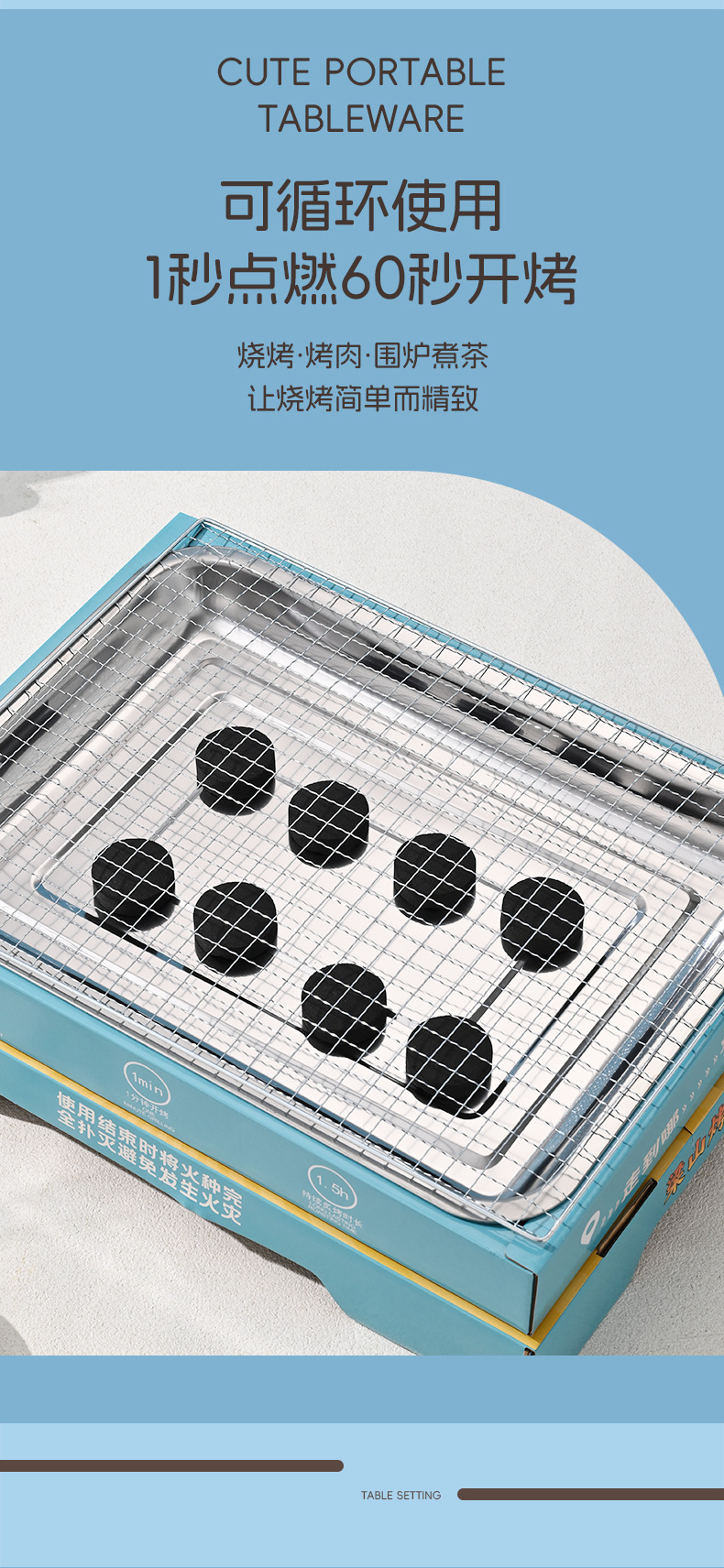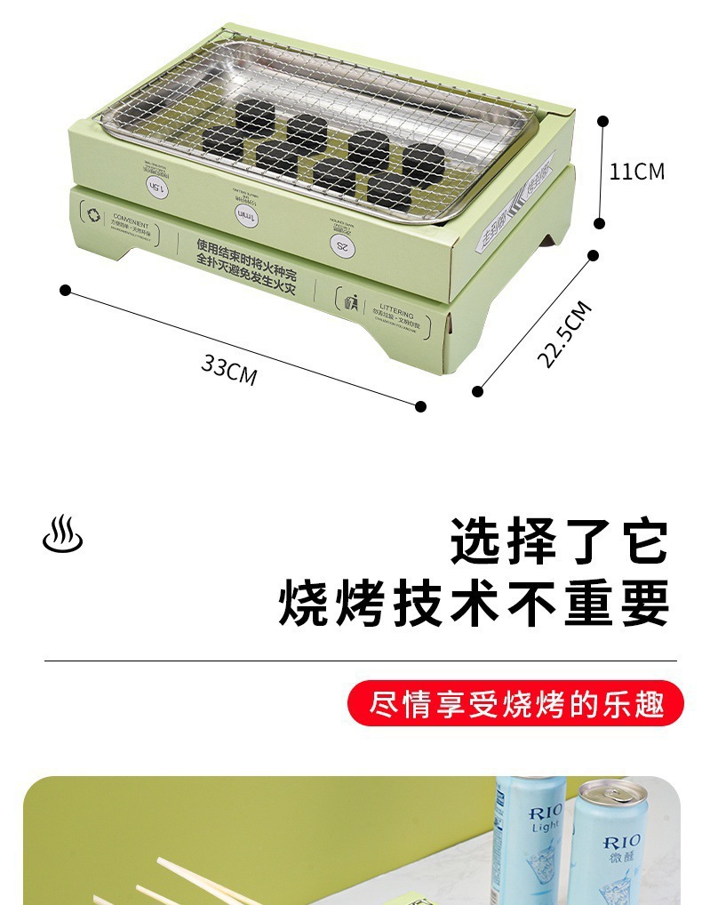 一次性烧烤炉家庭无烟碳露营果木炭驴友户外烤肉炉便携式快速起火