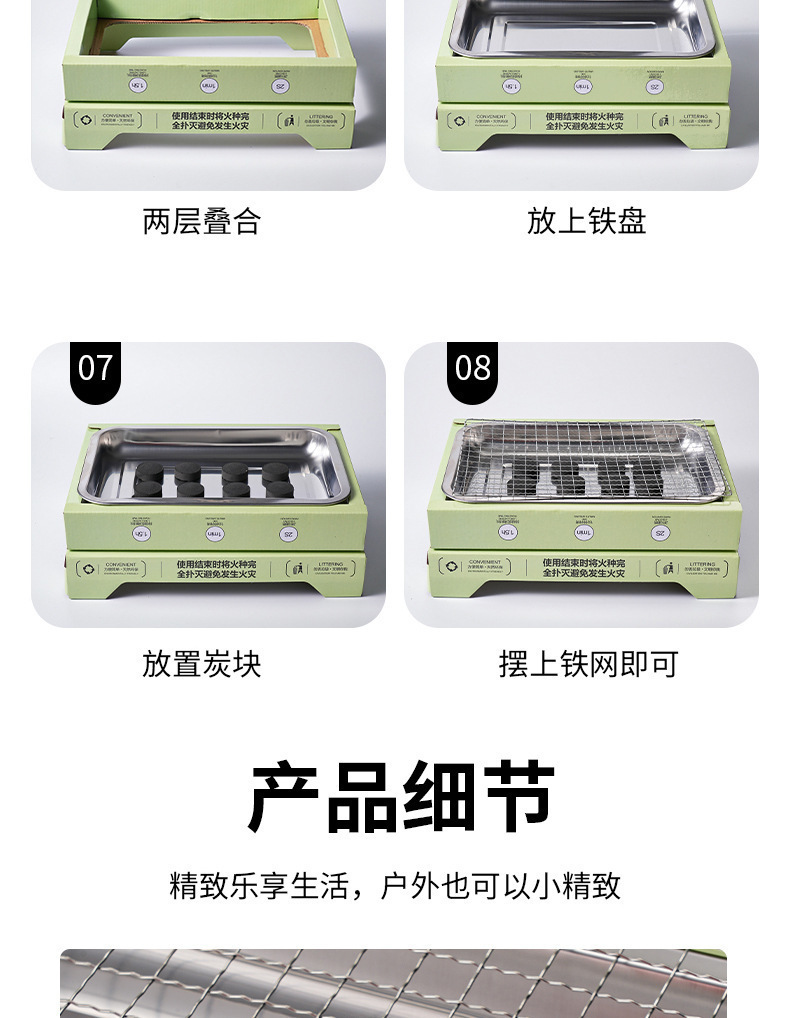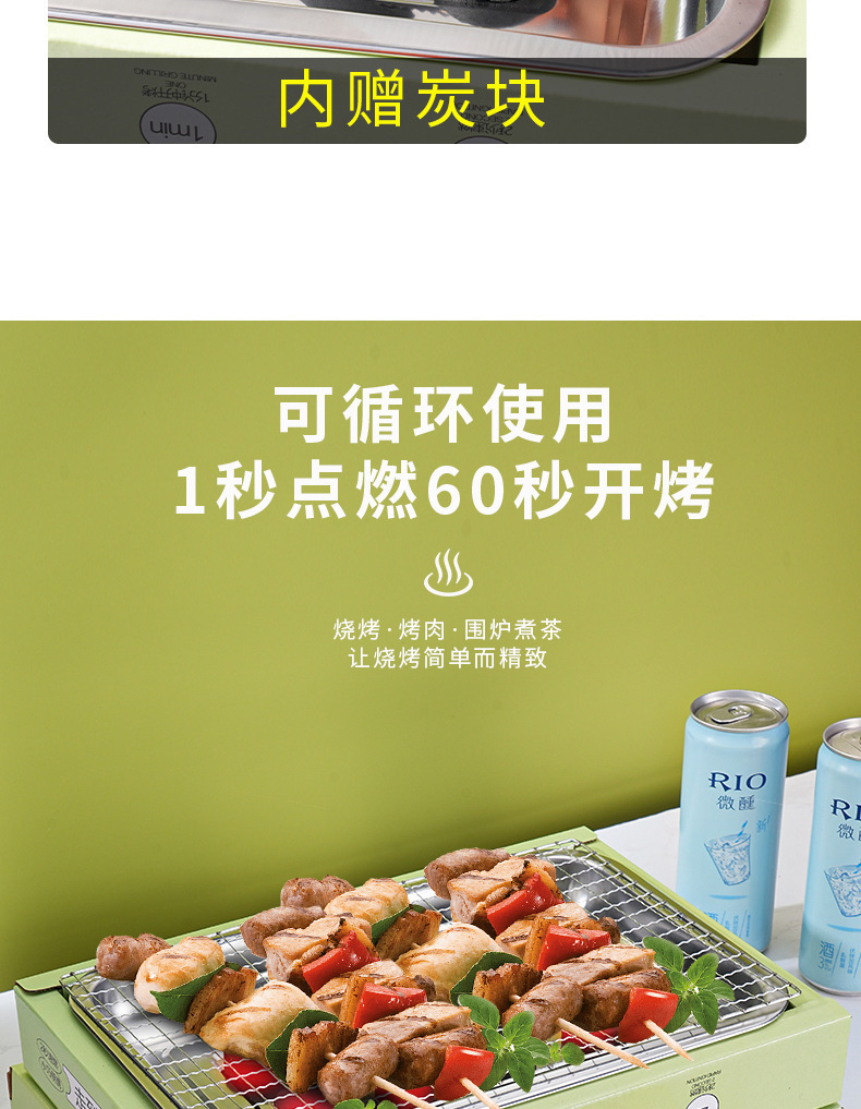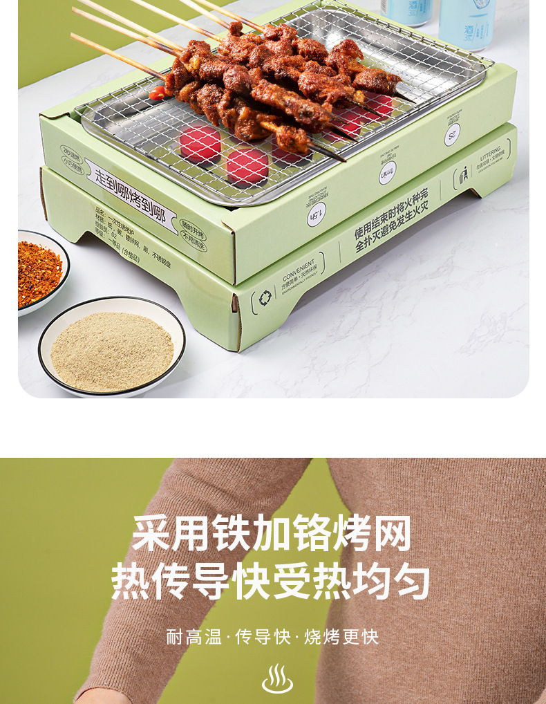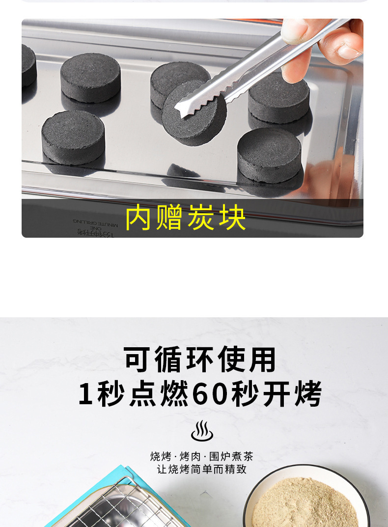 一次性烧烤炉家庭无烟碳露营果木炭驴友户外烤肉炉便携式快速起火