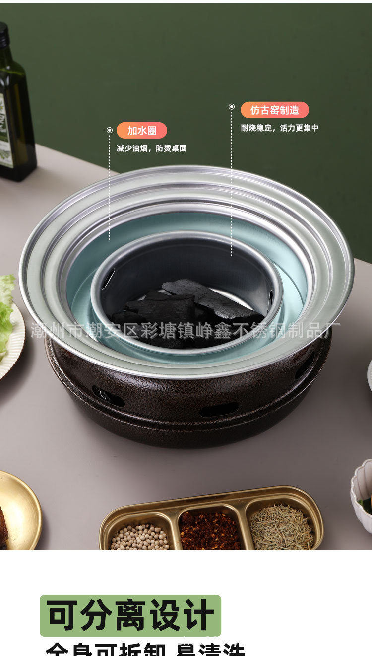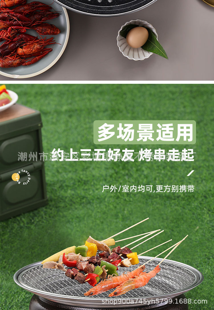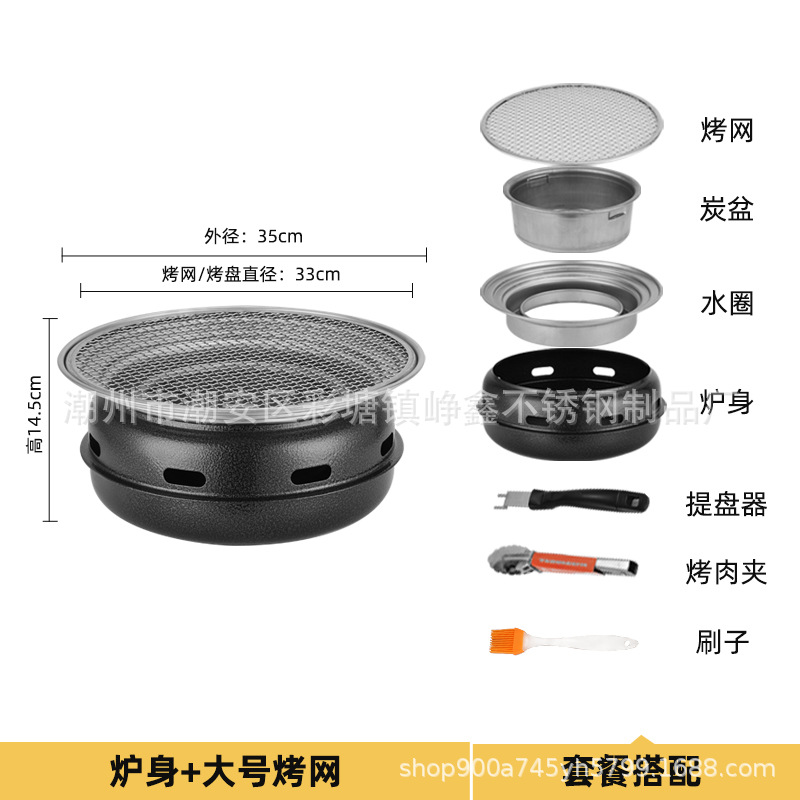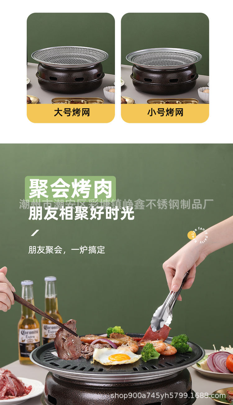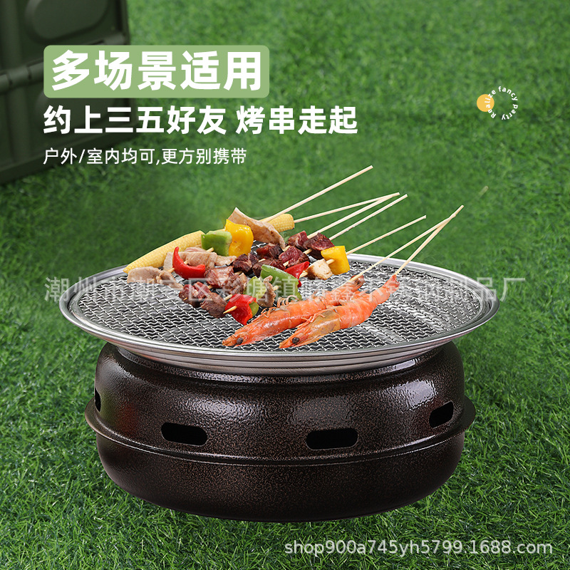 韩式木碳烧烤炉商用家用圆形烤肉炉围炉煮茶野外烤盘露营便携式
