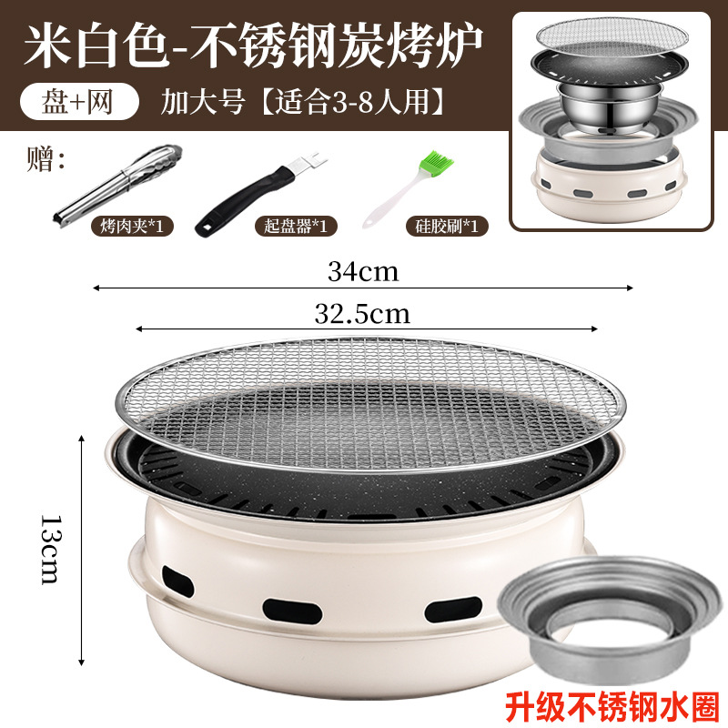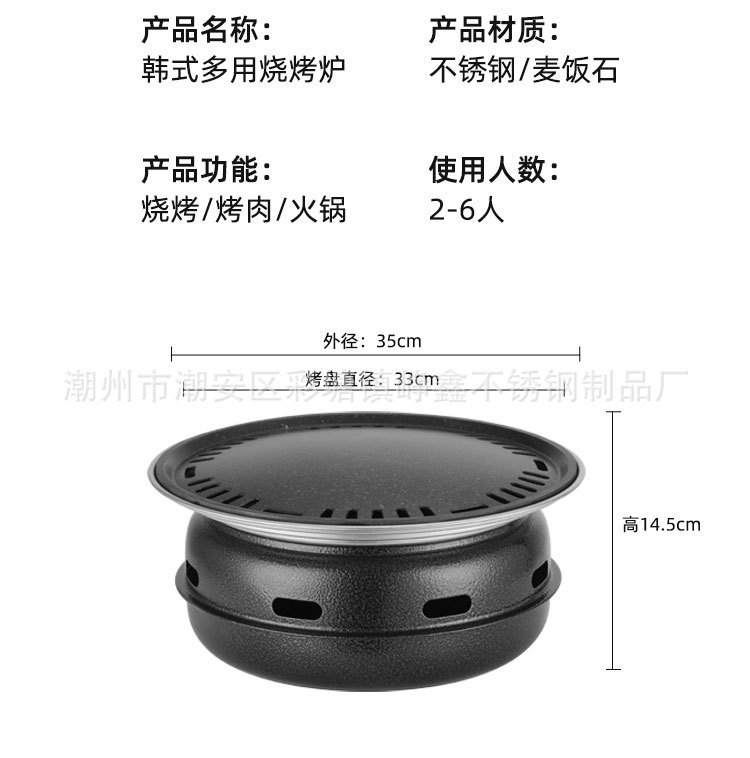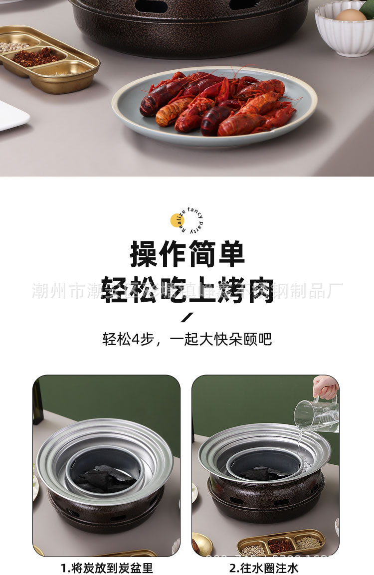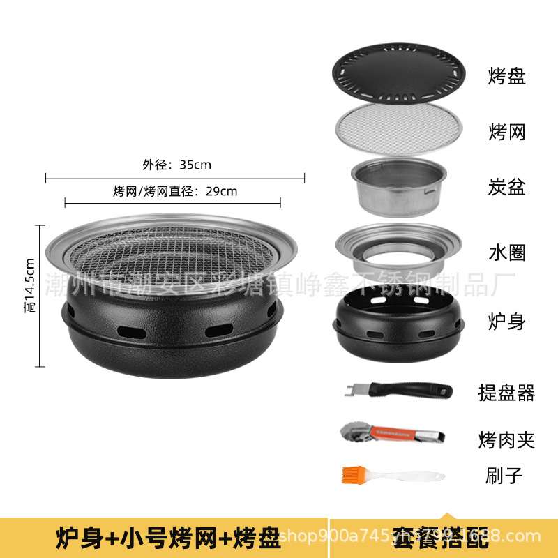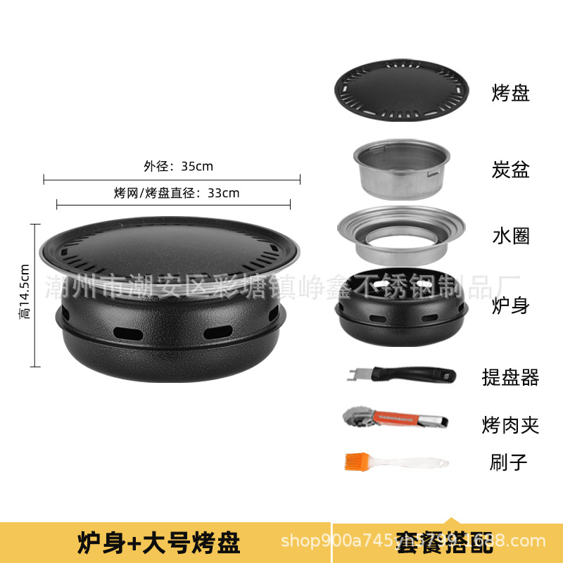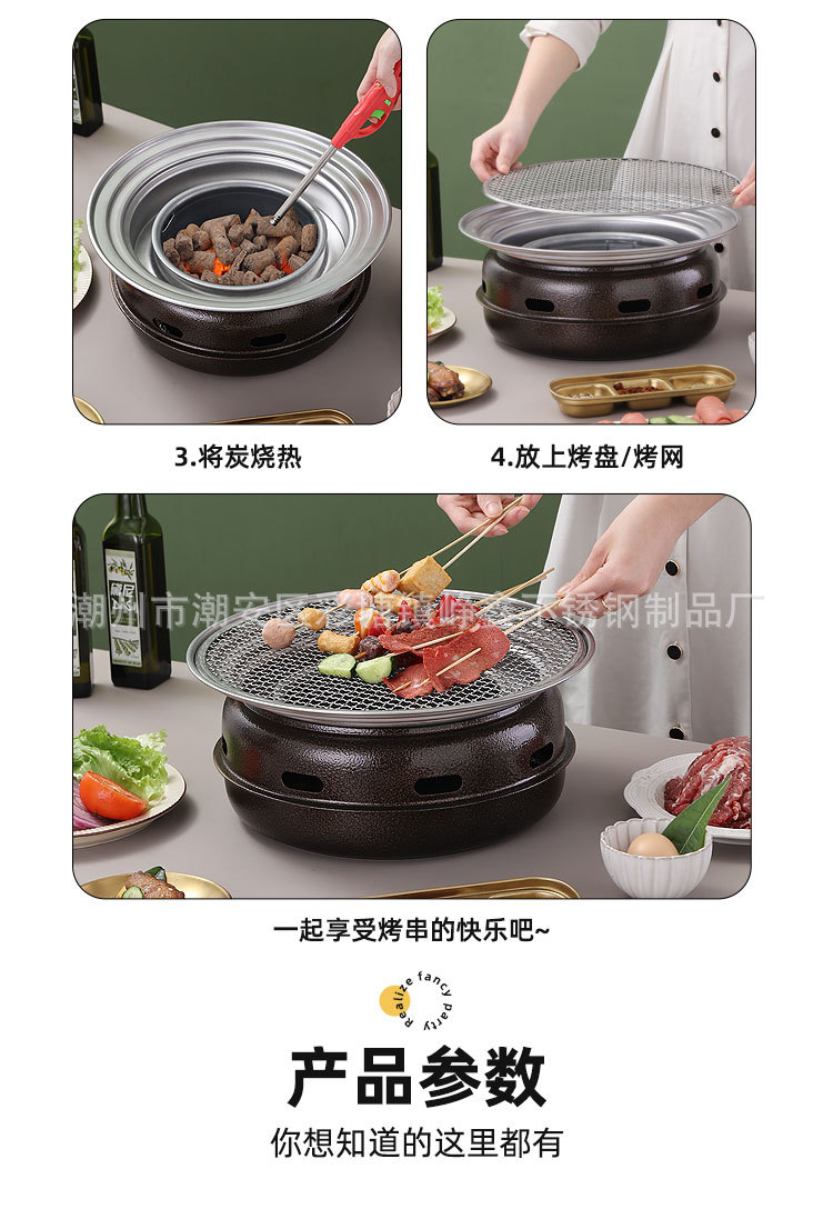 韩式木碳烧烤炉商用家用圆形烤肉炉围炉煮茶野外烤盘露营便携式