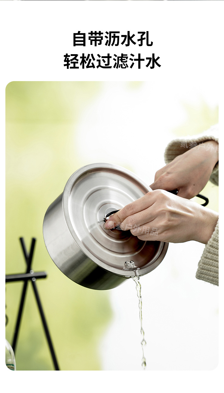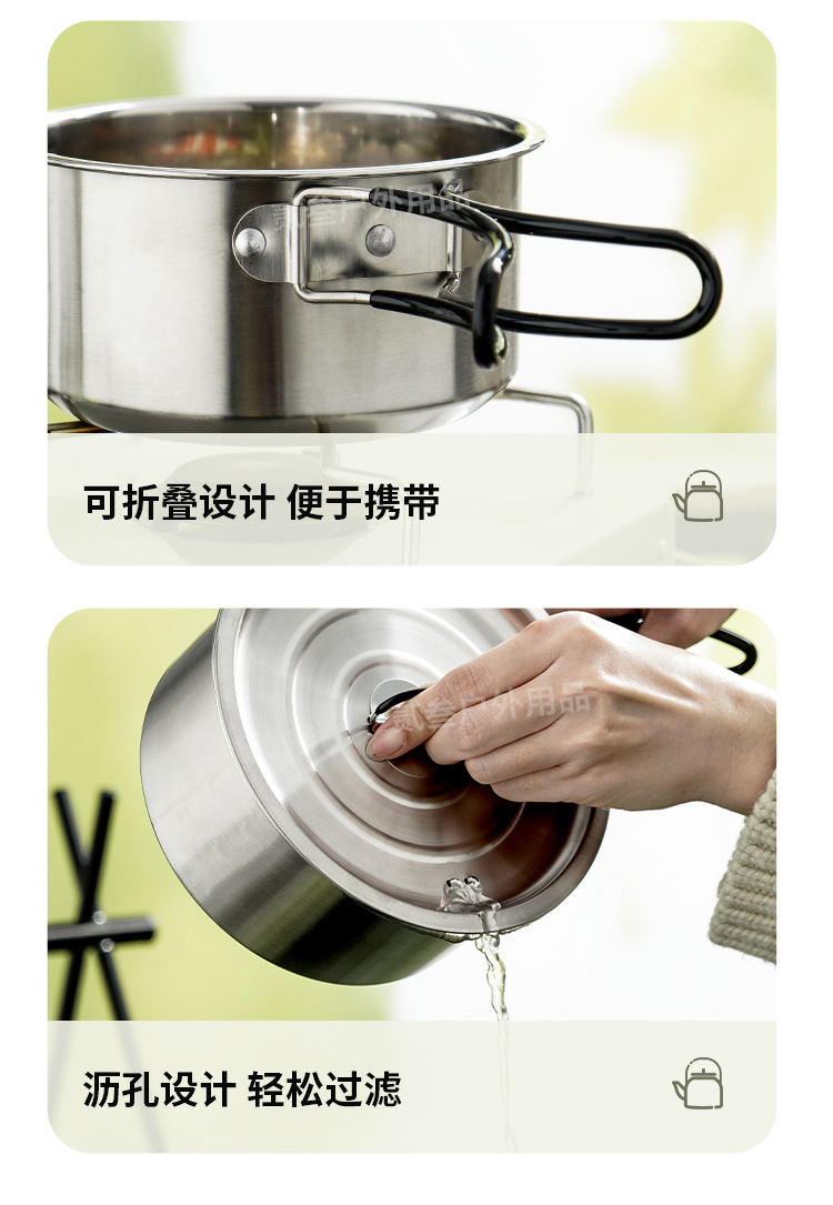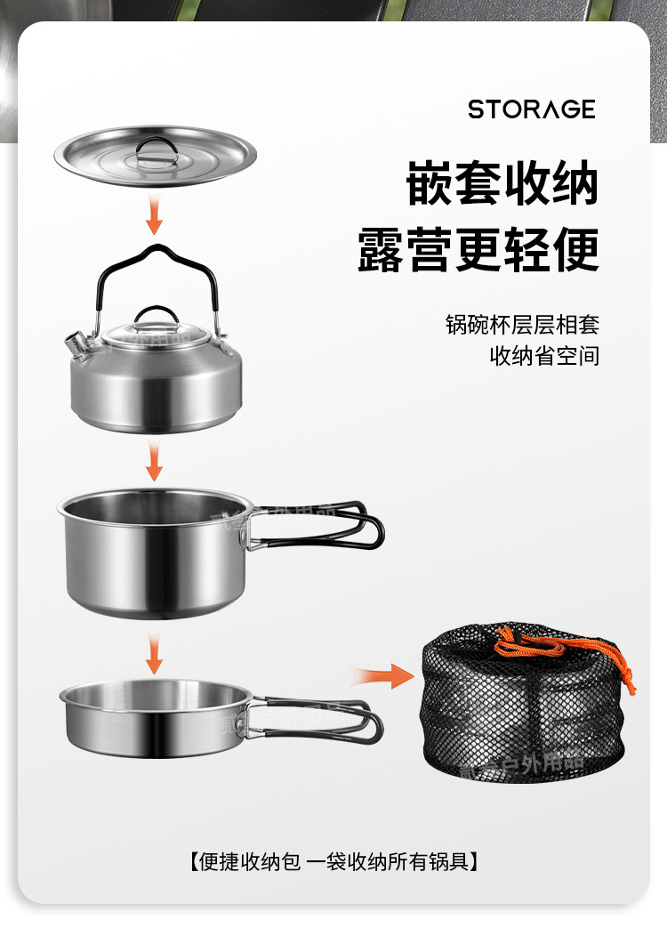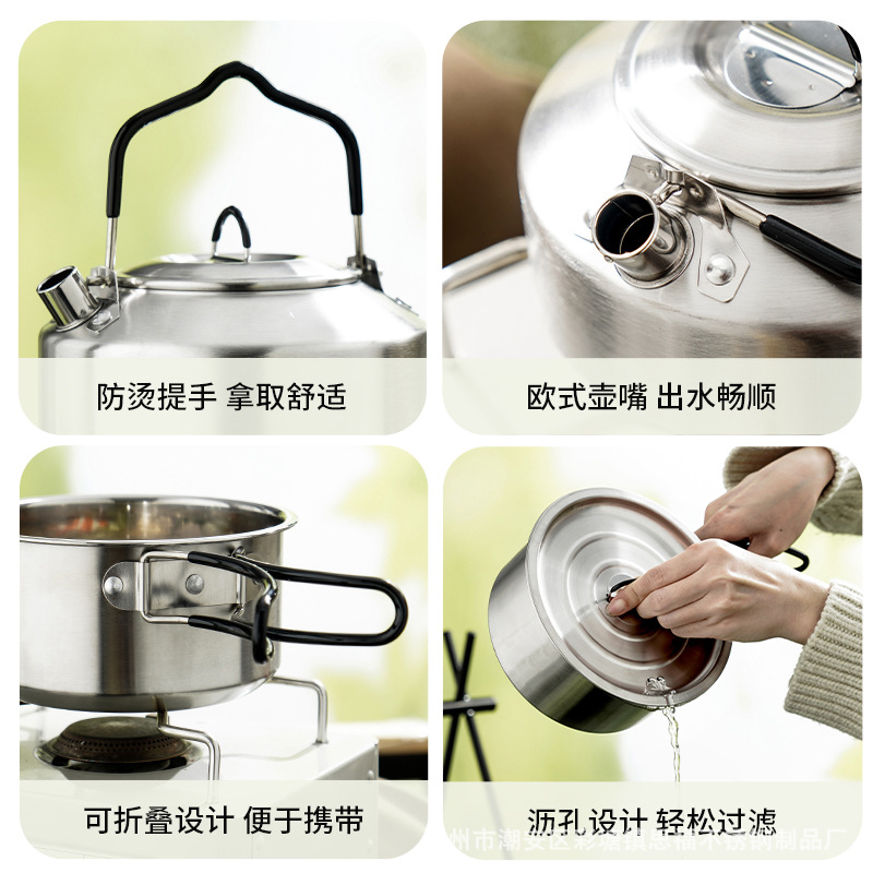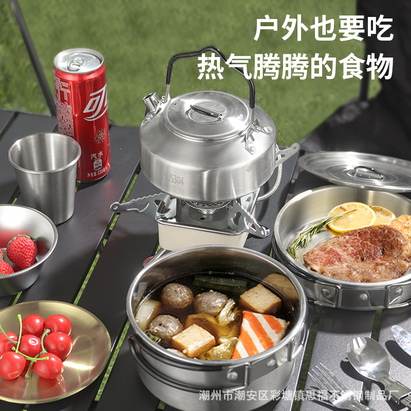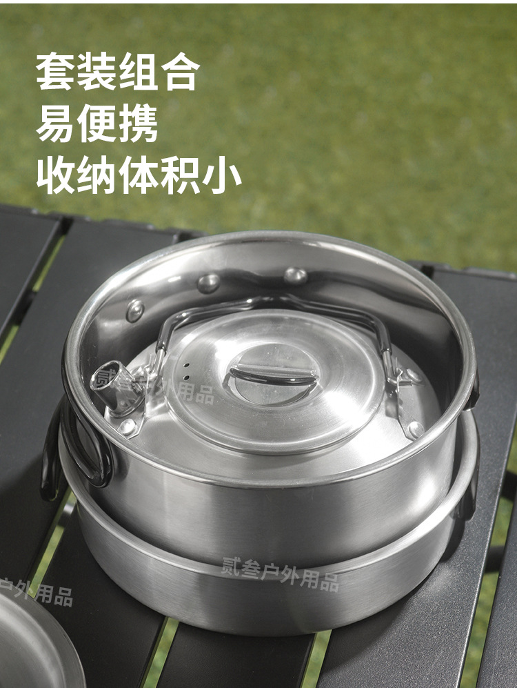 304不锈钢便携式露营炊具野营套锅套装用品户外折叠式烧水壶锅具