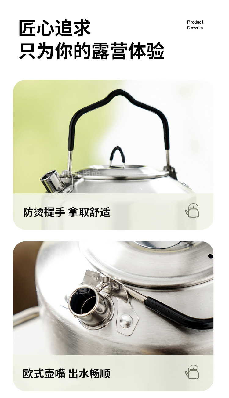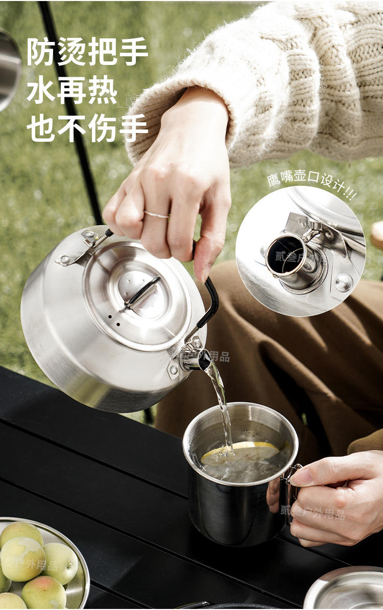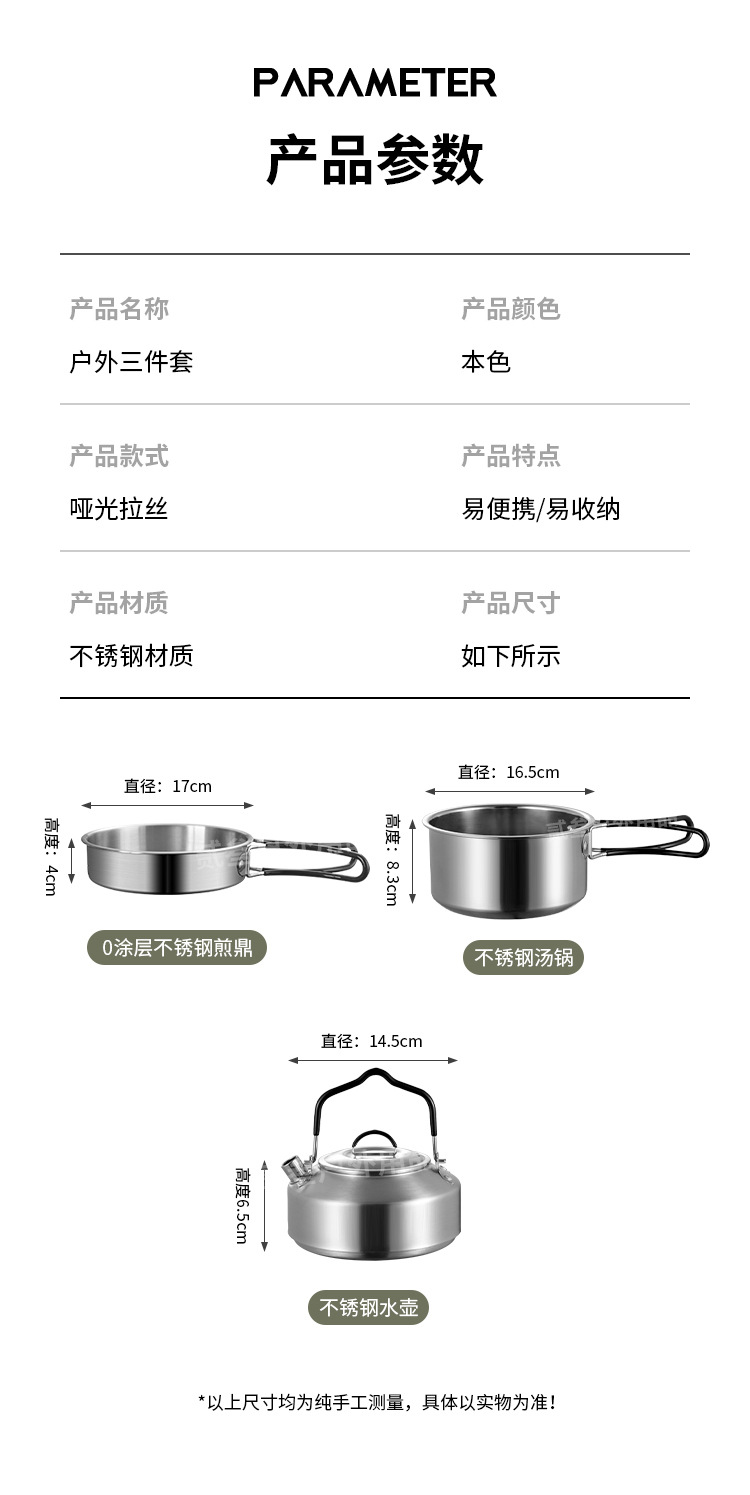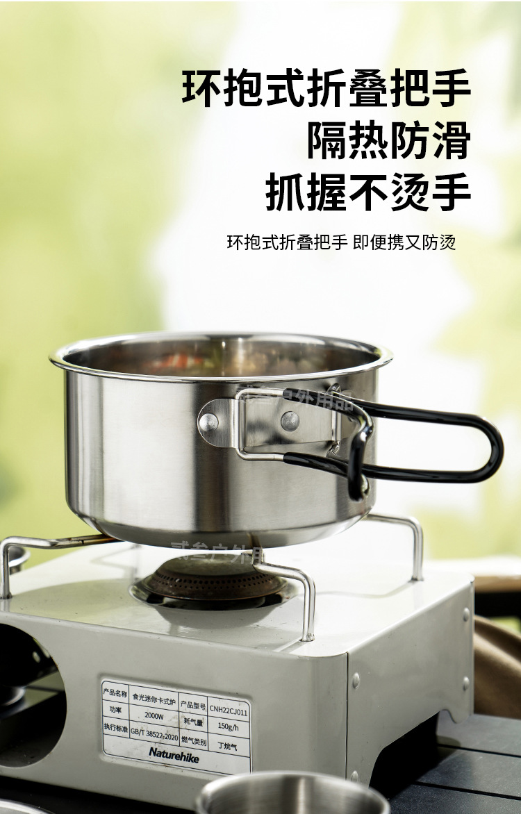 304不锈钢便携式露营炊具野营套锅套装用品户外折叠式烧水壶锅具