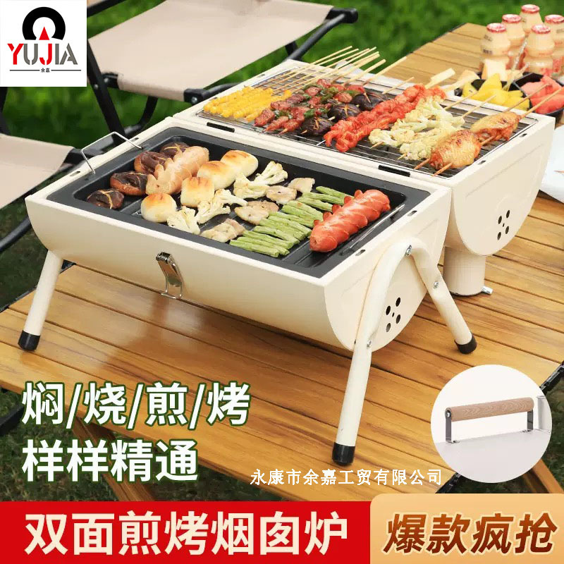 加厚烧烤炉户外便携式多功能带烟囱烤炉双面家用木炭炉子露营烤肉