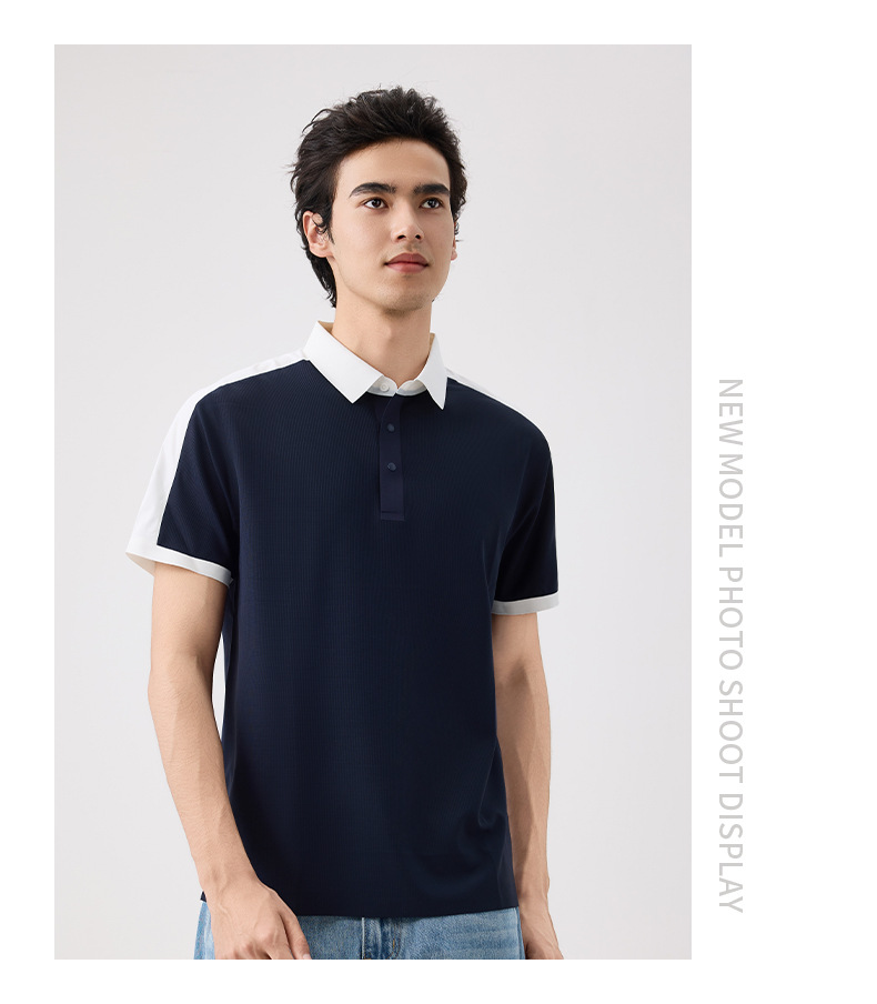 高端翻领速干t恤拼接跨境运动polo衫高尔夫俱乐部网球服男士定制
