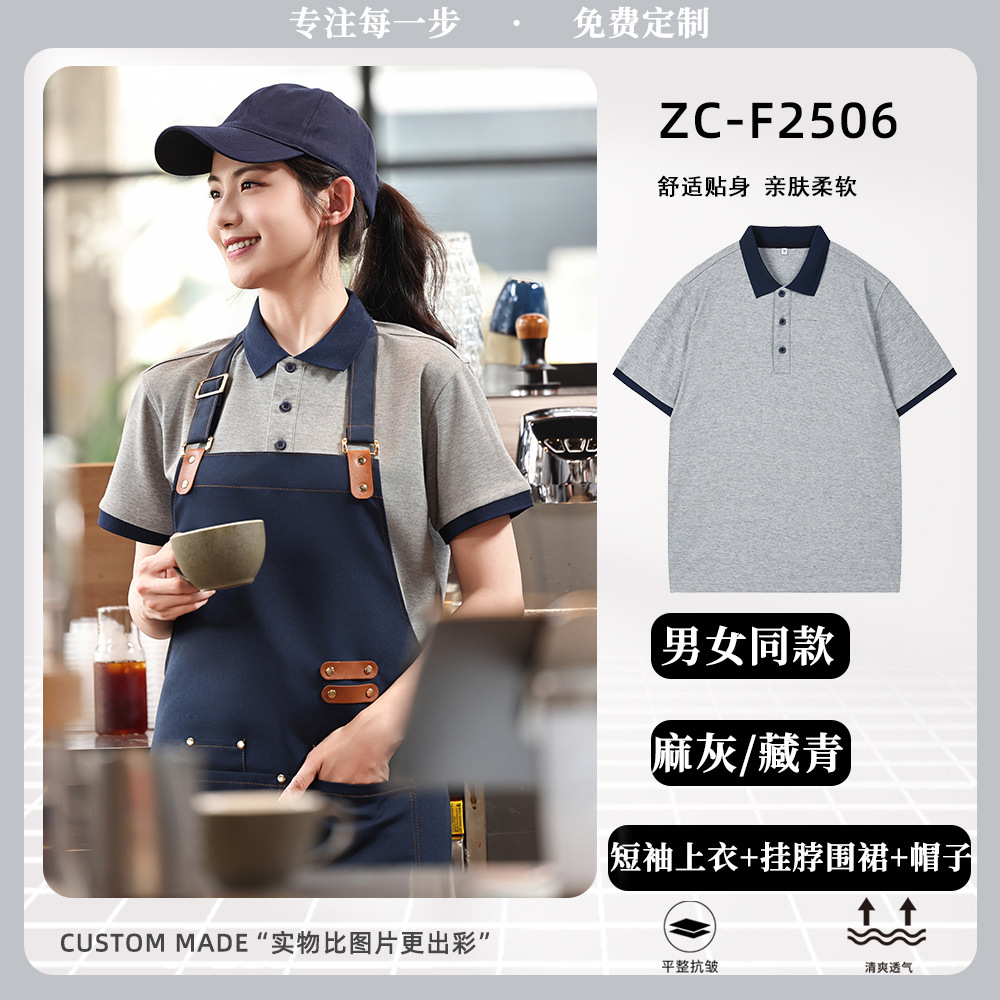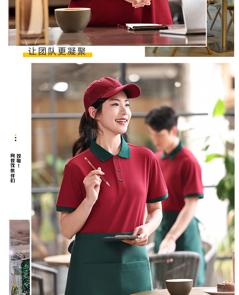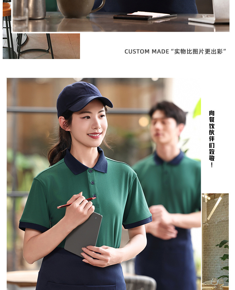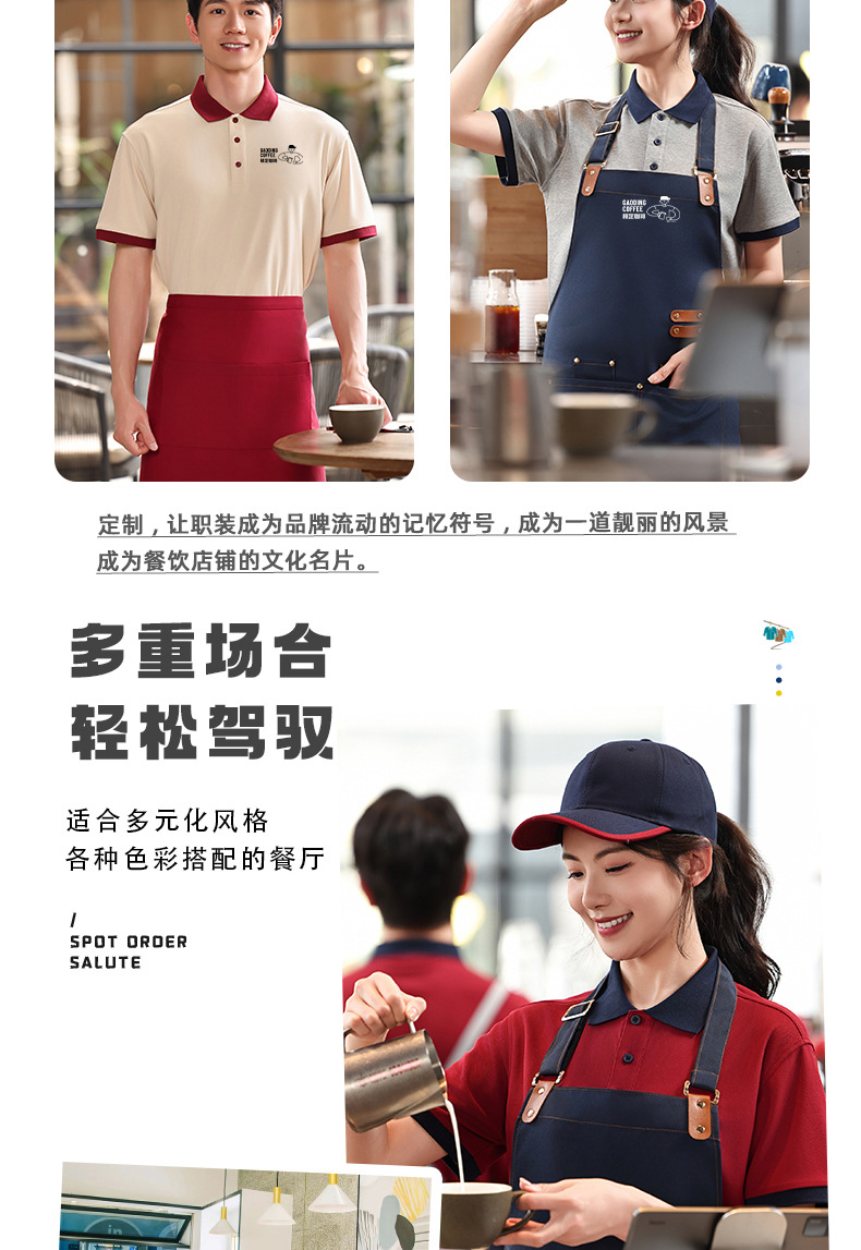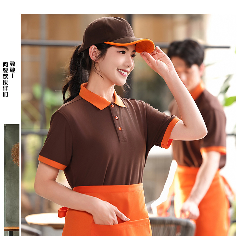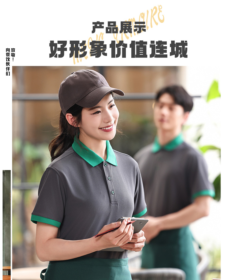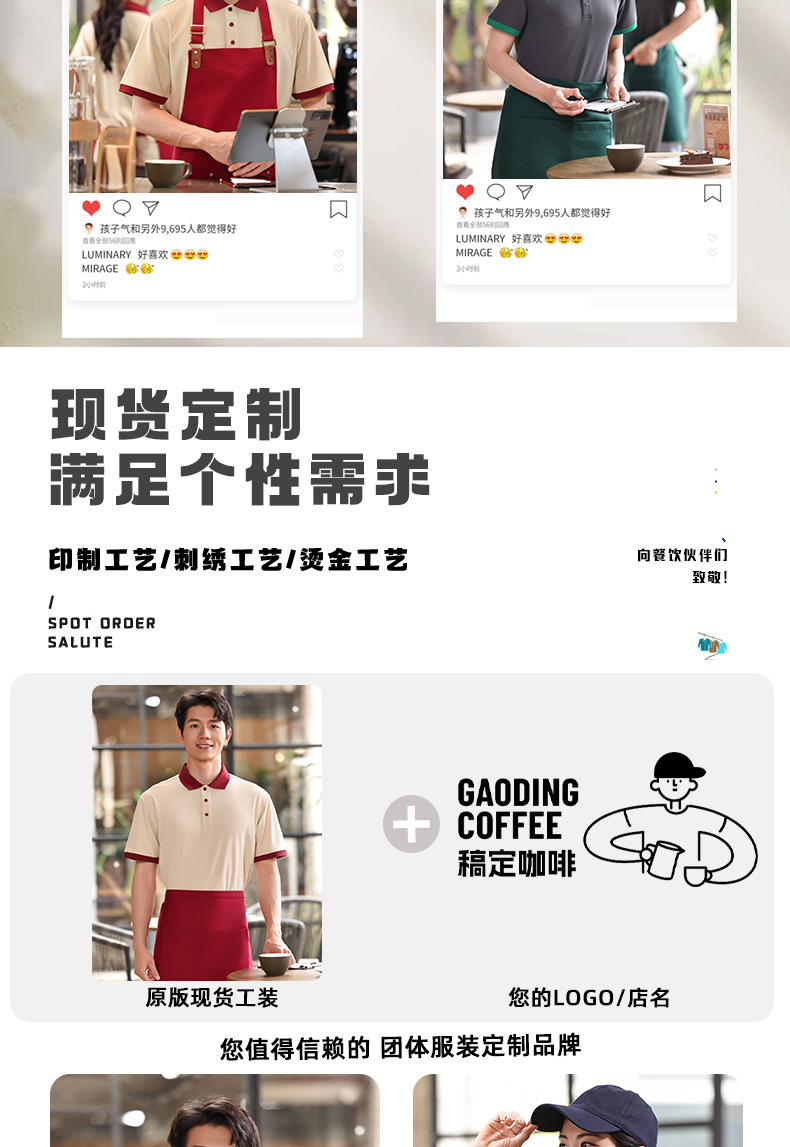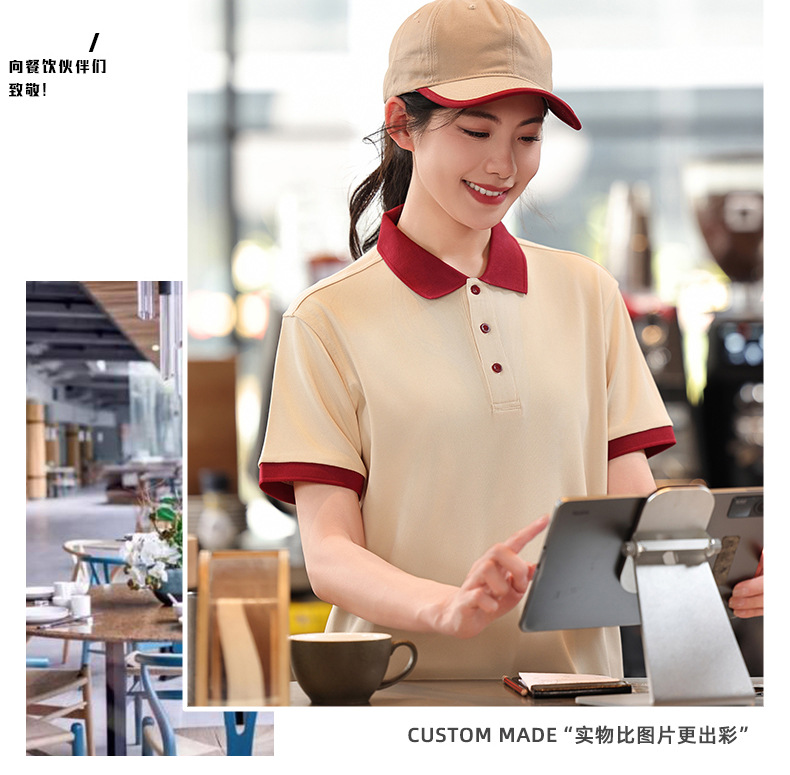 咖啡店工作服polo衫定制印logo夏季翻领奶茶店餐饮员工装短袖T恤