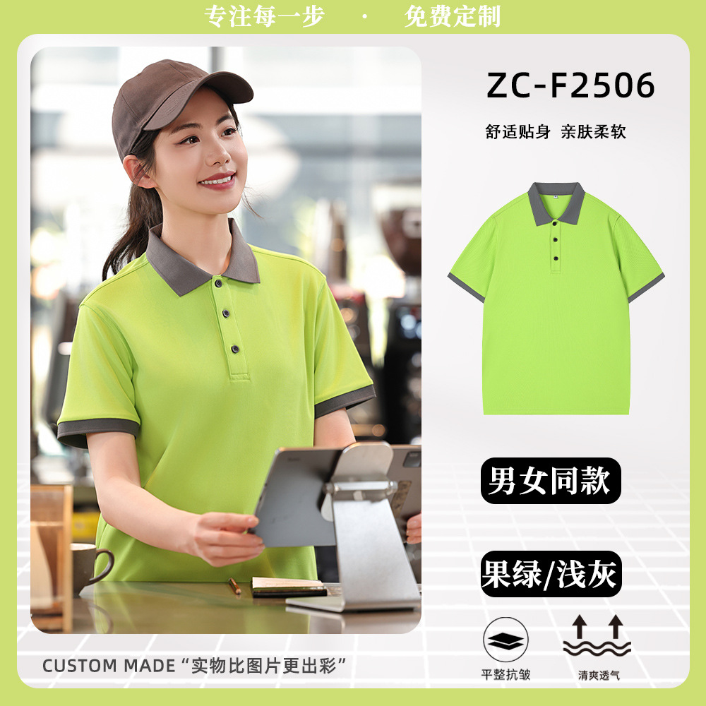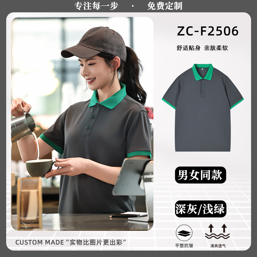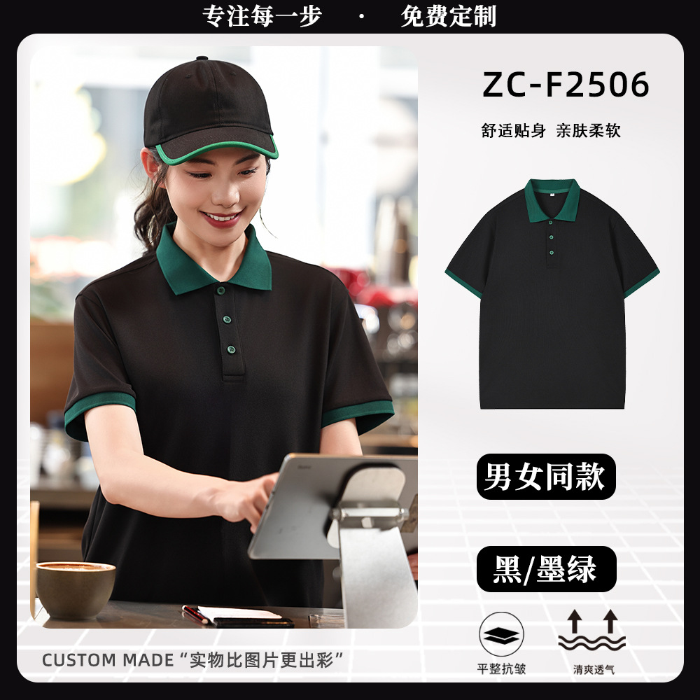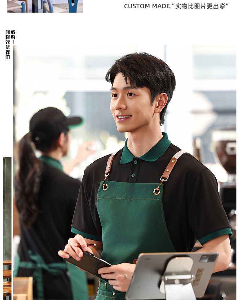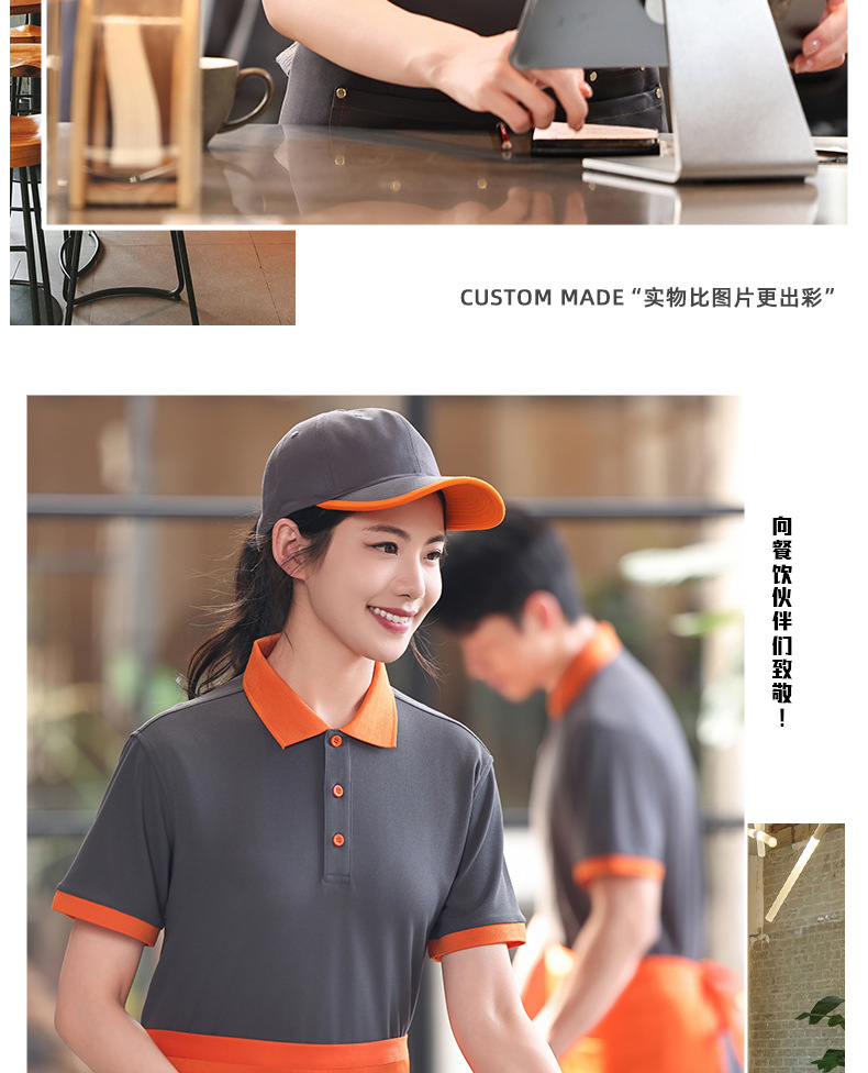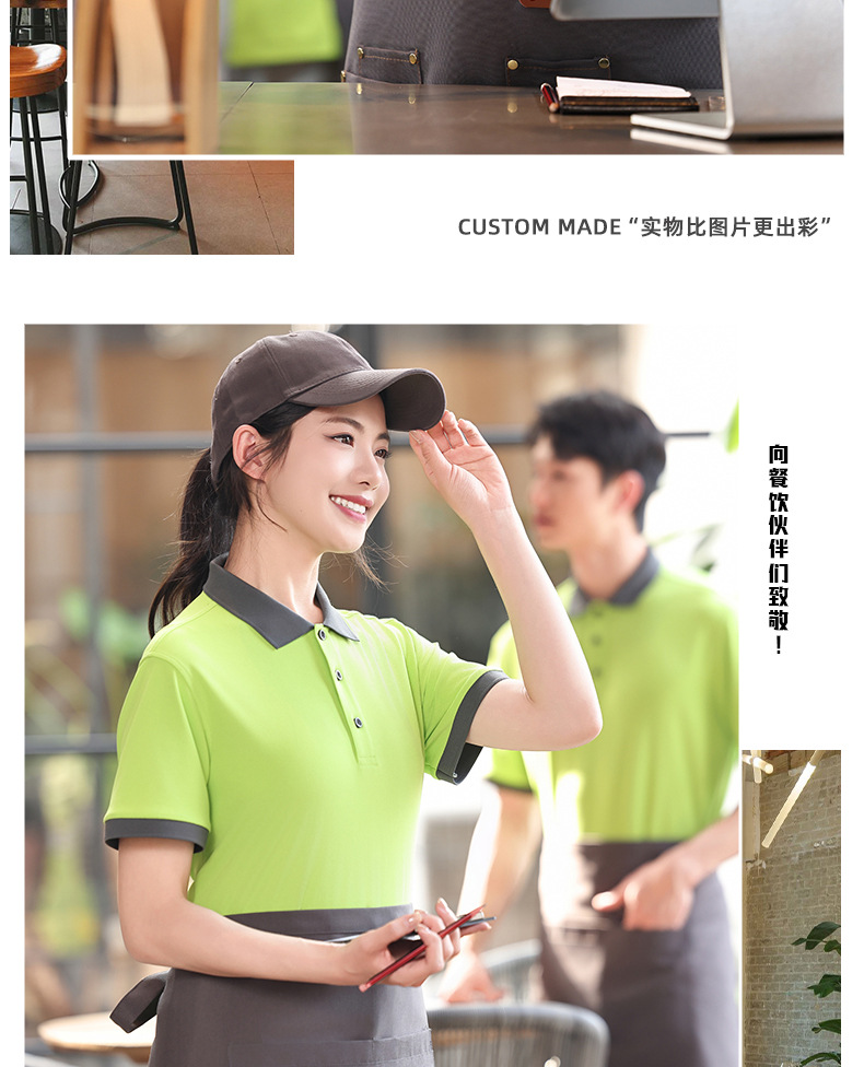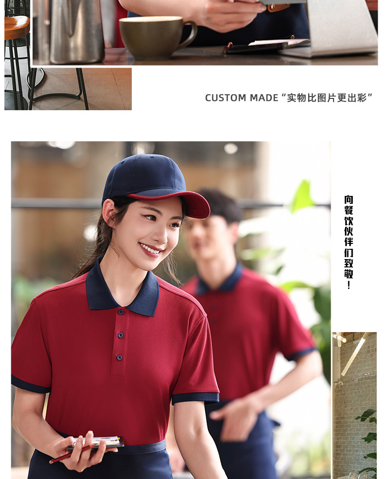 咖啡店工作服polo衫定制印logo夏季翻领奶茶店餐饮员工装短袖T恤