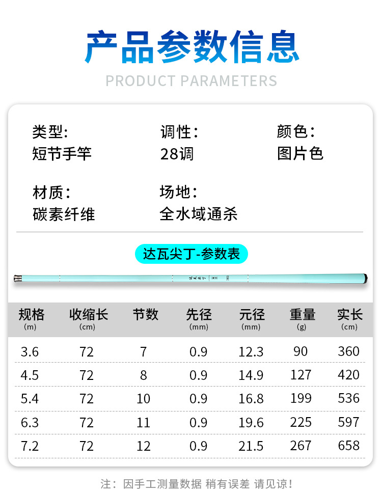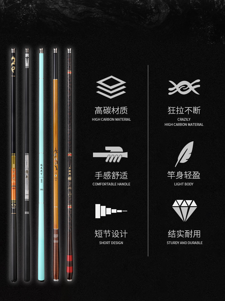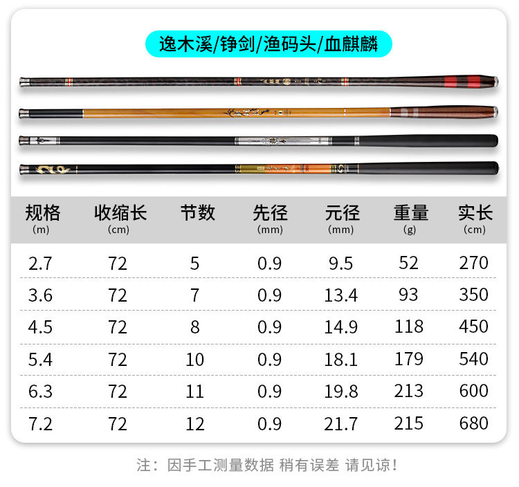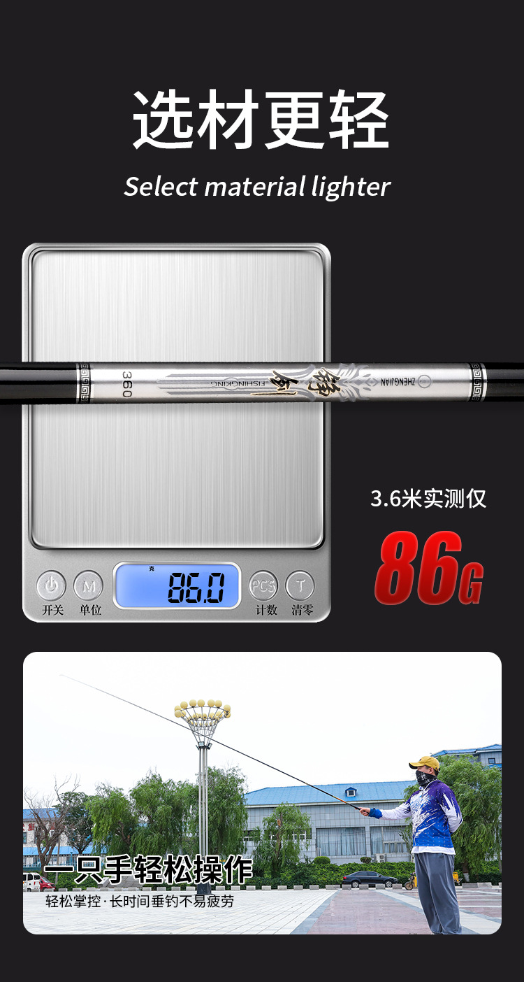碳素短节溪流竿手竿3.6/4.5/5.4/6.3/7.2米超轻硬鱼杆手杆钓鱼竿