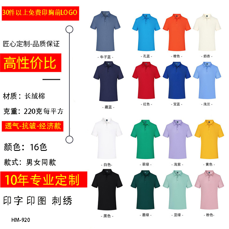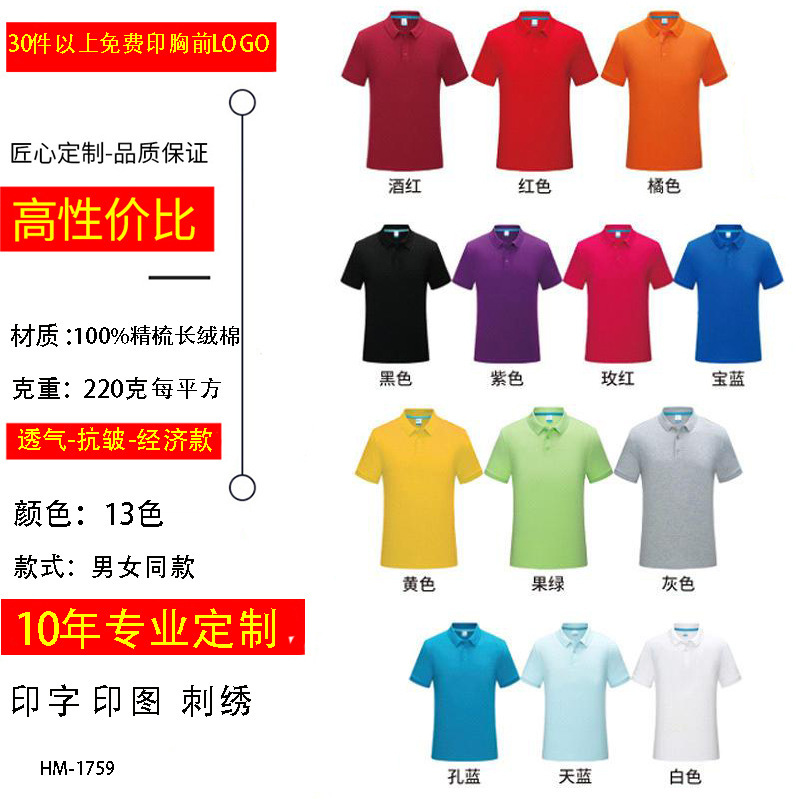 翻领工作服定制工衣短袖速干文化衫印logo广告衫纯棉polo衫定制