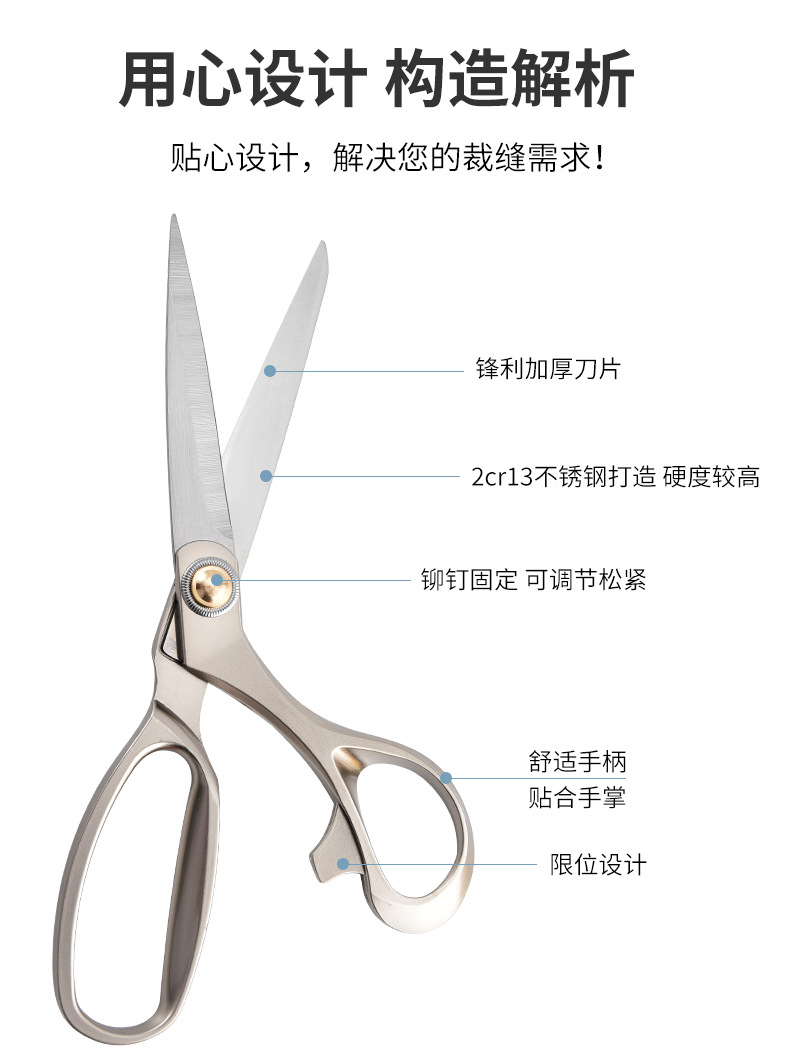 厂家批发全钢裁缝剪刀不锈钢大剪刀缝纫裁布服装剪家用剪刀裁缝剪