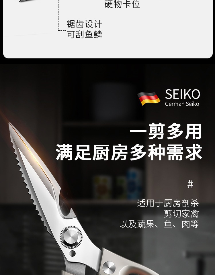 德国厨房剪刀家用钛钢多功能剪鸡鸭鹅骨头鸡骨食物裁剪剪子加厚