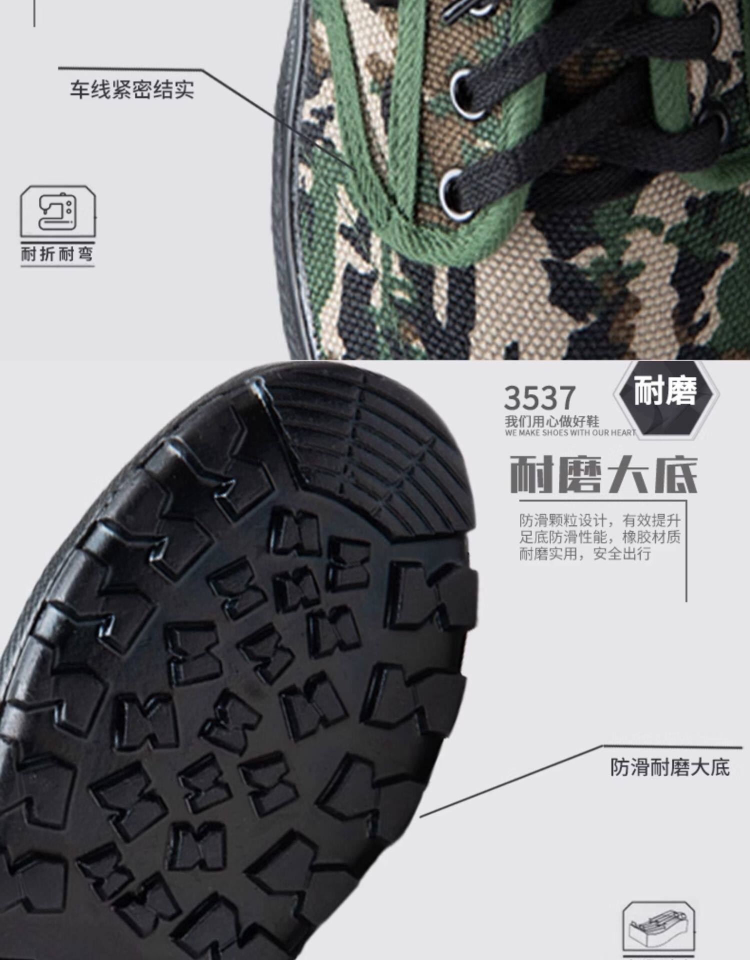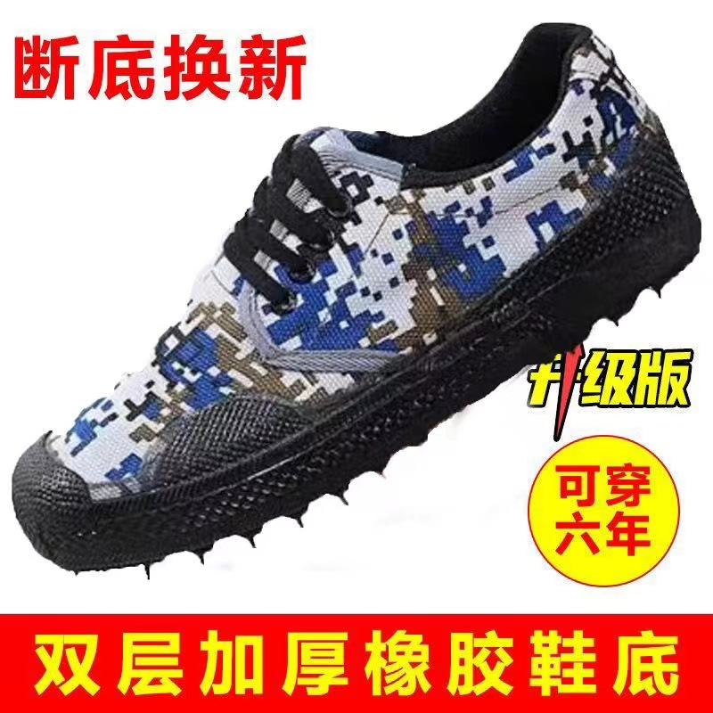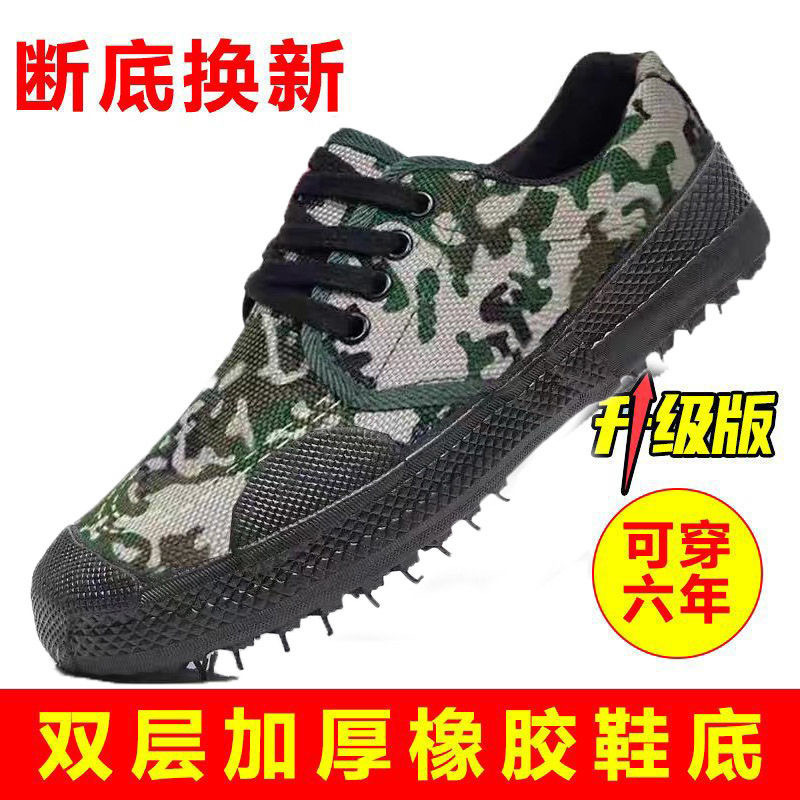 橡胶解放鞋迷彩鞋夏季男户外工作鞋工地布鞋劳保鞋耐磨训练鞋胶鞋