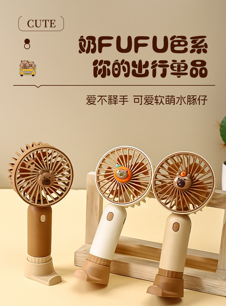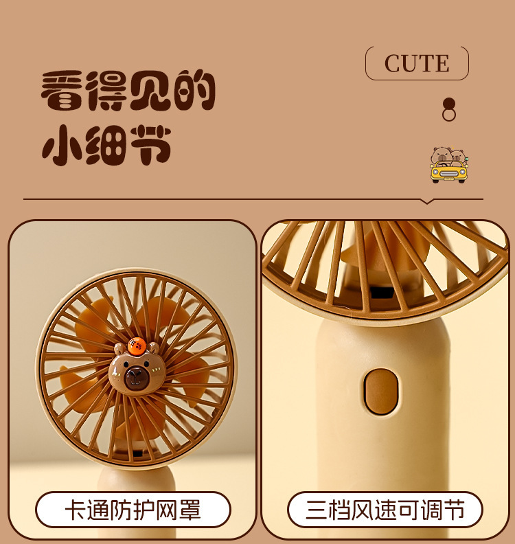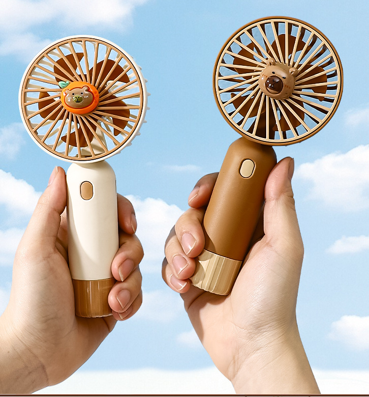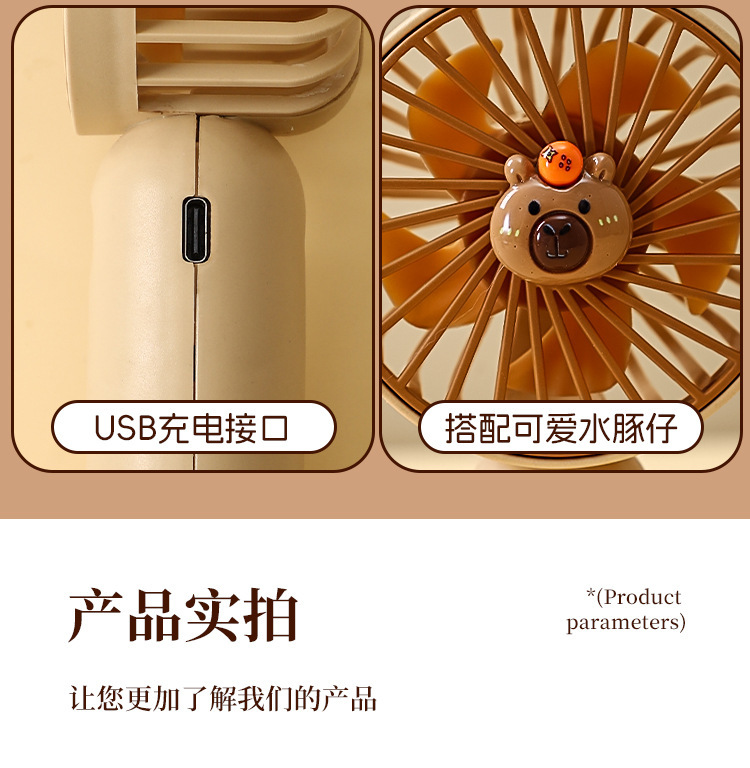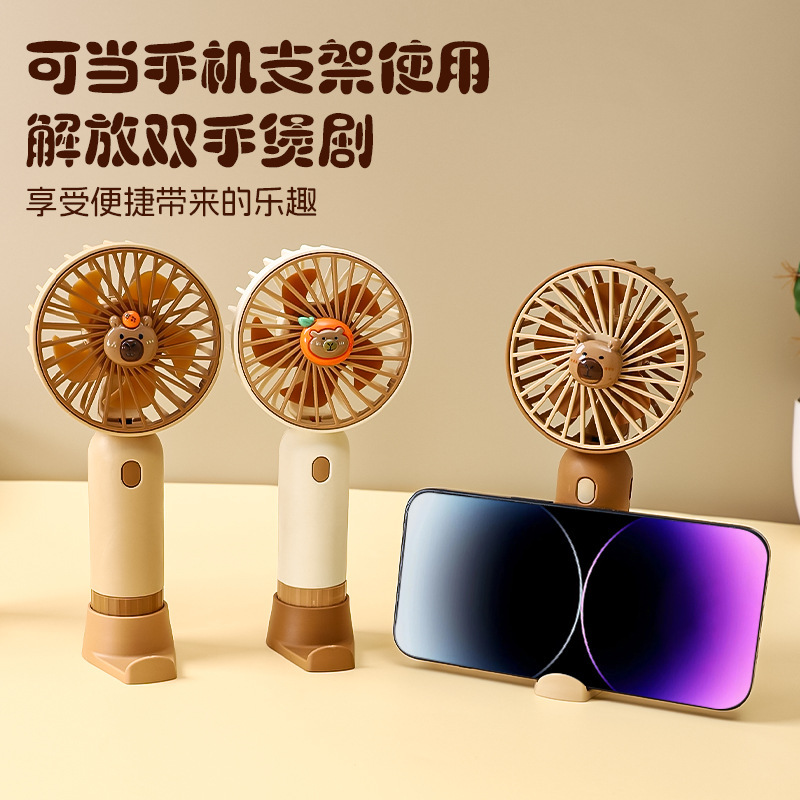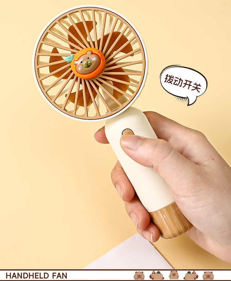 跨境手持风扇USB充电小风扇卡皮巴拉学习办公桌面小电风扇静音