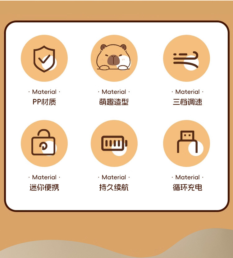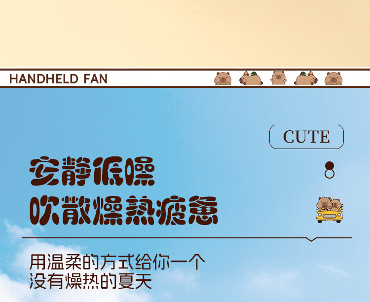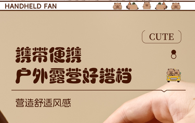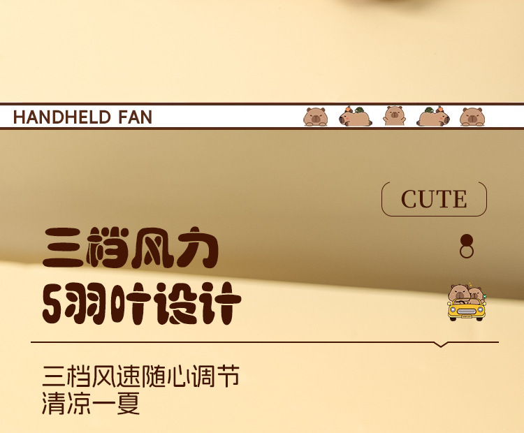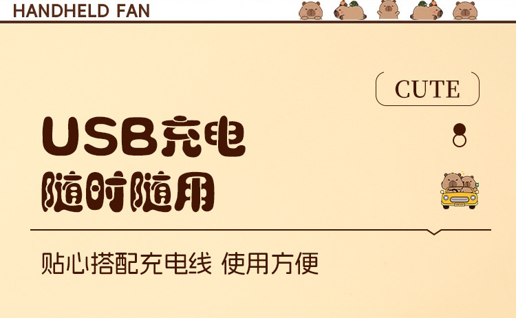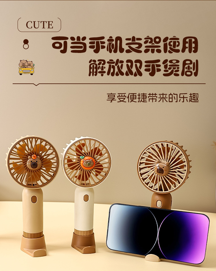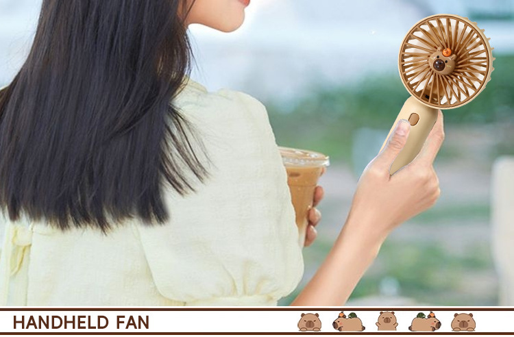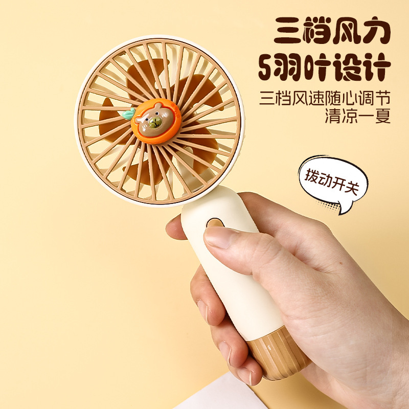 跨境手持风扇USB充电小风扇卡皮巴拉学习办公桌面小电风扇静音