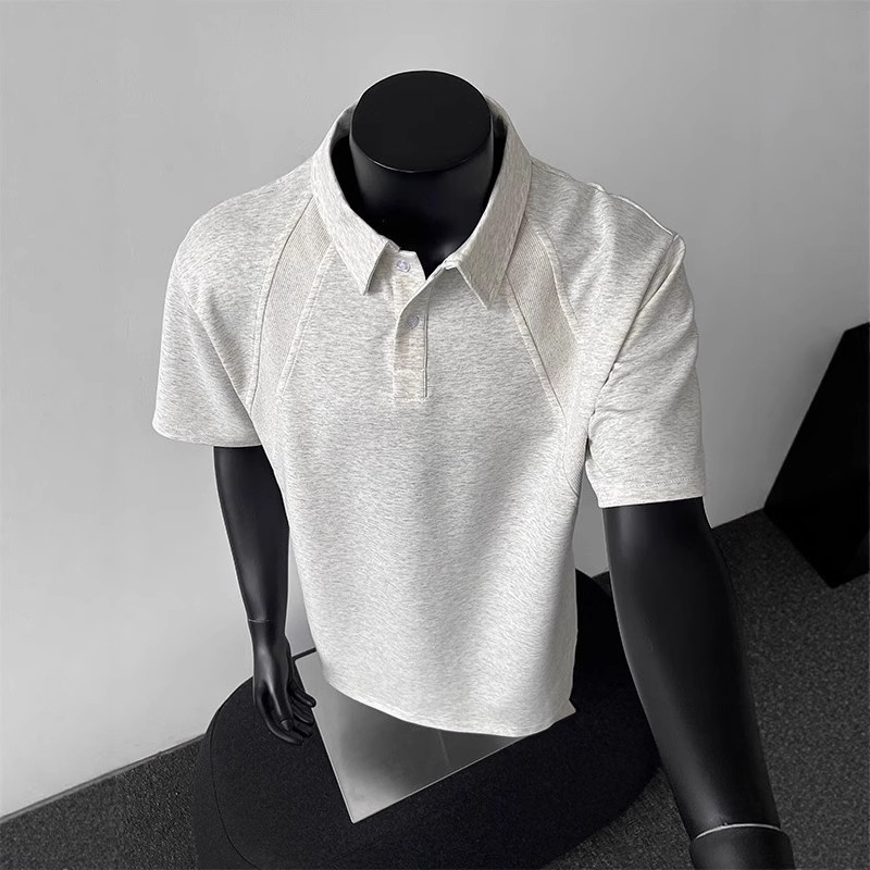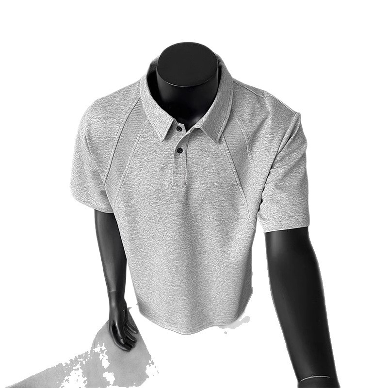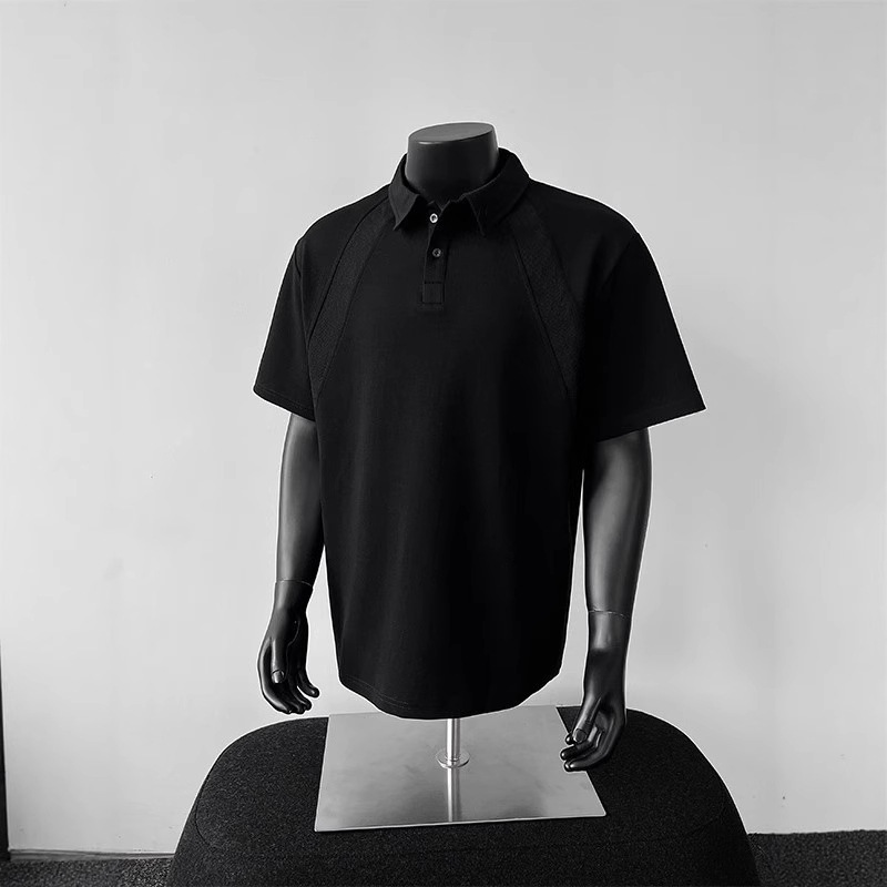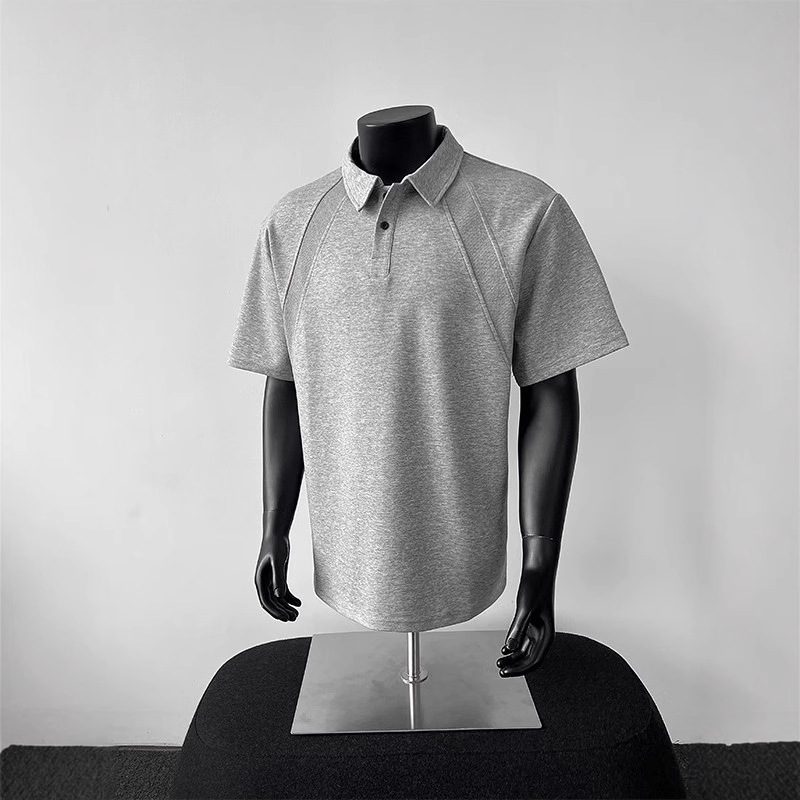 美式正肩短袖polo衫男士夏季重磅青少年体恤翻领插肩五分袖上衣潮