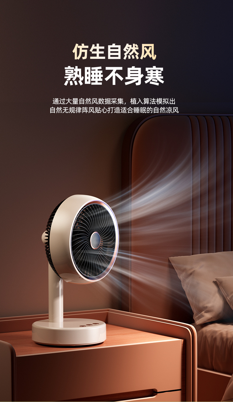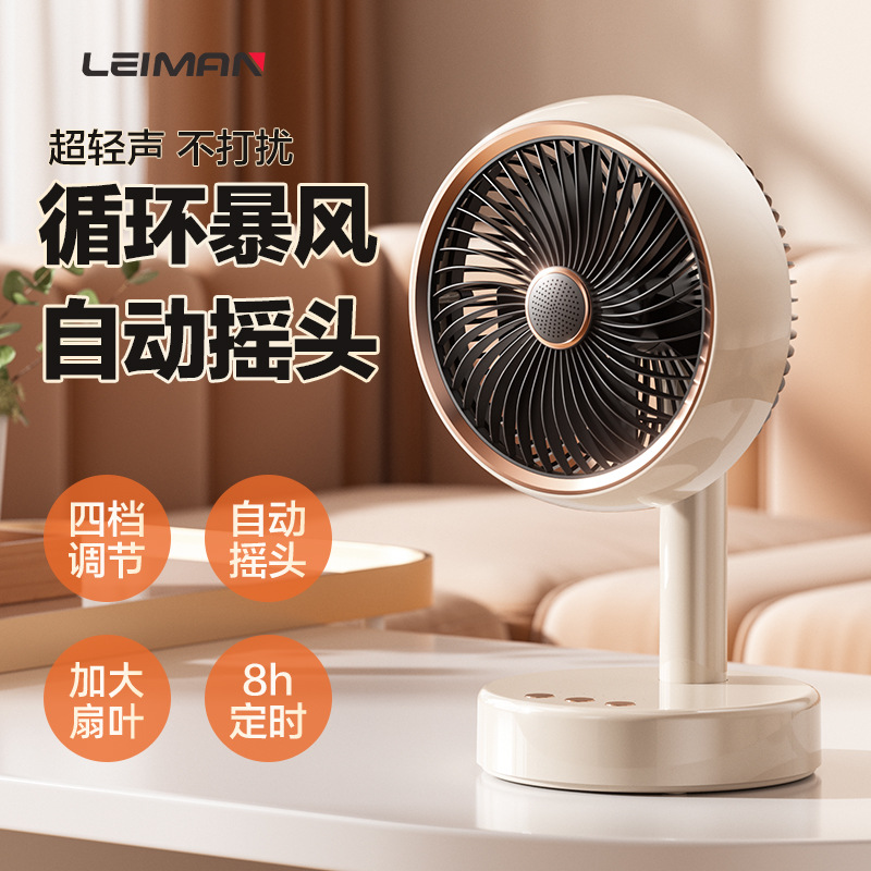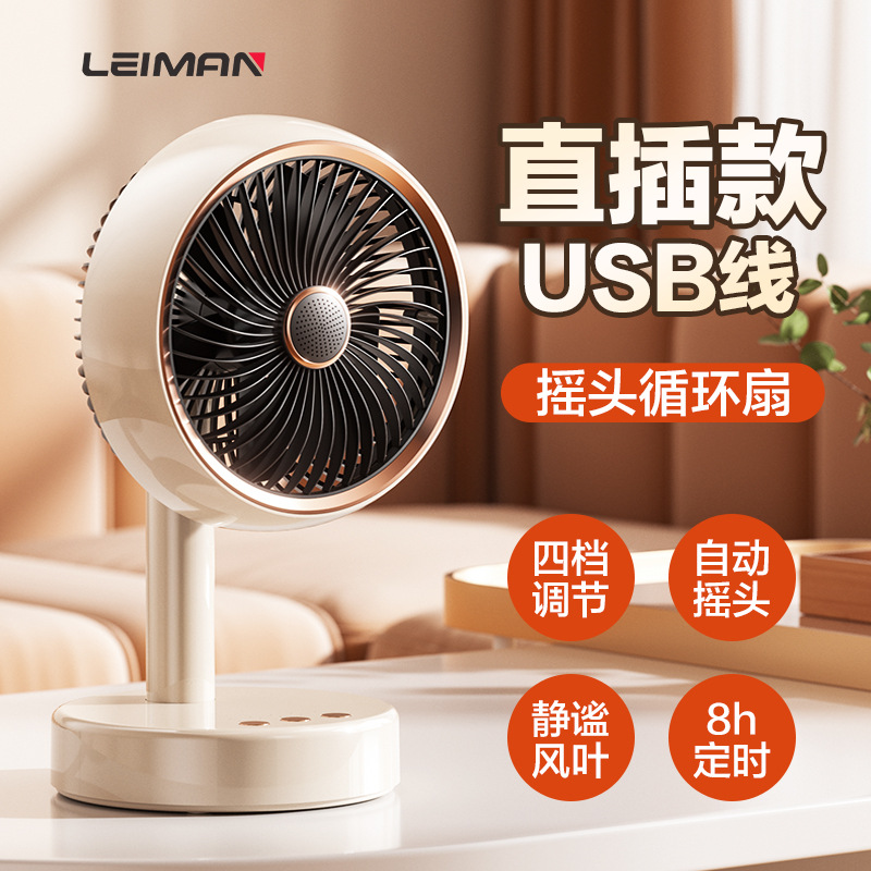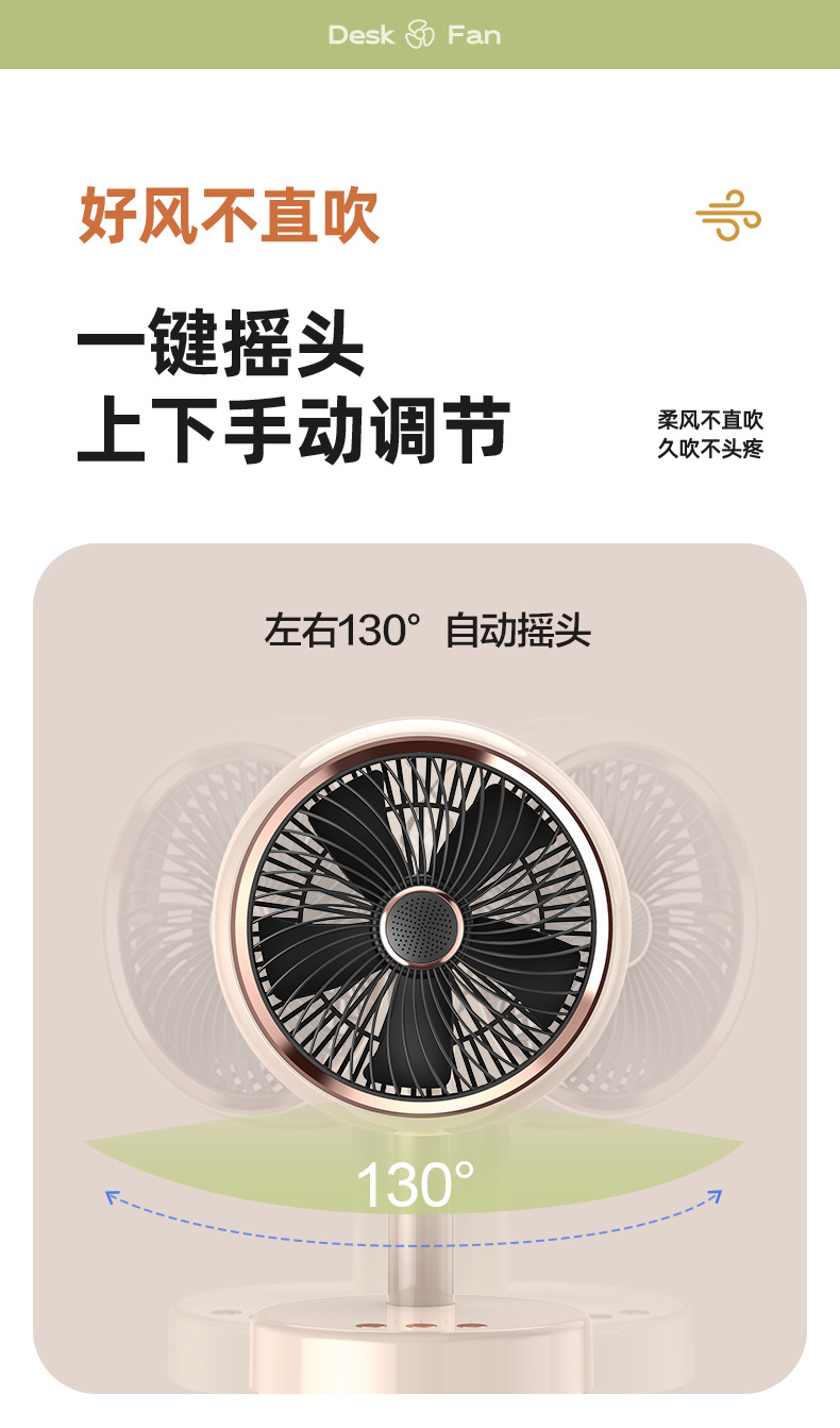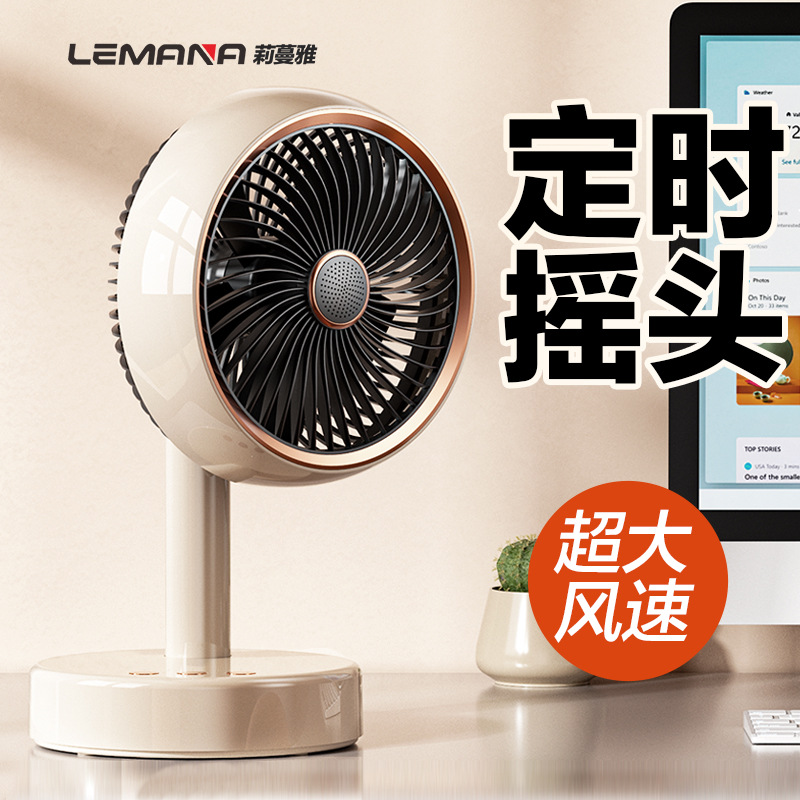 桌面台式风扇USB充电款便携式小风扇定时自动摇头静音大续航风扇