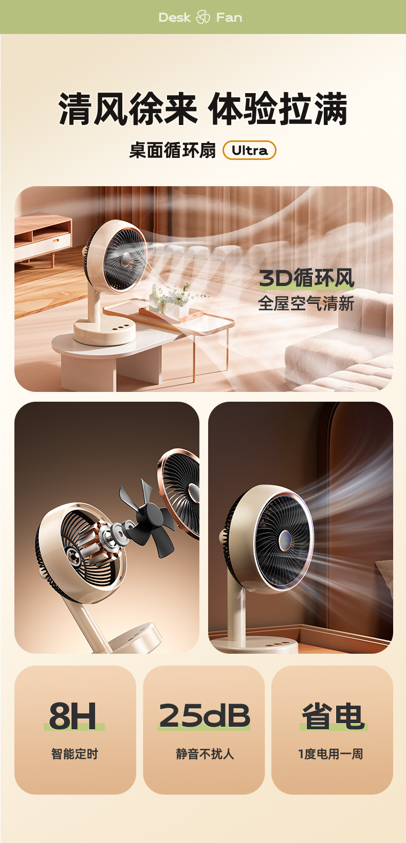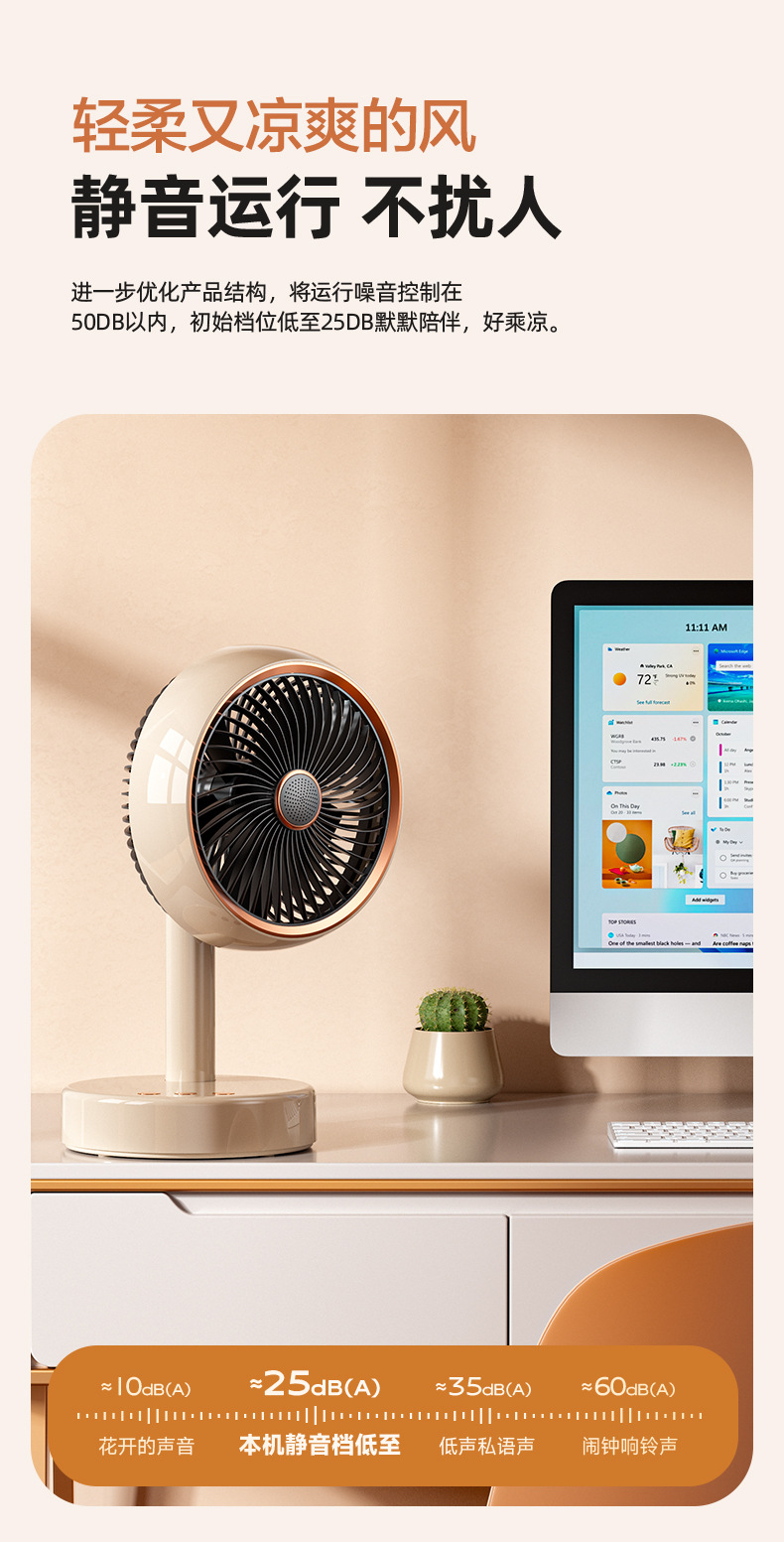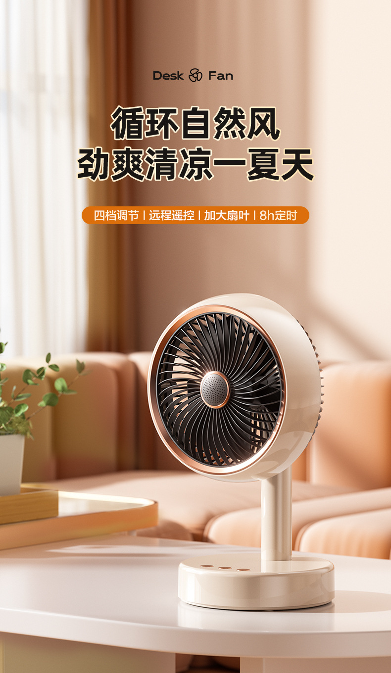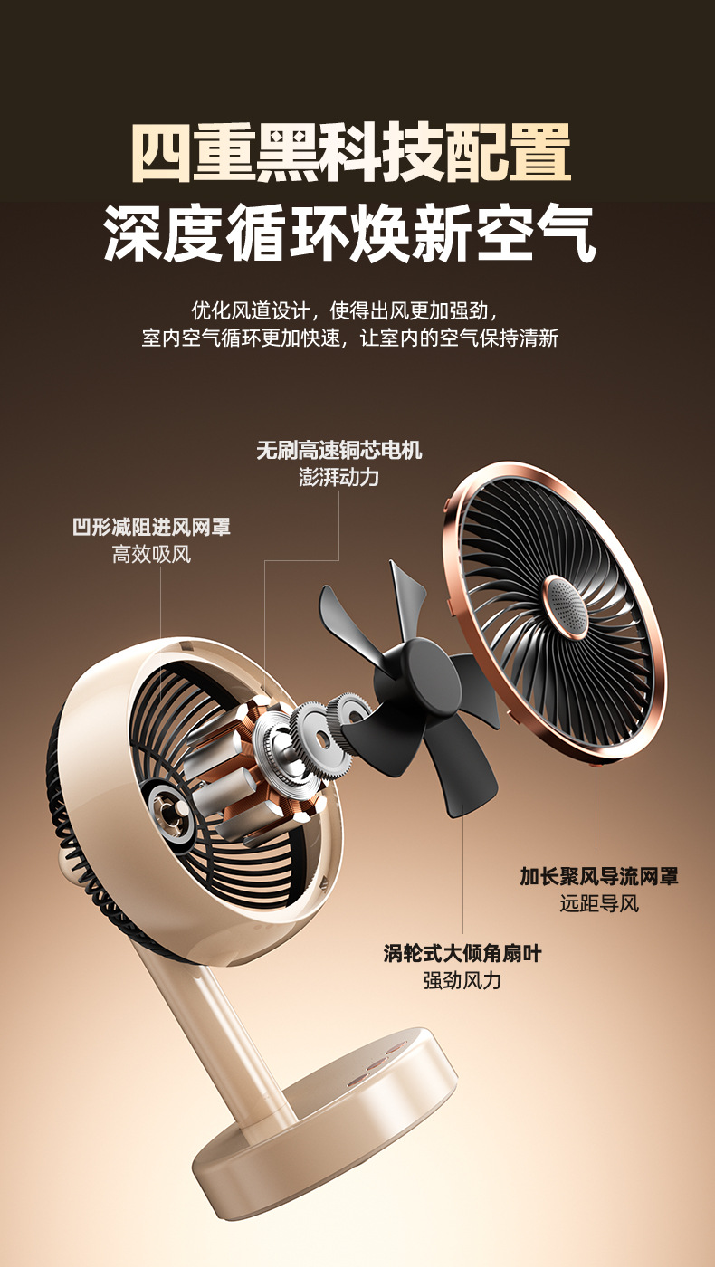 桌面台式风扇USB充电款便携式小风扇定时自动摇头静音大续航风扇