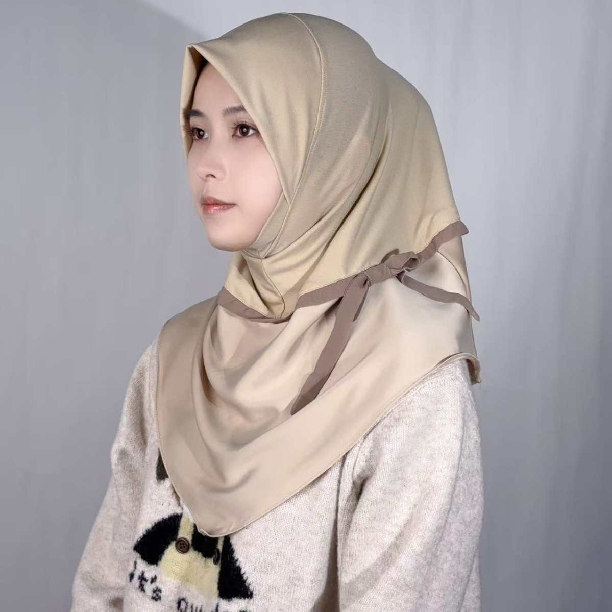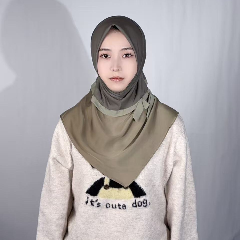 新款纯色拼接丝巾水晶麻亲肤透气民族风头巾中东马来女士头巾帽