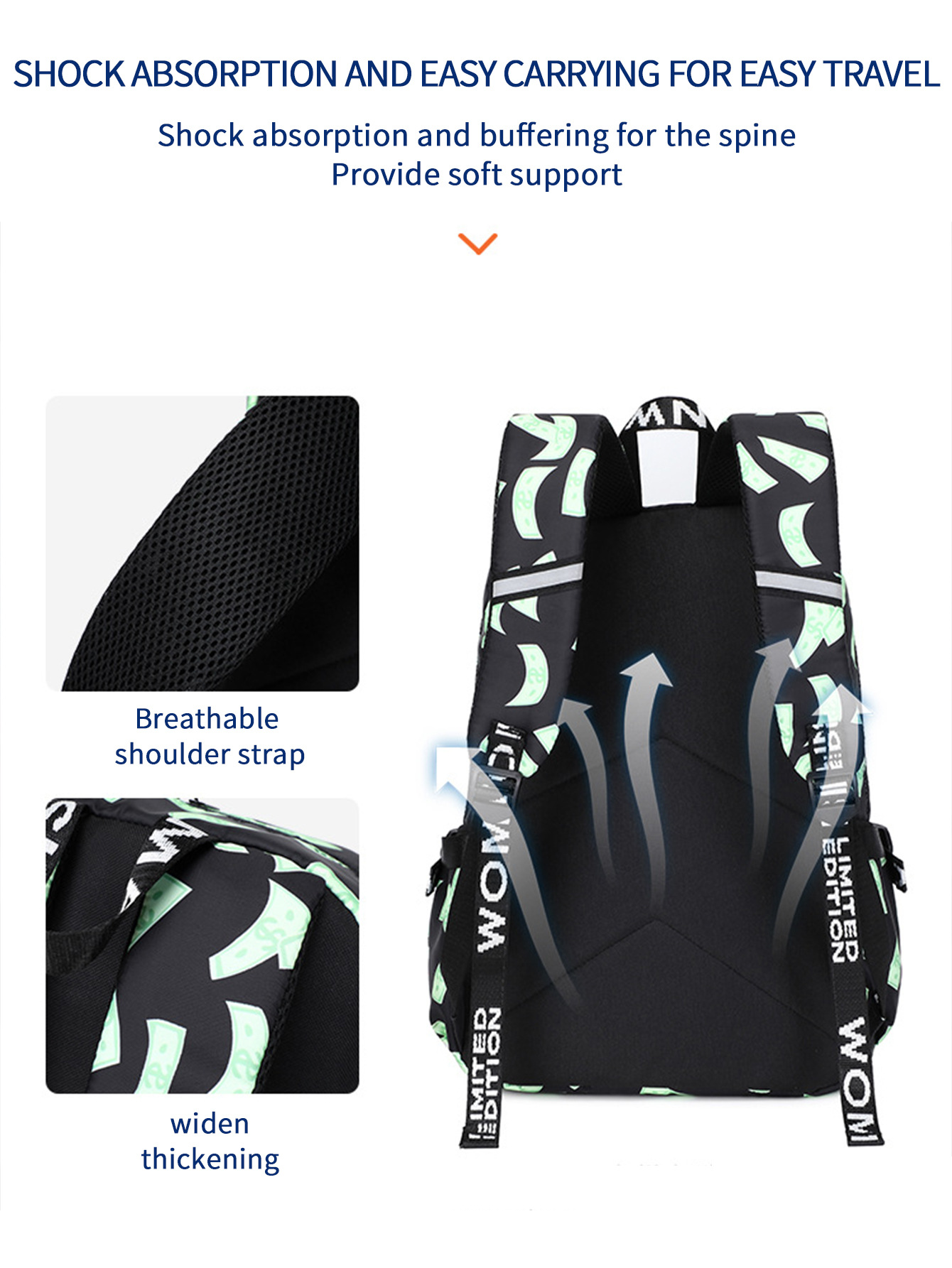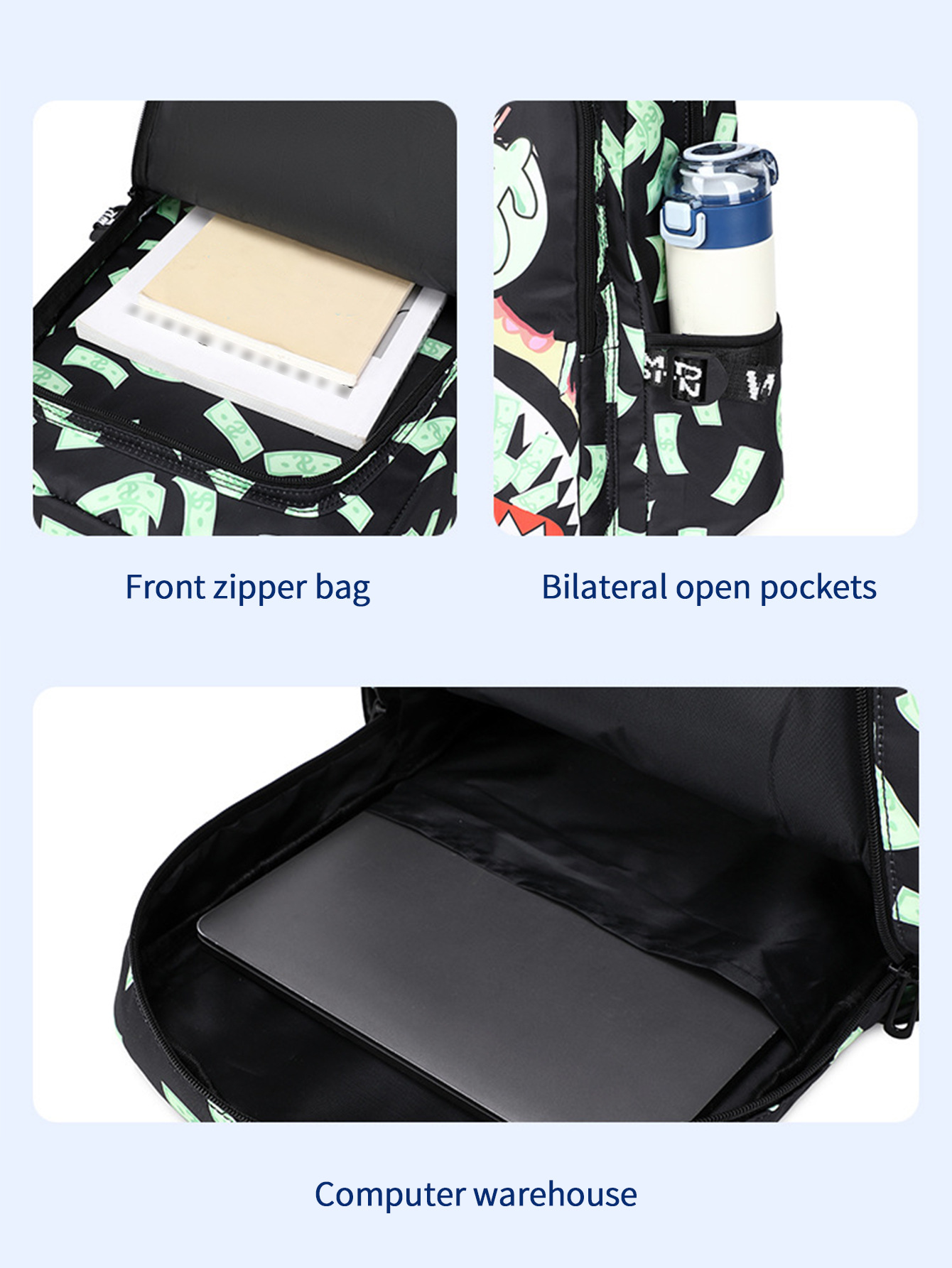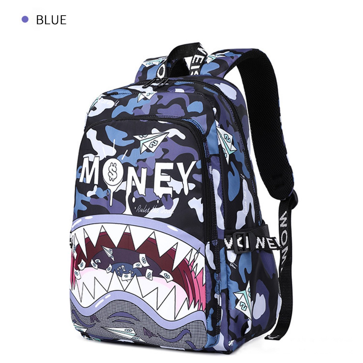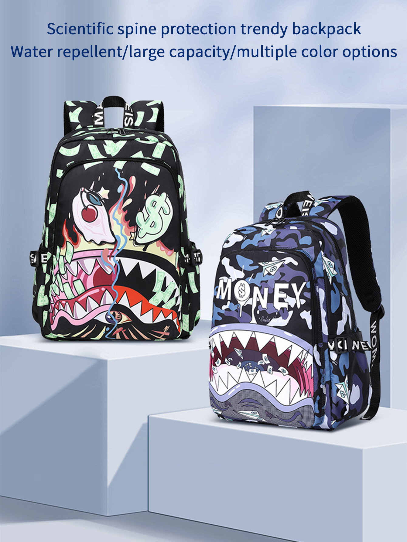 跨境新款彩色鲨鱼学生轻便防水书包印花大容量个性卡通时尚双肩