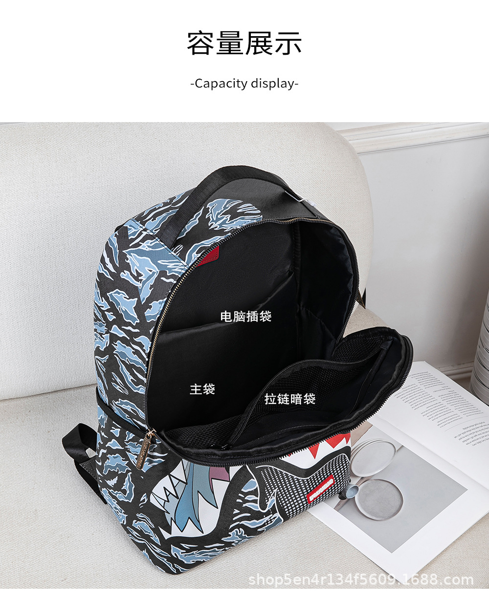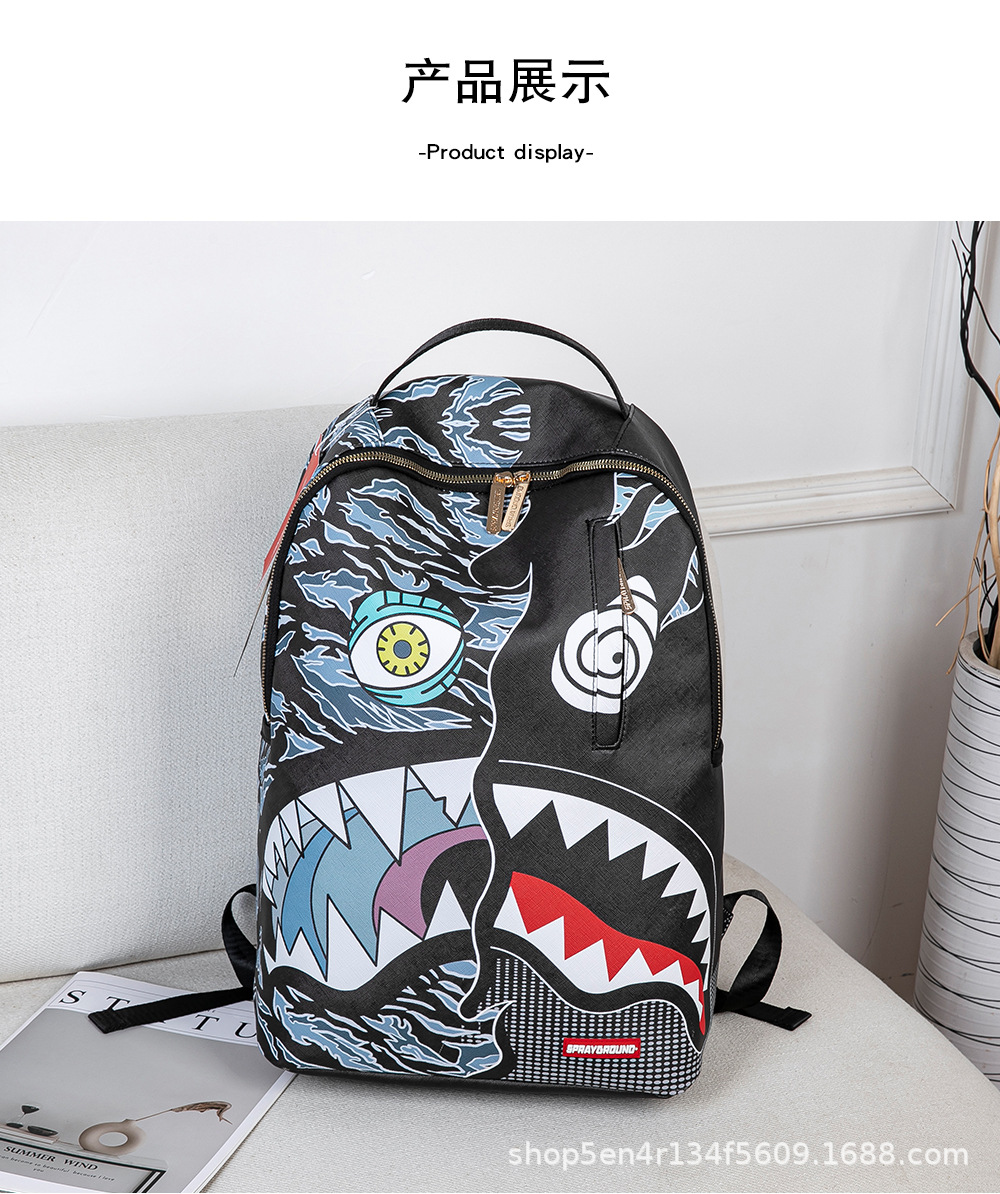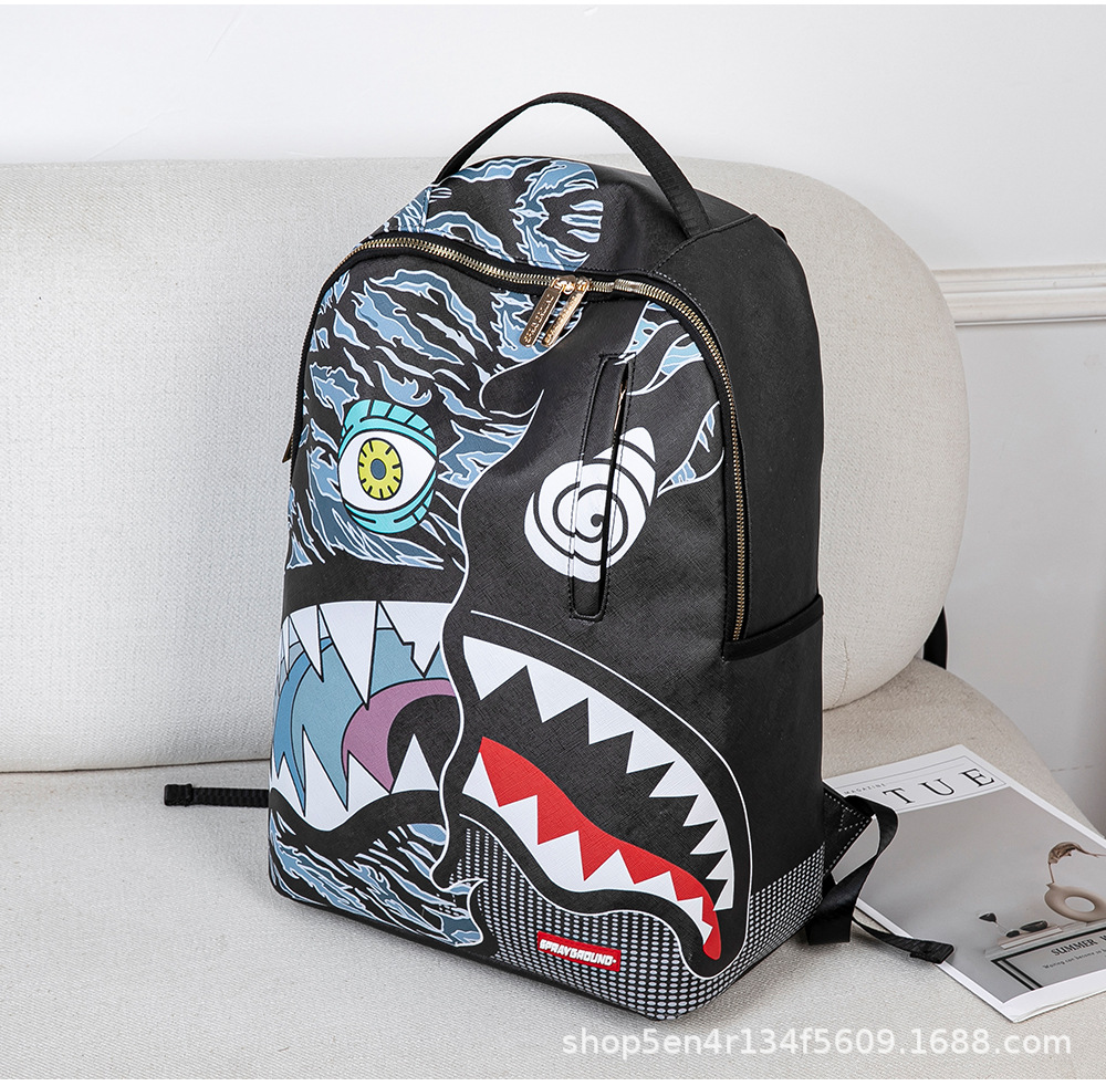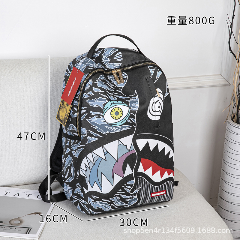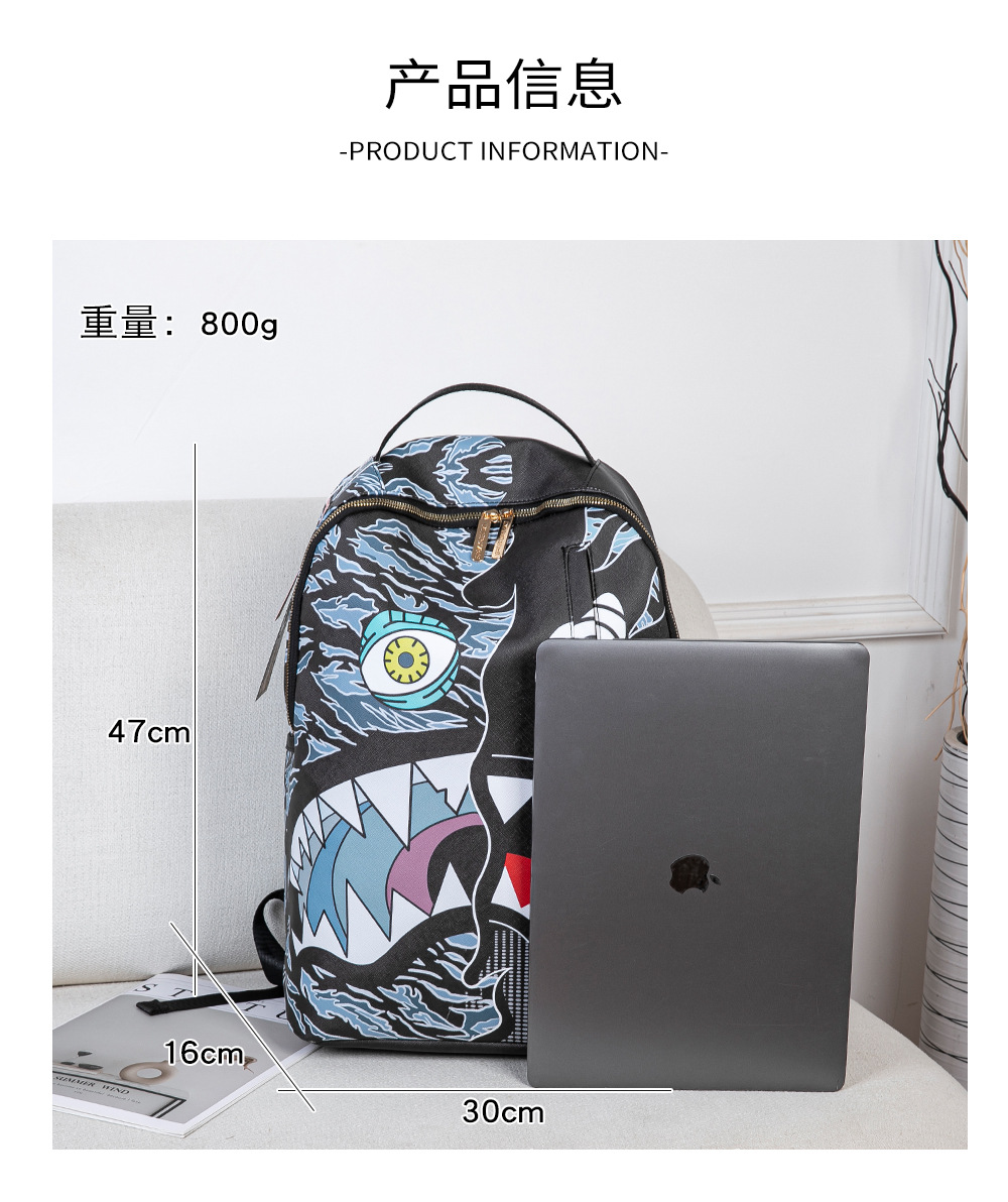 外贸新款个性创意双肩包鲨鱼搞怪丑萌背包旅行大容量夜光学生书包
