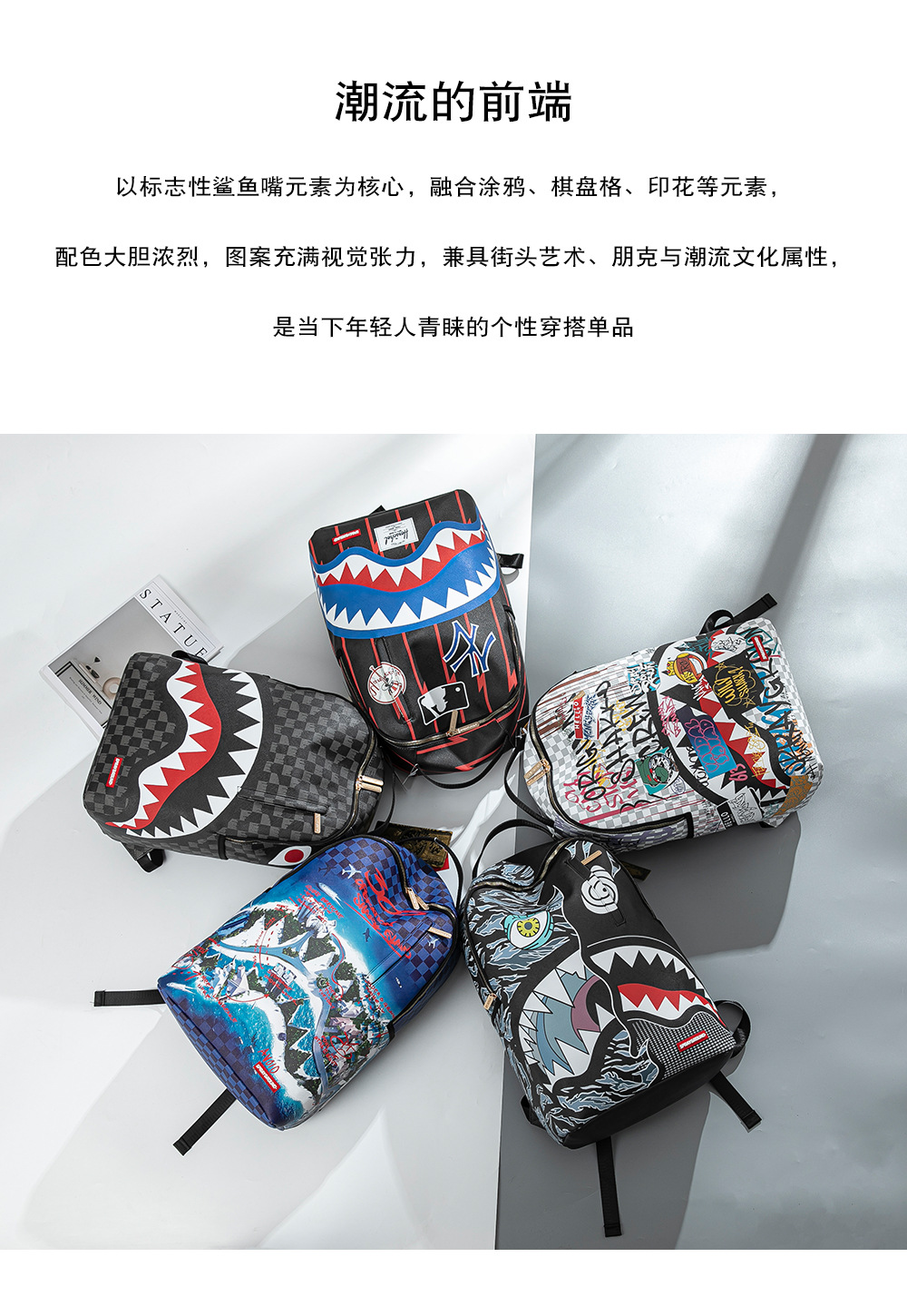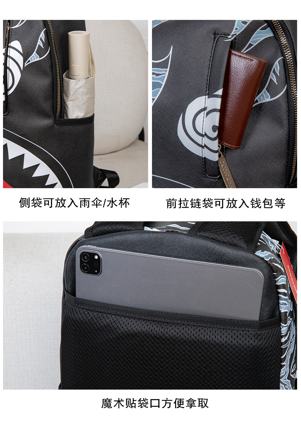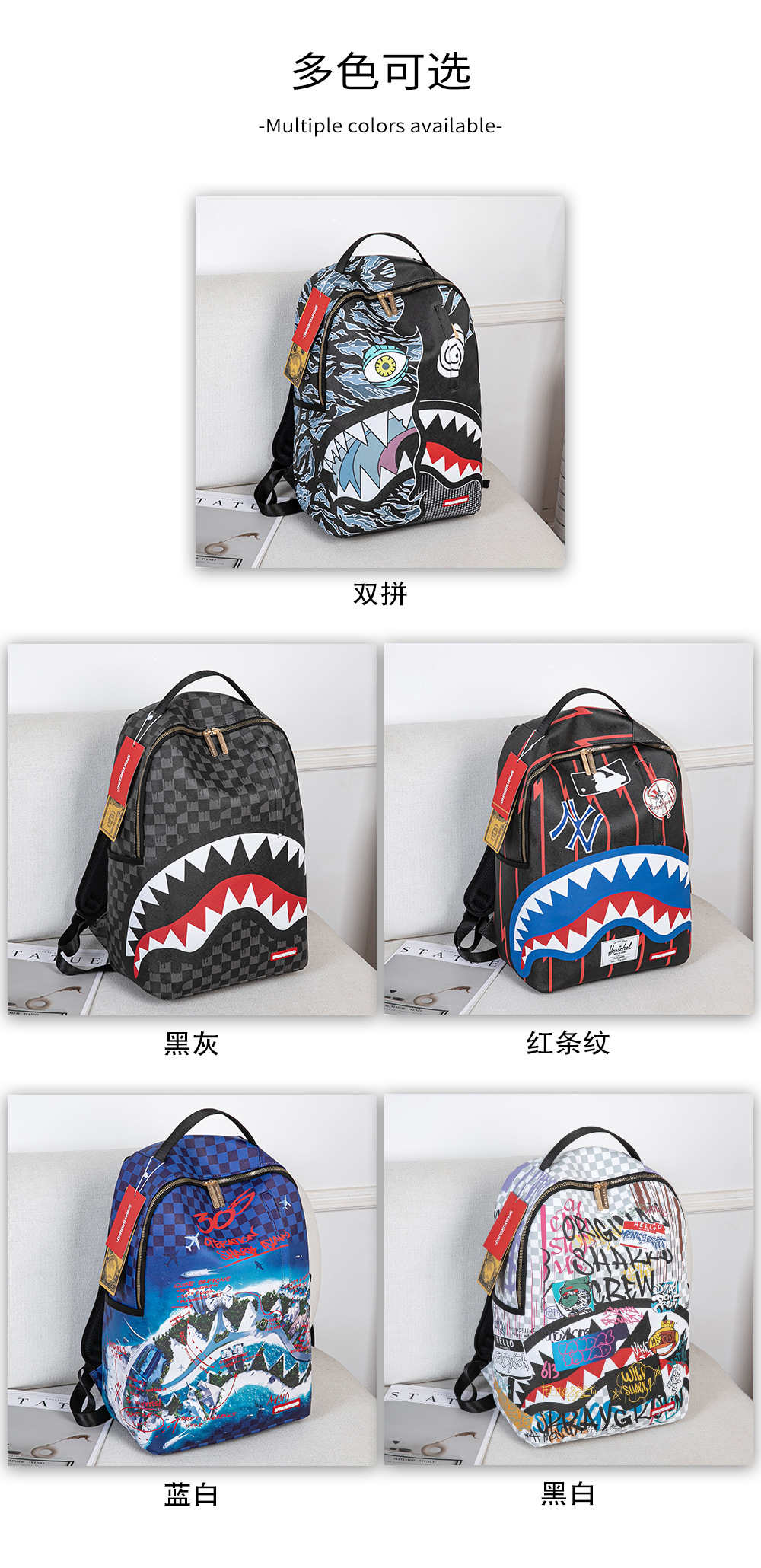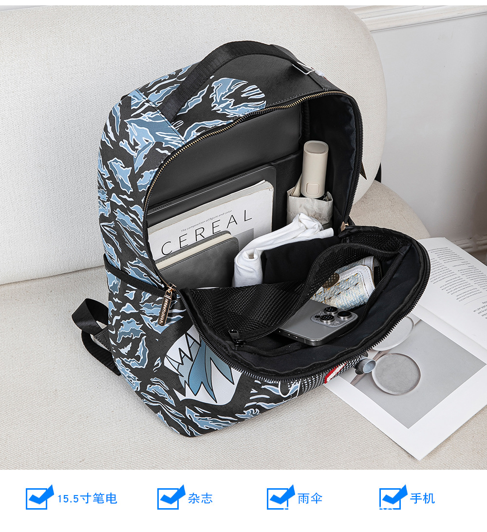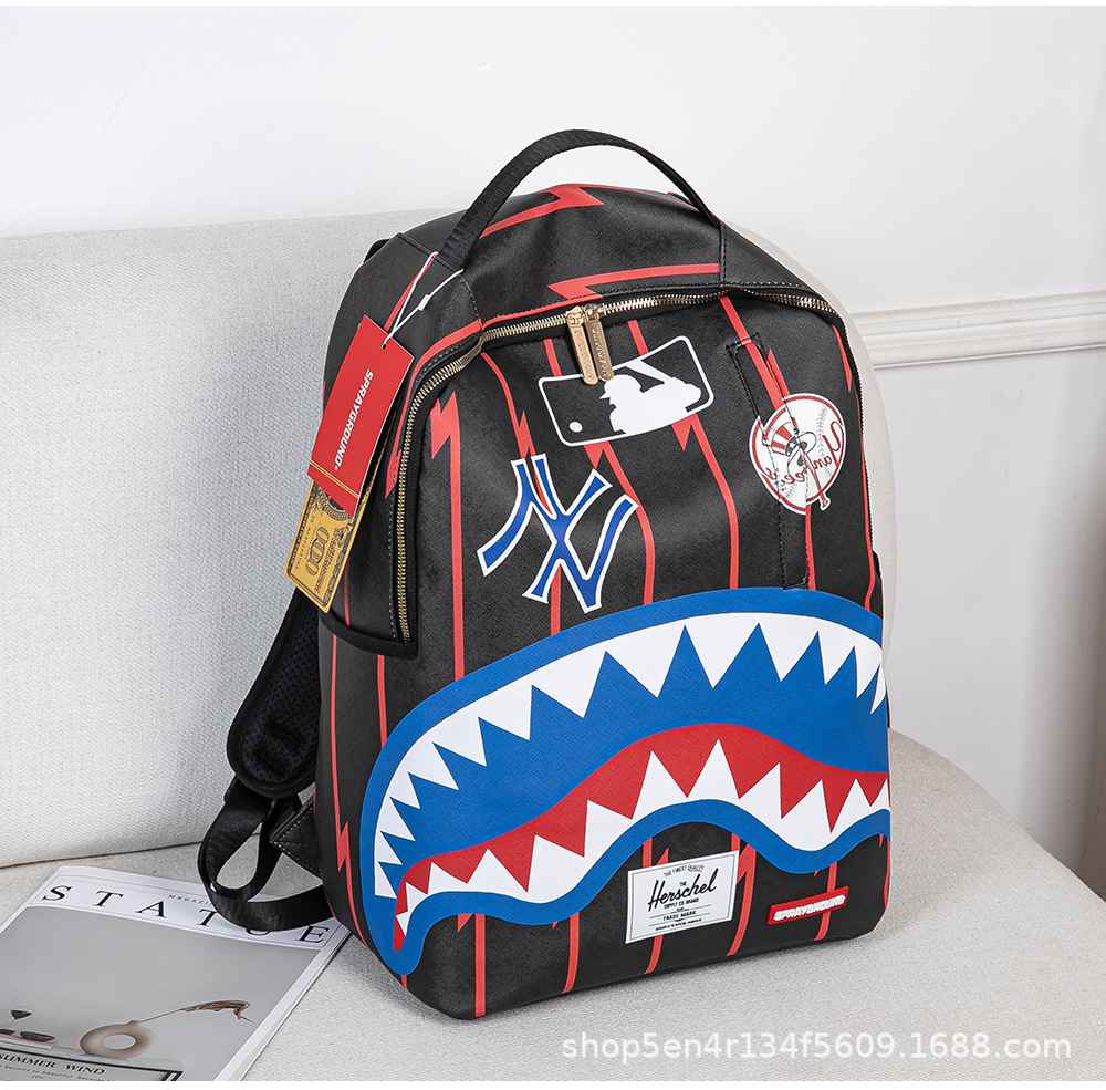 外贸新款个性创意双肩包鲨鱼搞怪丑萌背包旅行大容量夜光学生书包