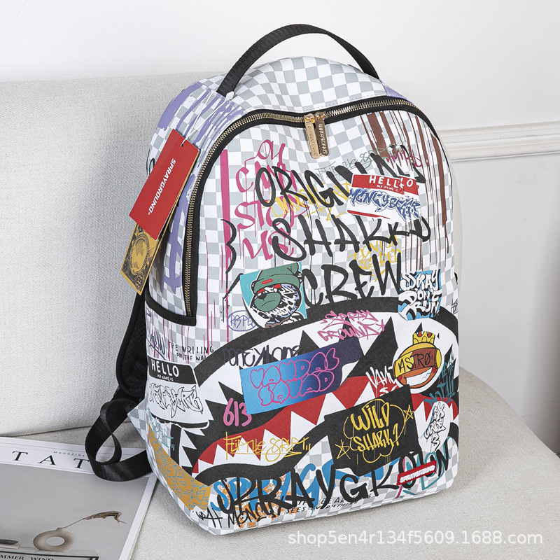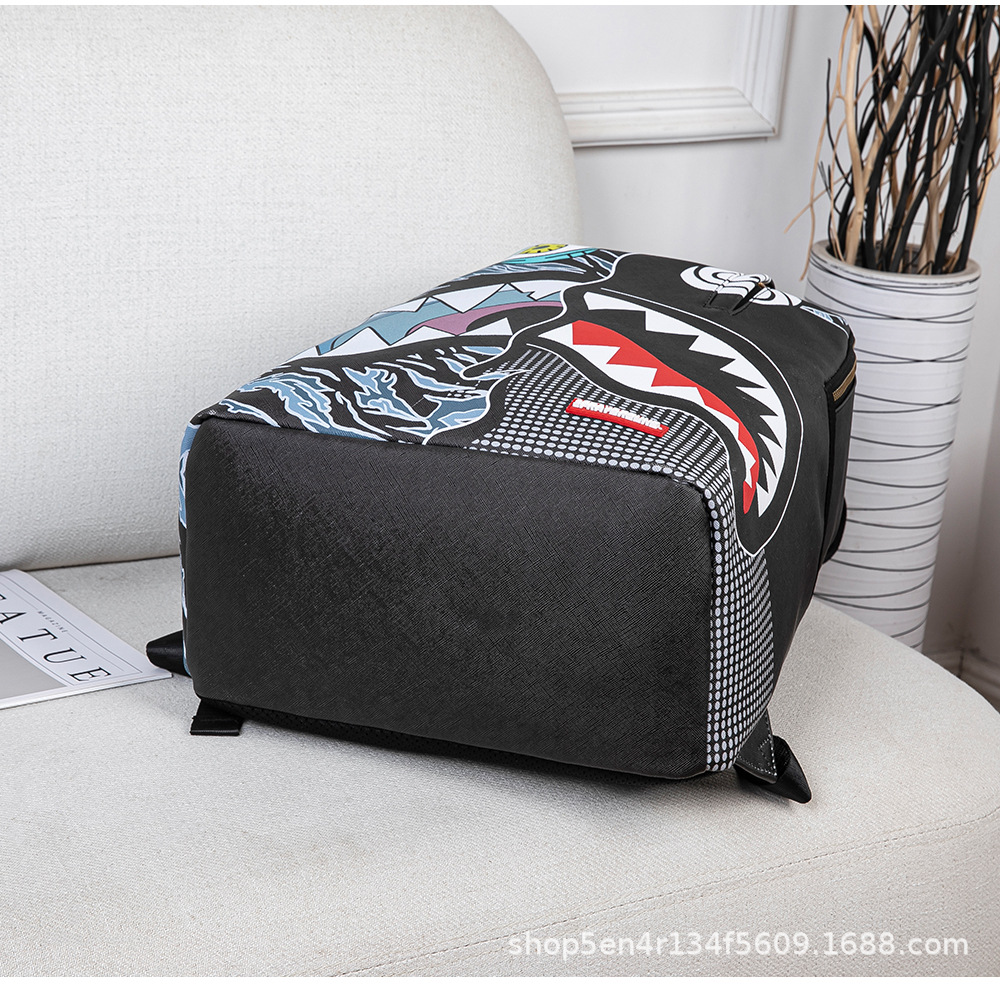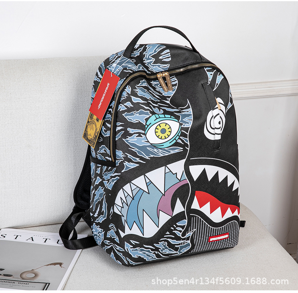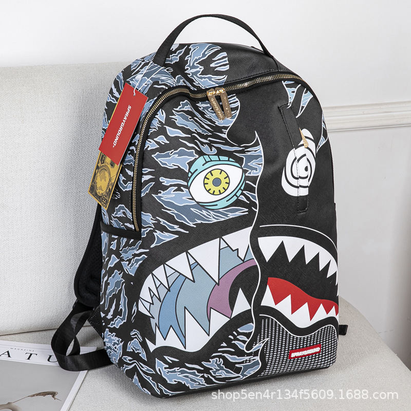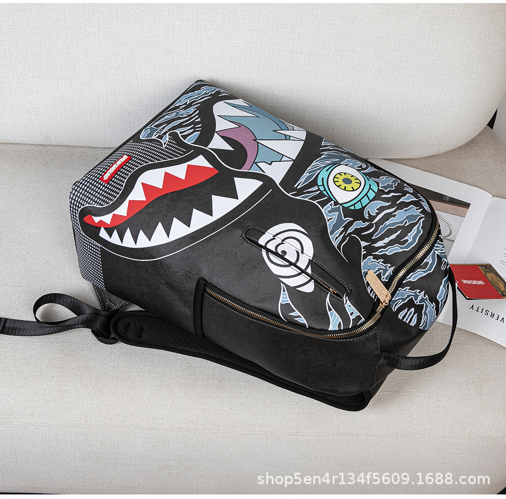 foreign trade new personalized creative backpack shark funny ugly and cute backpack travel large capacity luminous student schoolbag