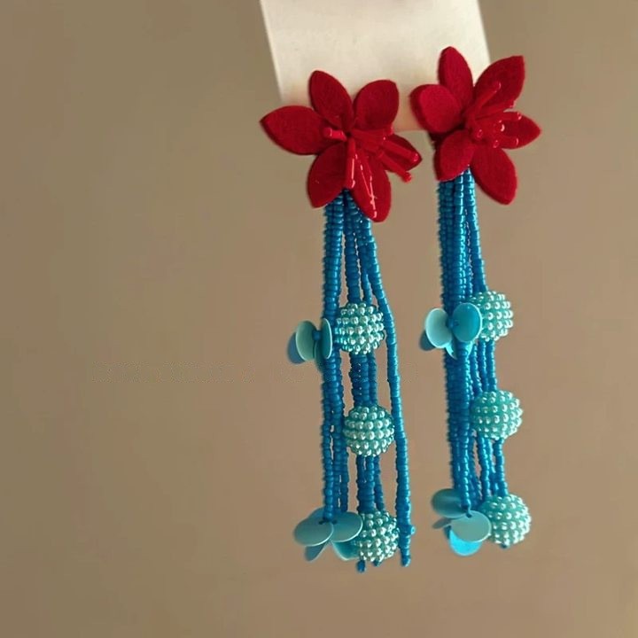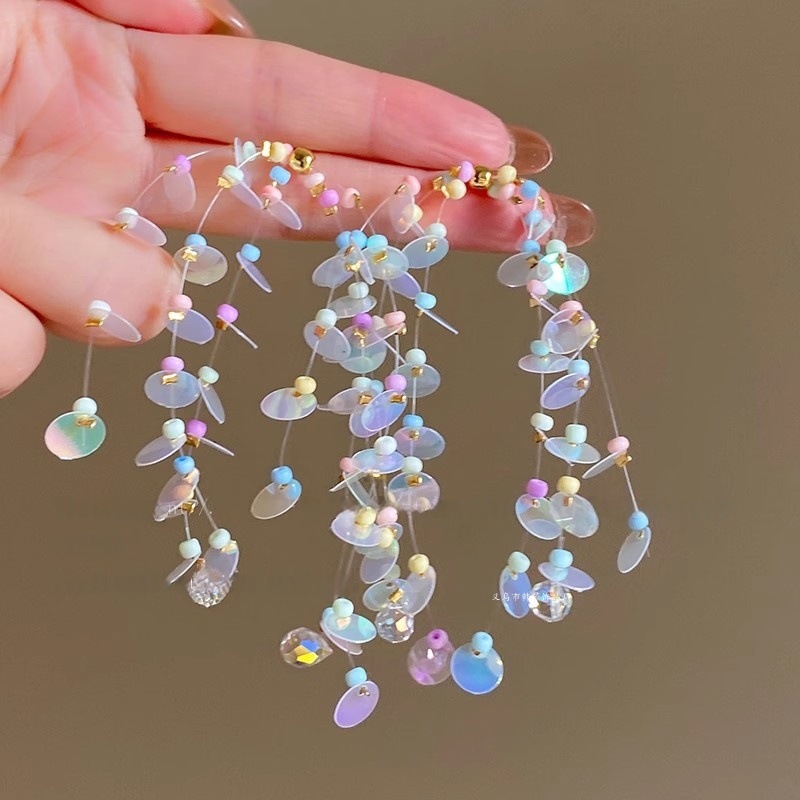 钢针蝴蝶结米珠贝壳耳环夏日温柔气质耳坠女度假风耳饰设计感小众