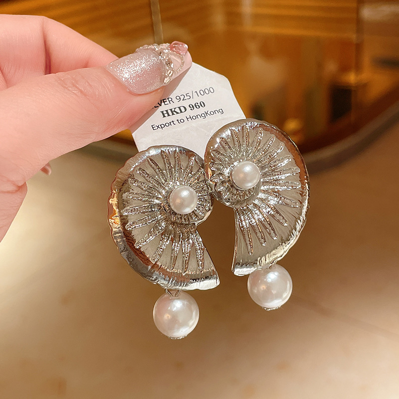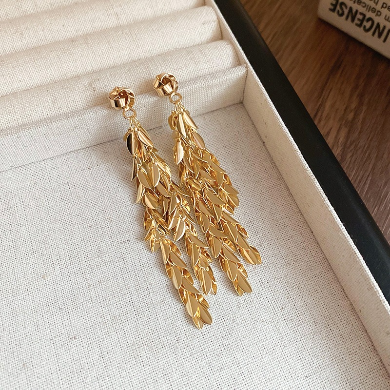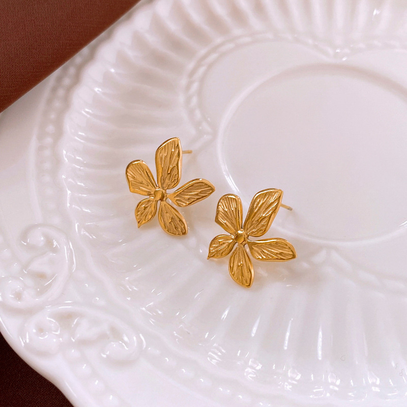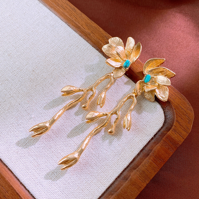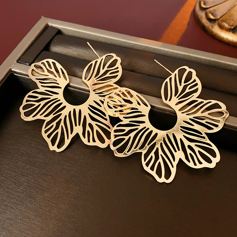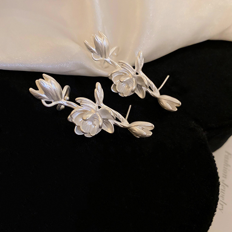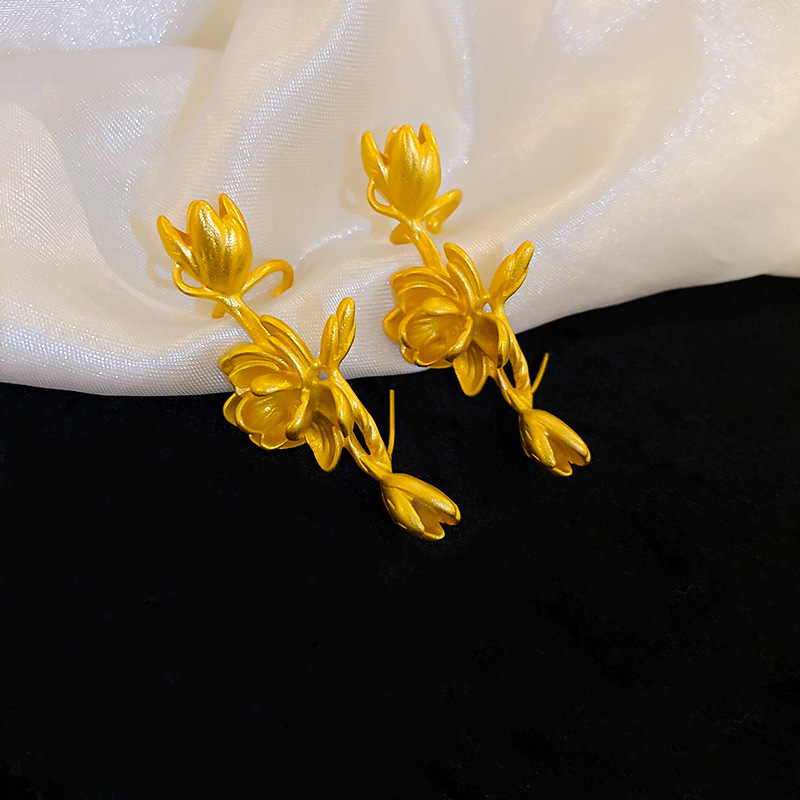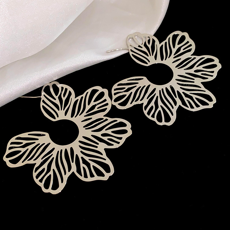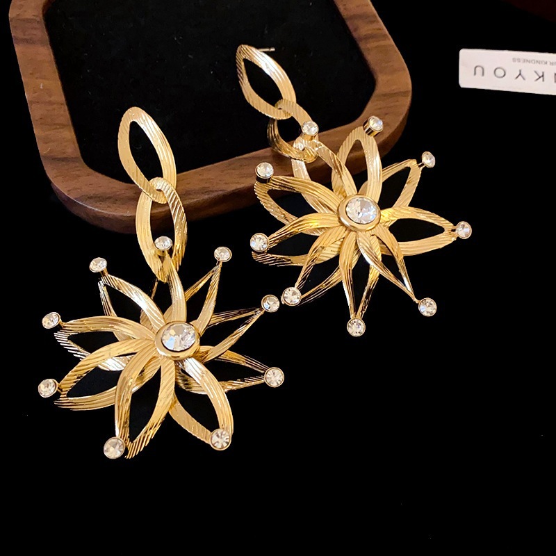 银针花朵简约时尚吊坠耳环中古vintage气质耳钉轻奢高级感耳饰女