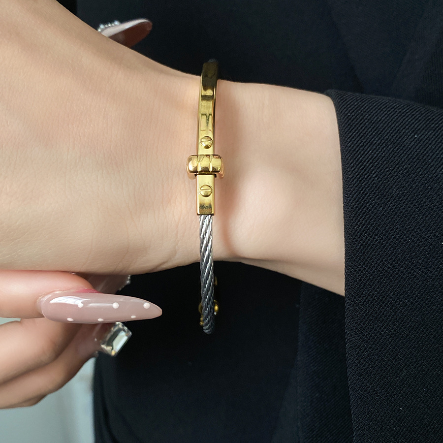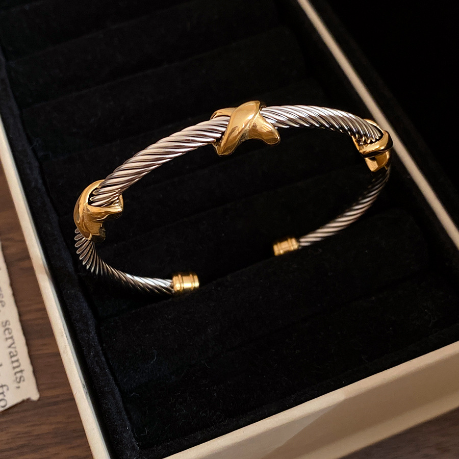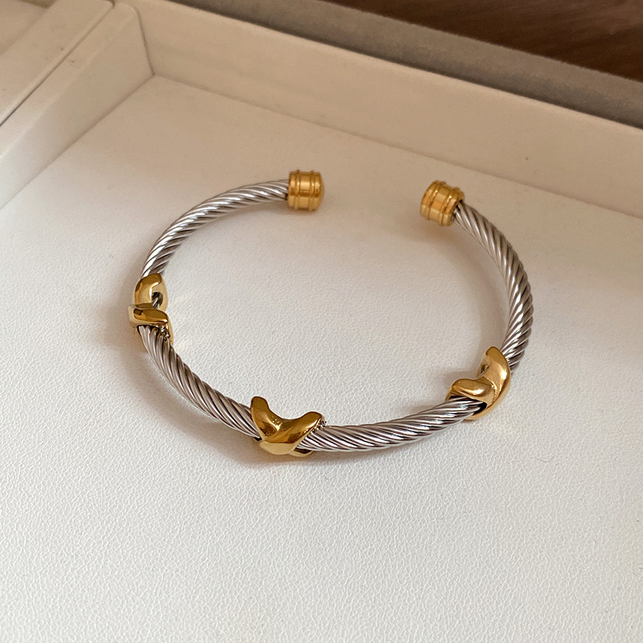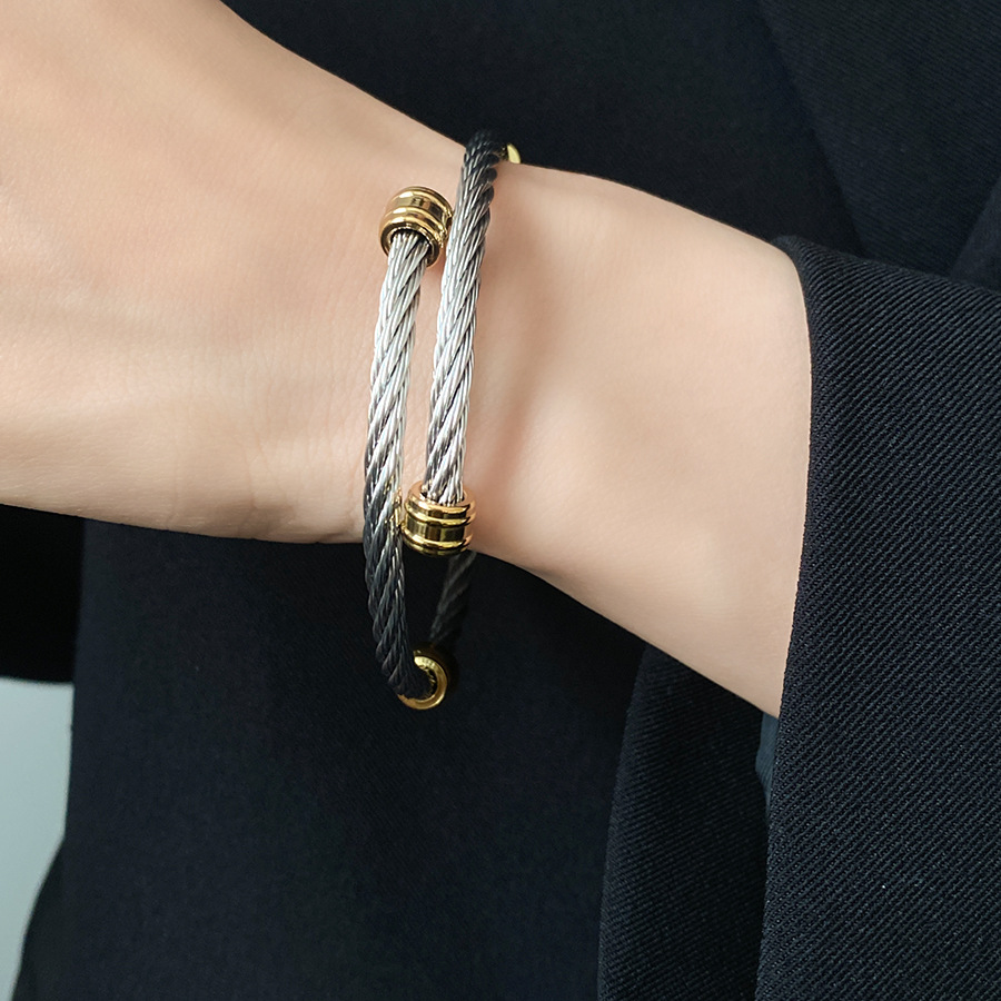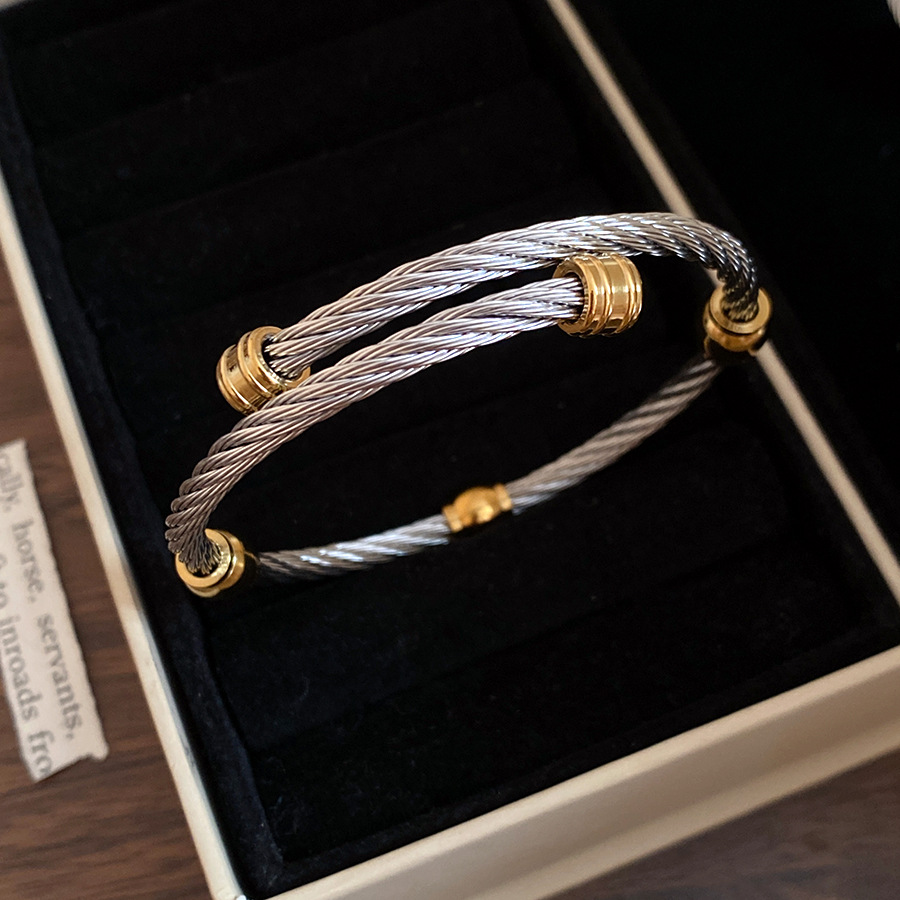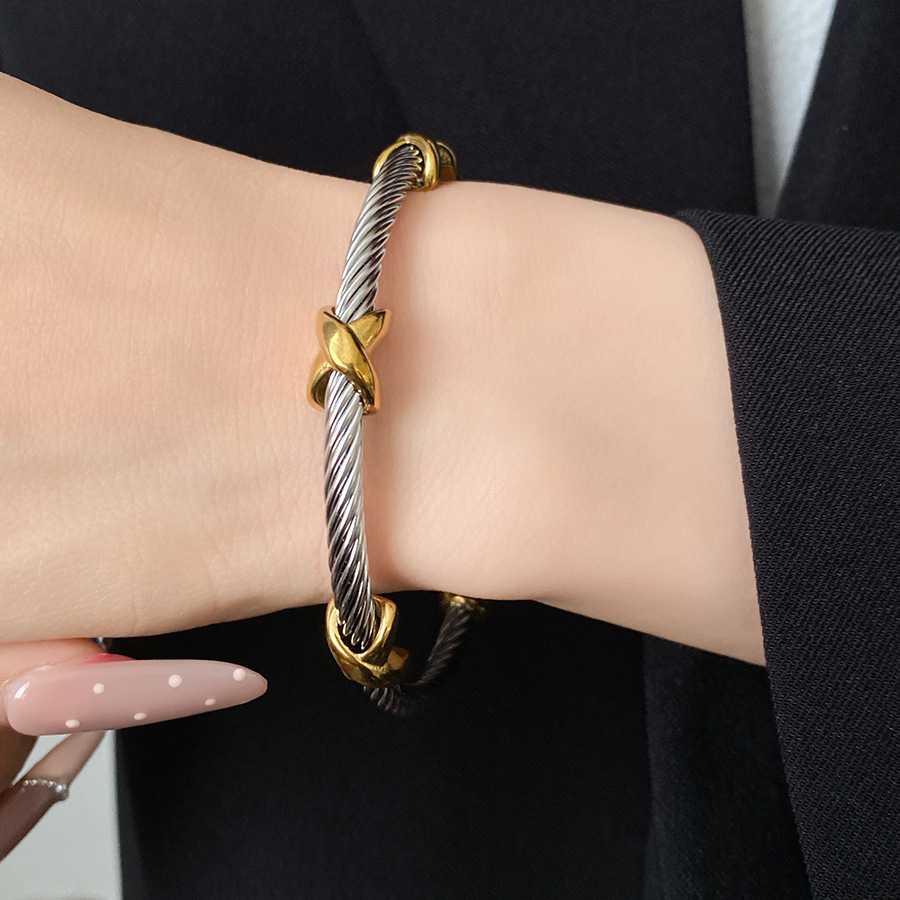 跨境欧美外贸简约不锈钢开口手镯时尚个性几何双层缠绕打结手环