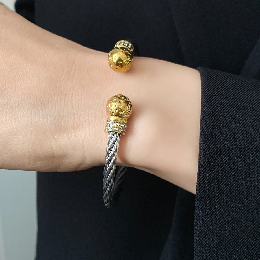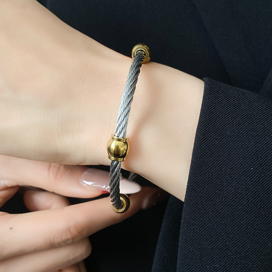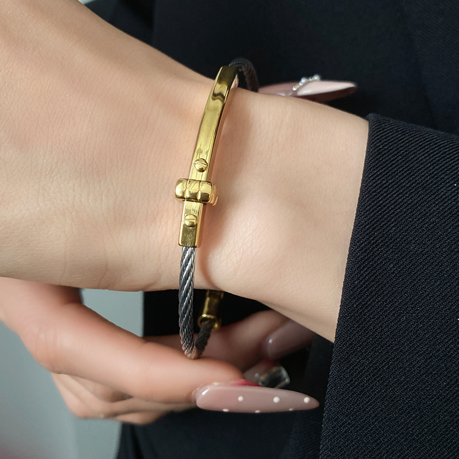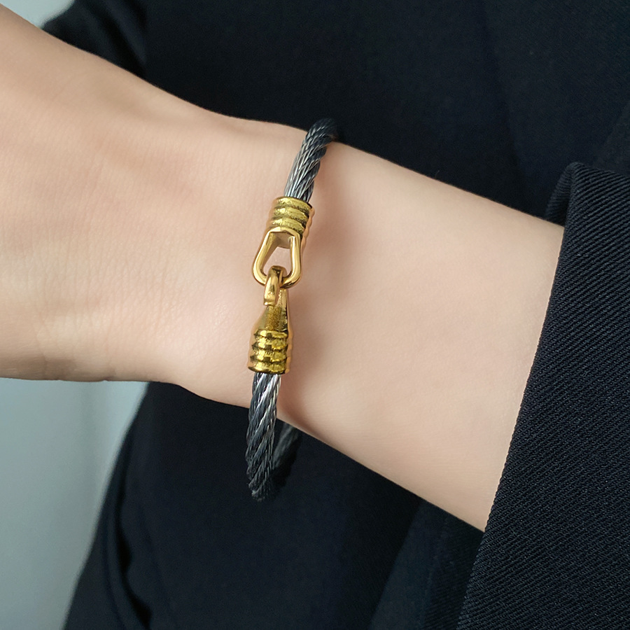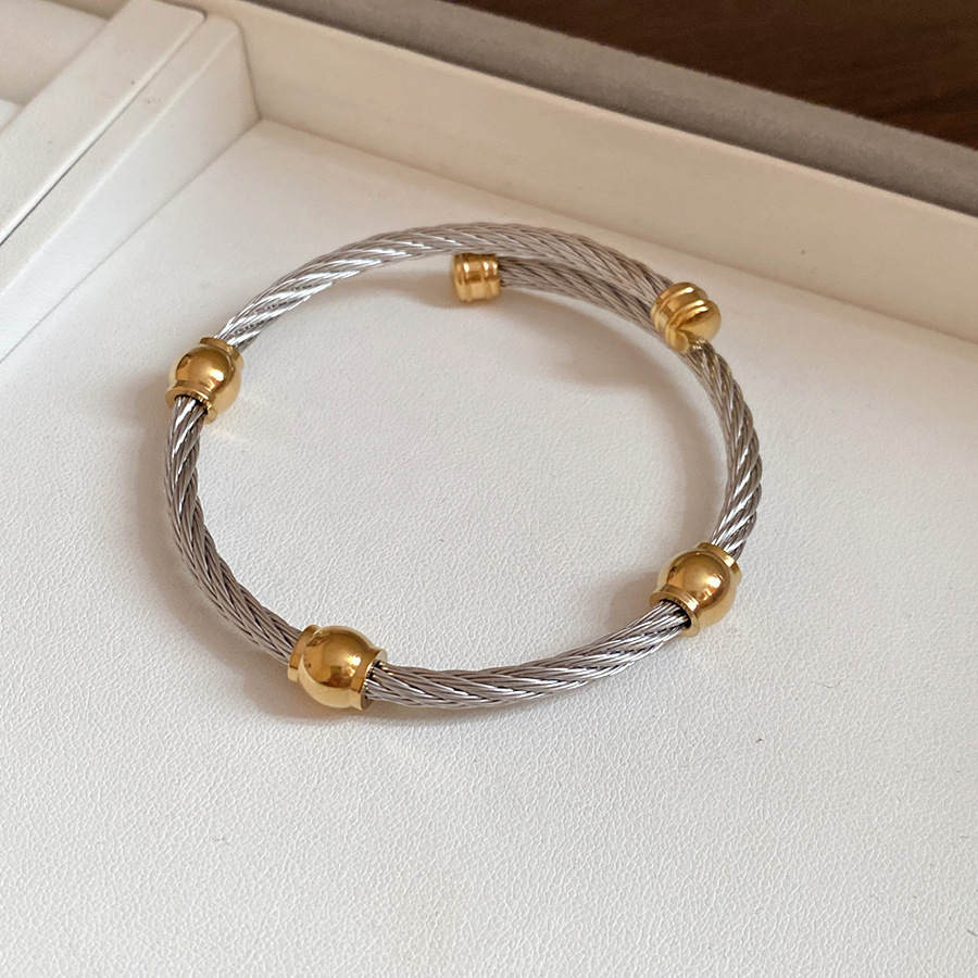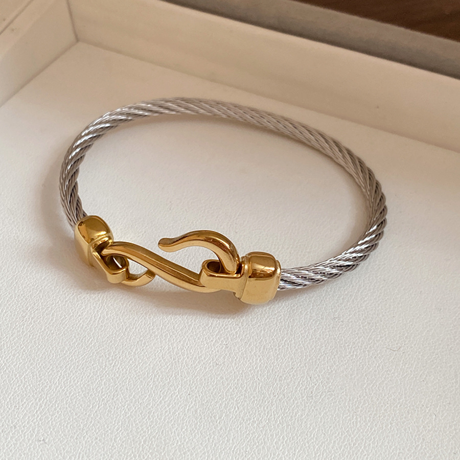 跨境欧美外贸简约不锈钢开口手镯时尚个性几何双层缠绕打结手环