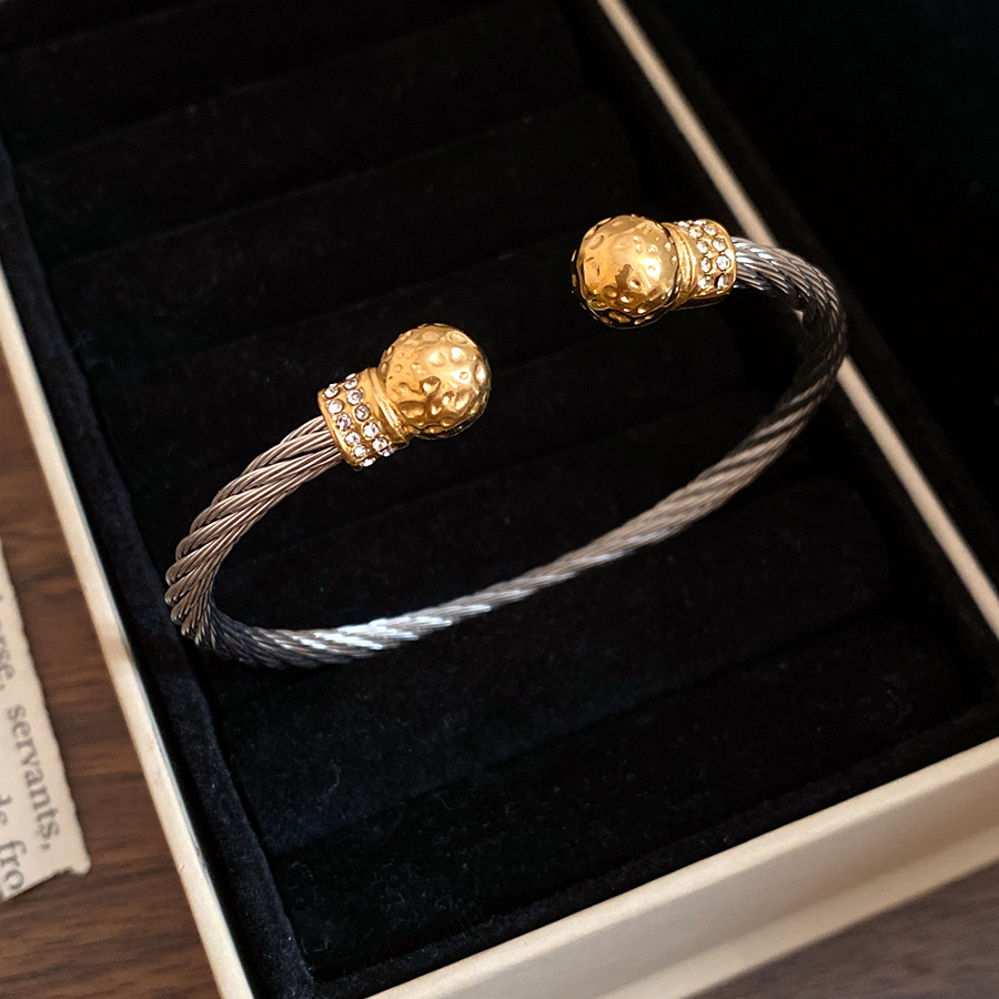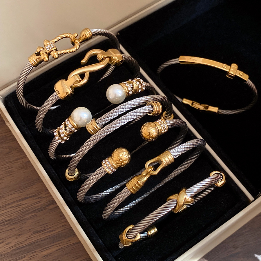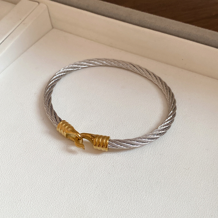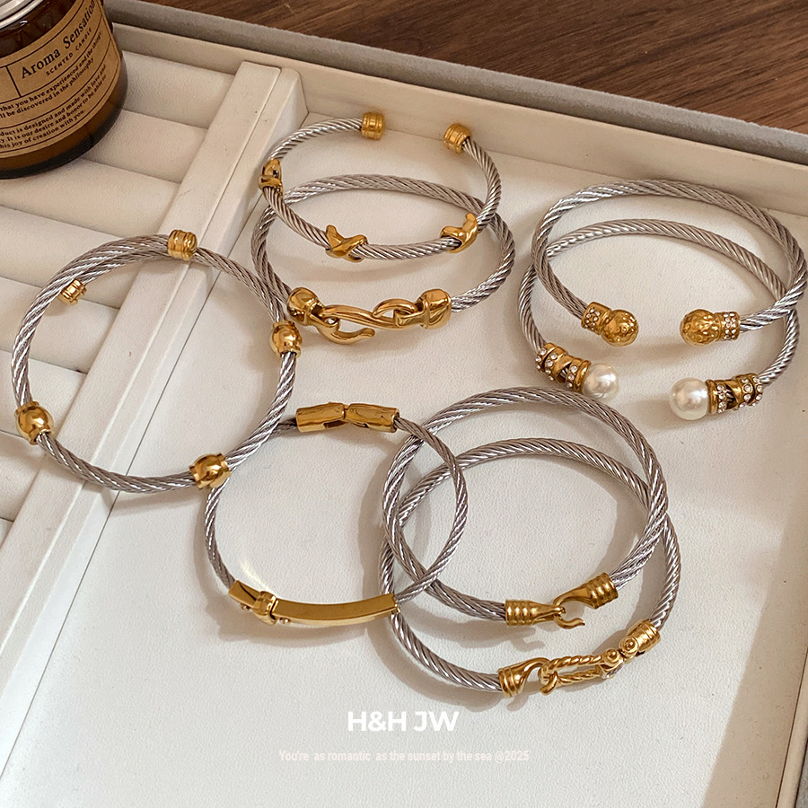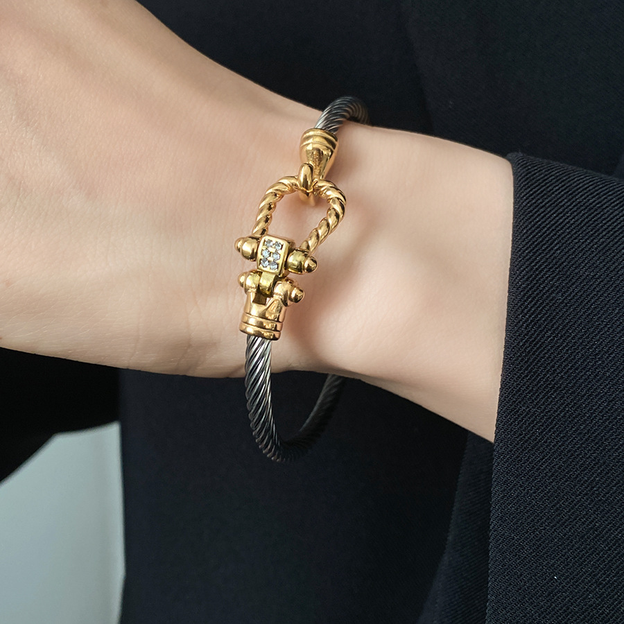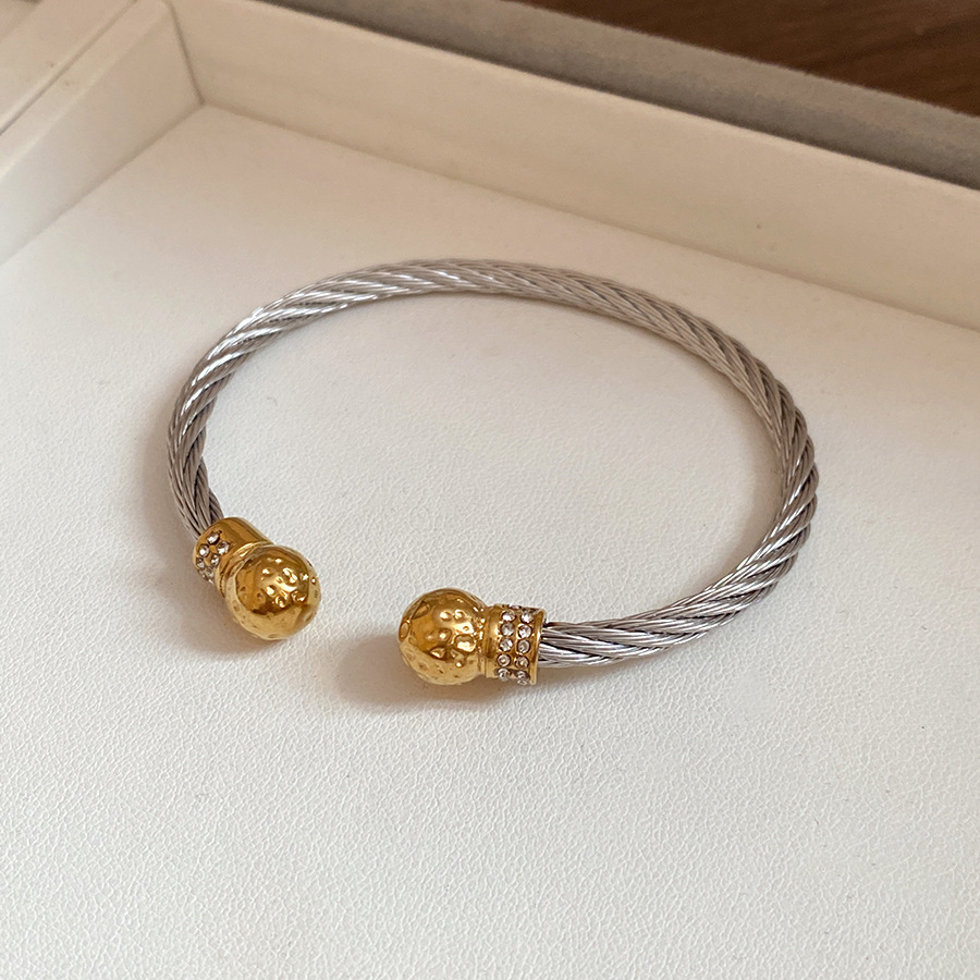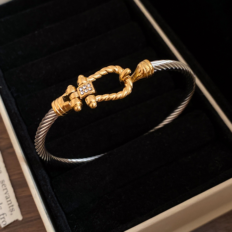 跨境欧美外贸简约不锈钢开口手镯时尚个性几何双层缠绕打结手环