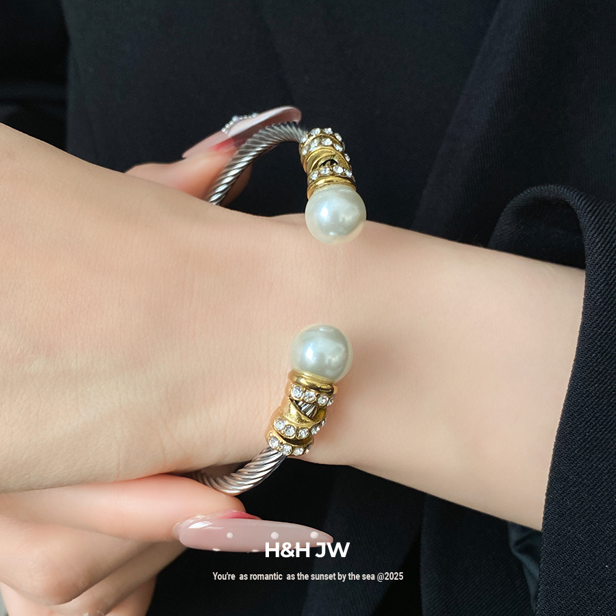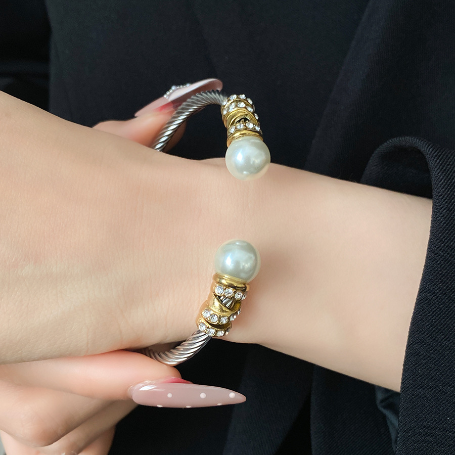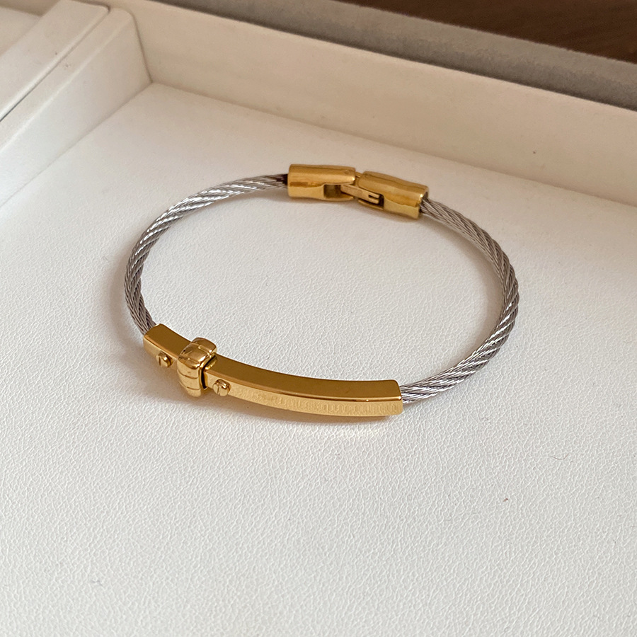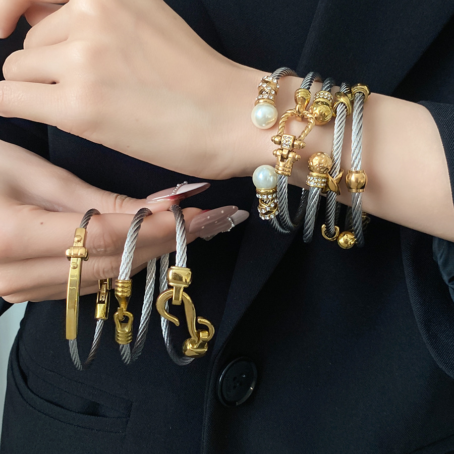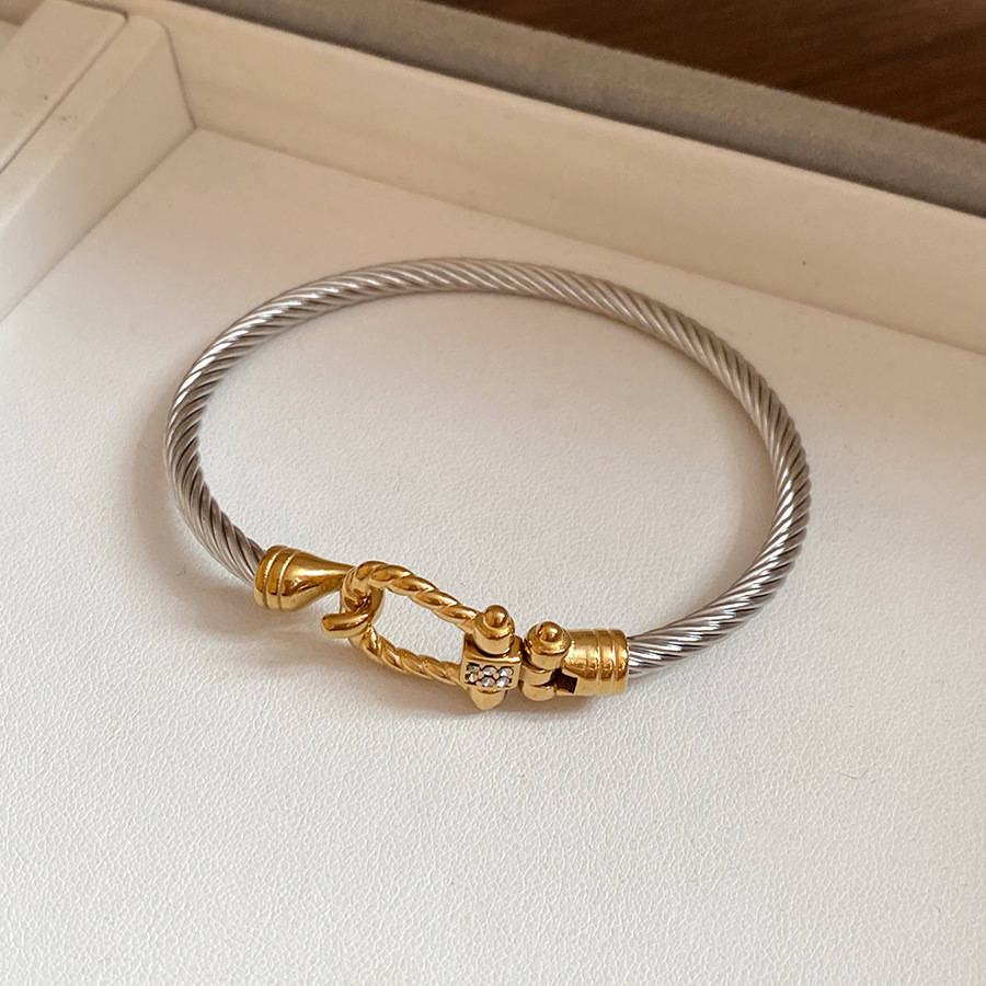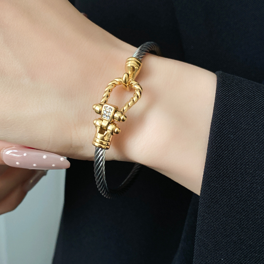 跨境欧美外贸简约不锈钢开口手镯时尚个性几何双层缠绕打结手环
