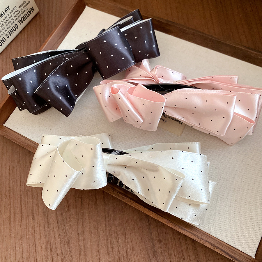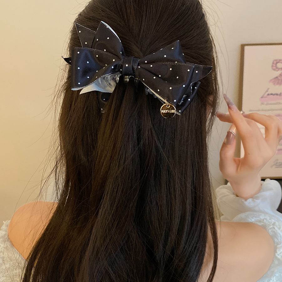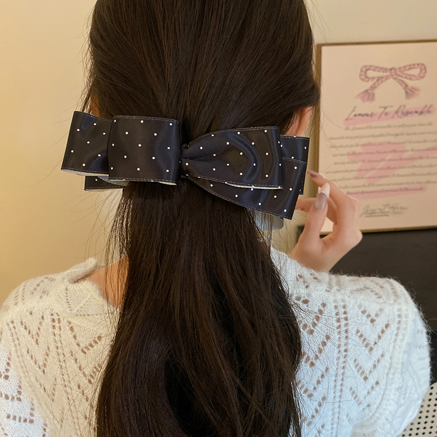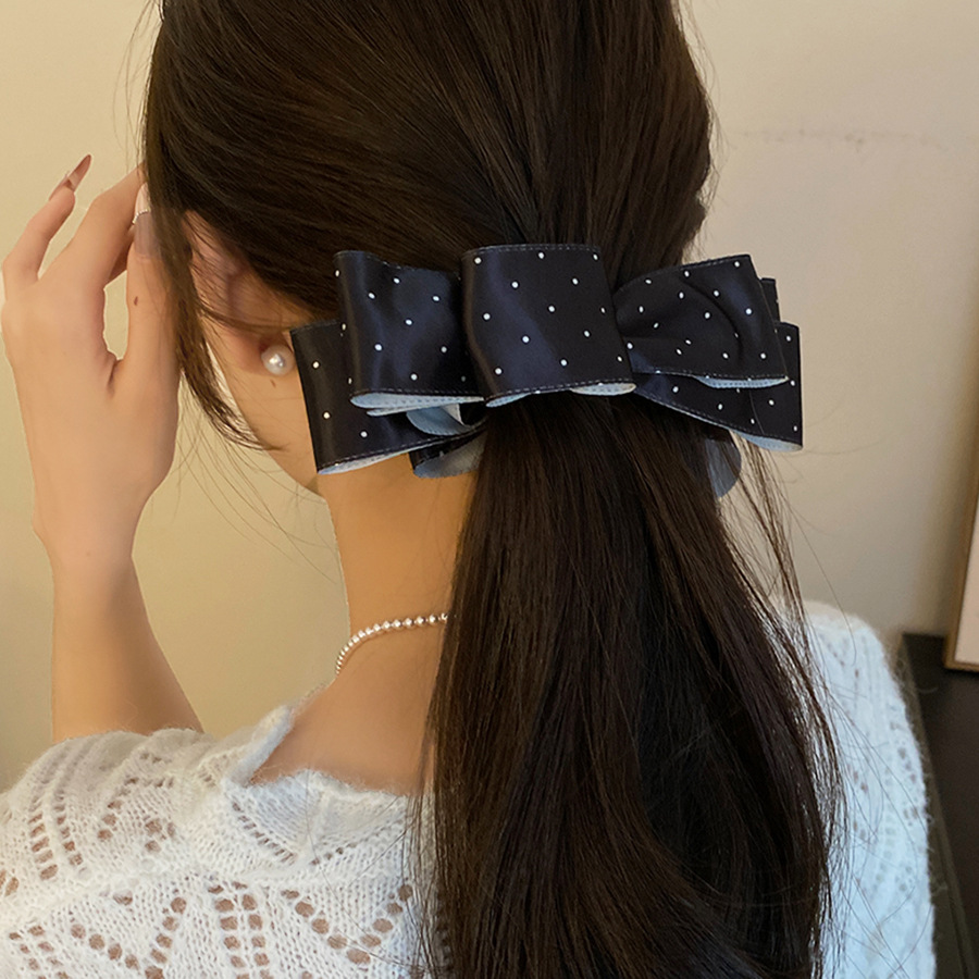 高级感缎面波点蝴蝶结发夹复古优雅气质香蕉夹小众时尚百搭发饰女