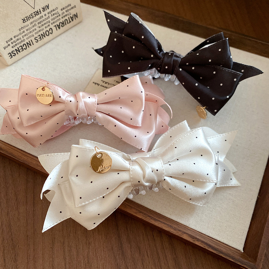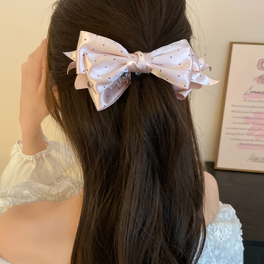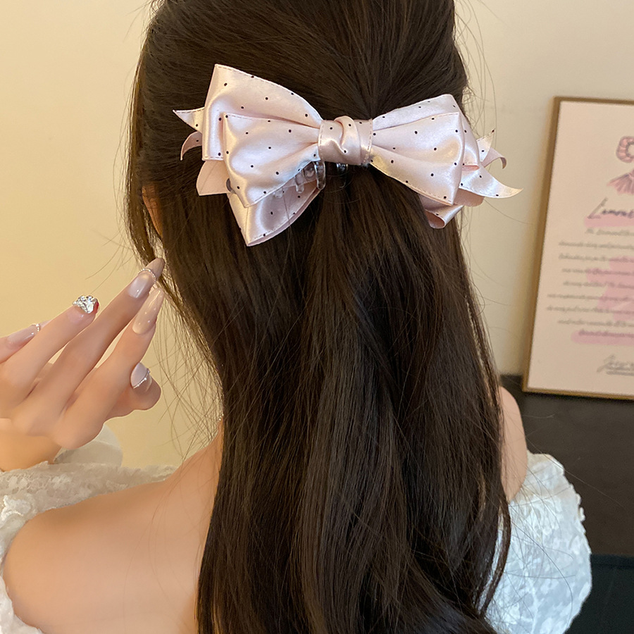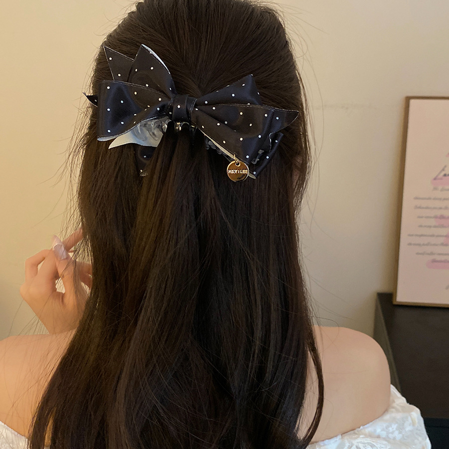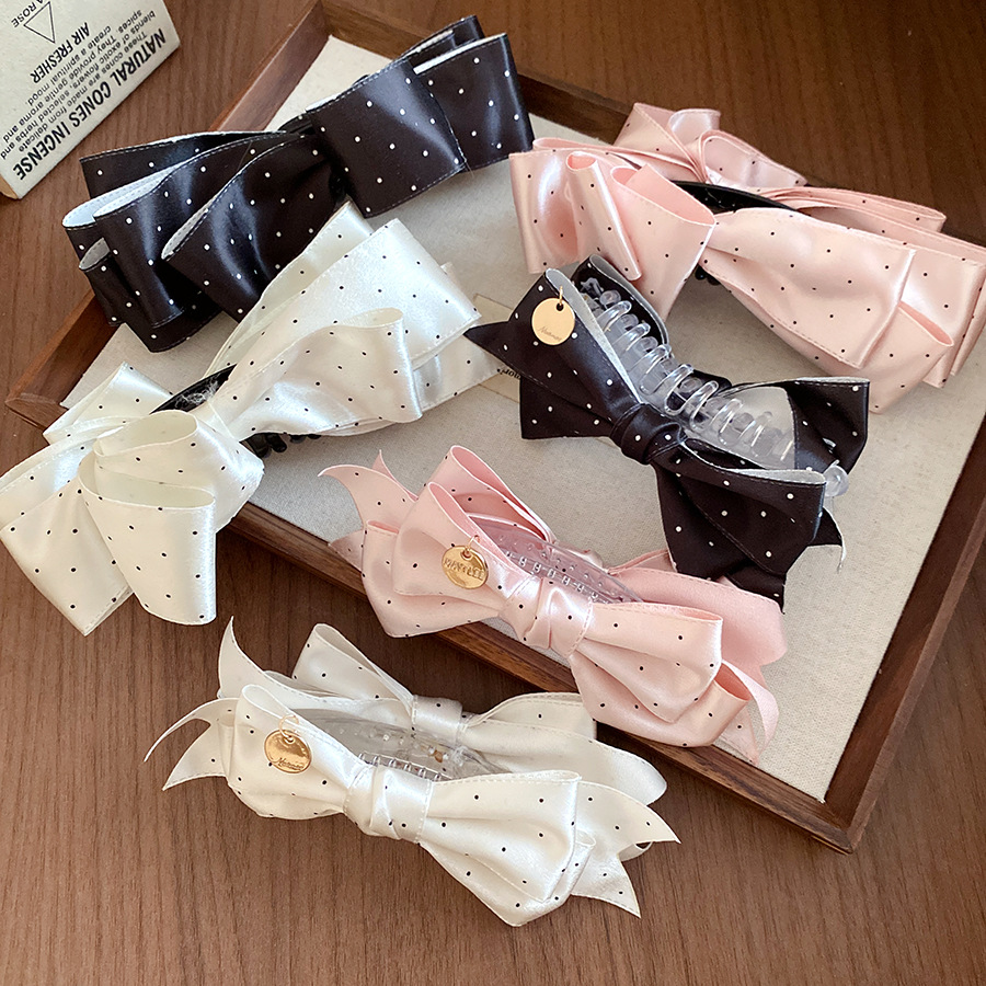 高级感缎面波点蝴蝶结发夹复古优雅气质香蕉夹小众时尚百搭发饰女